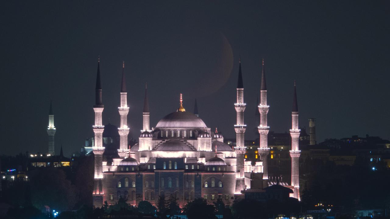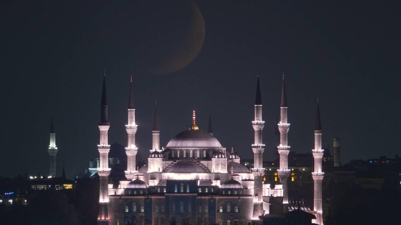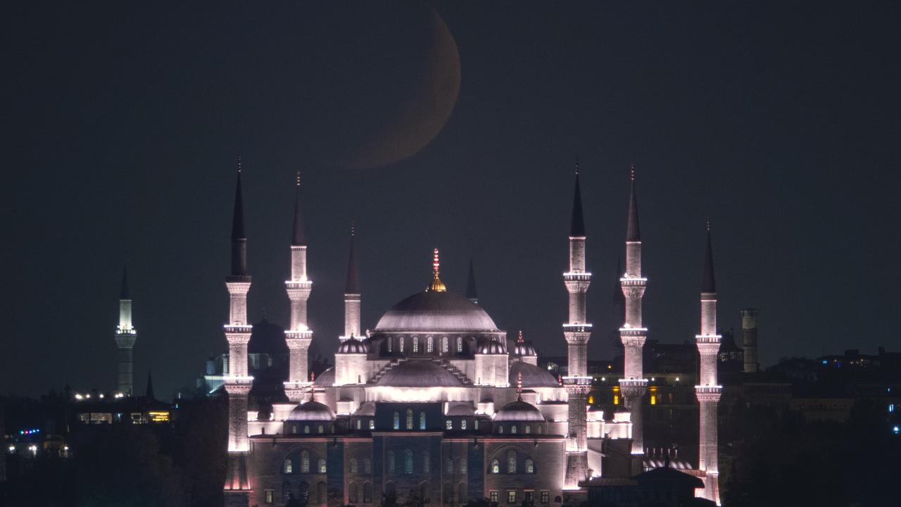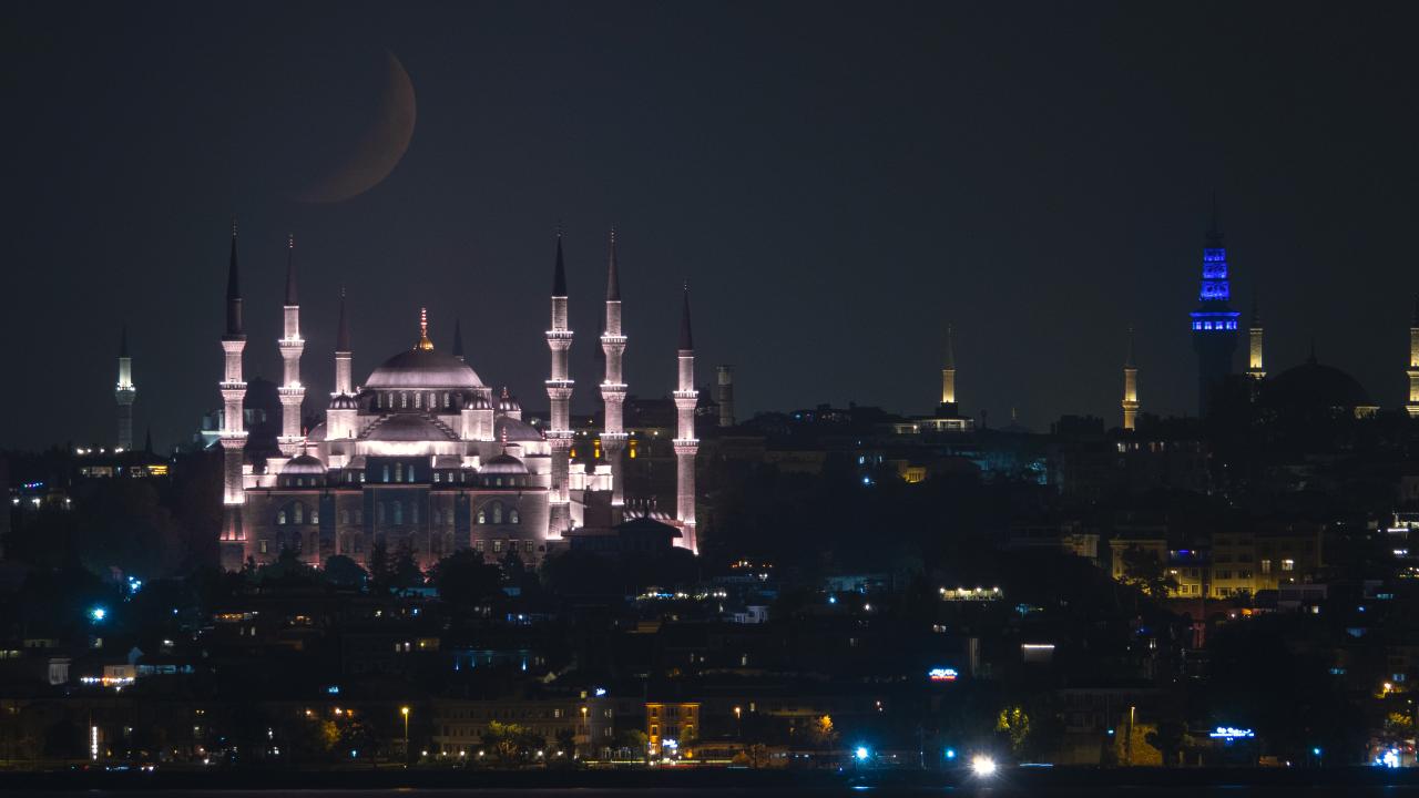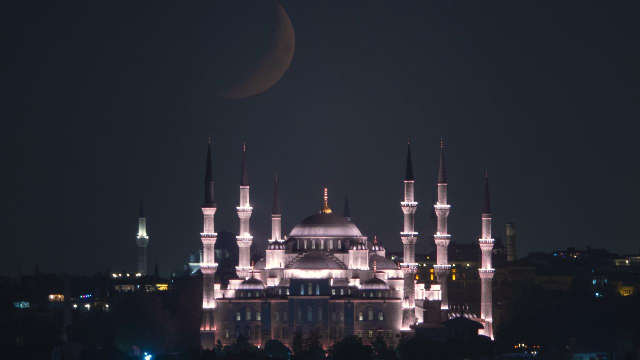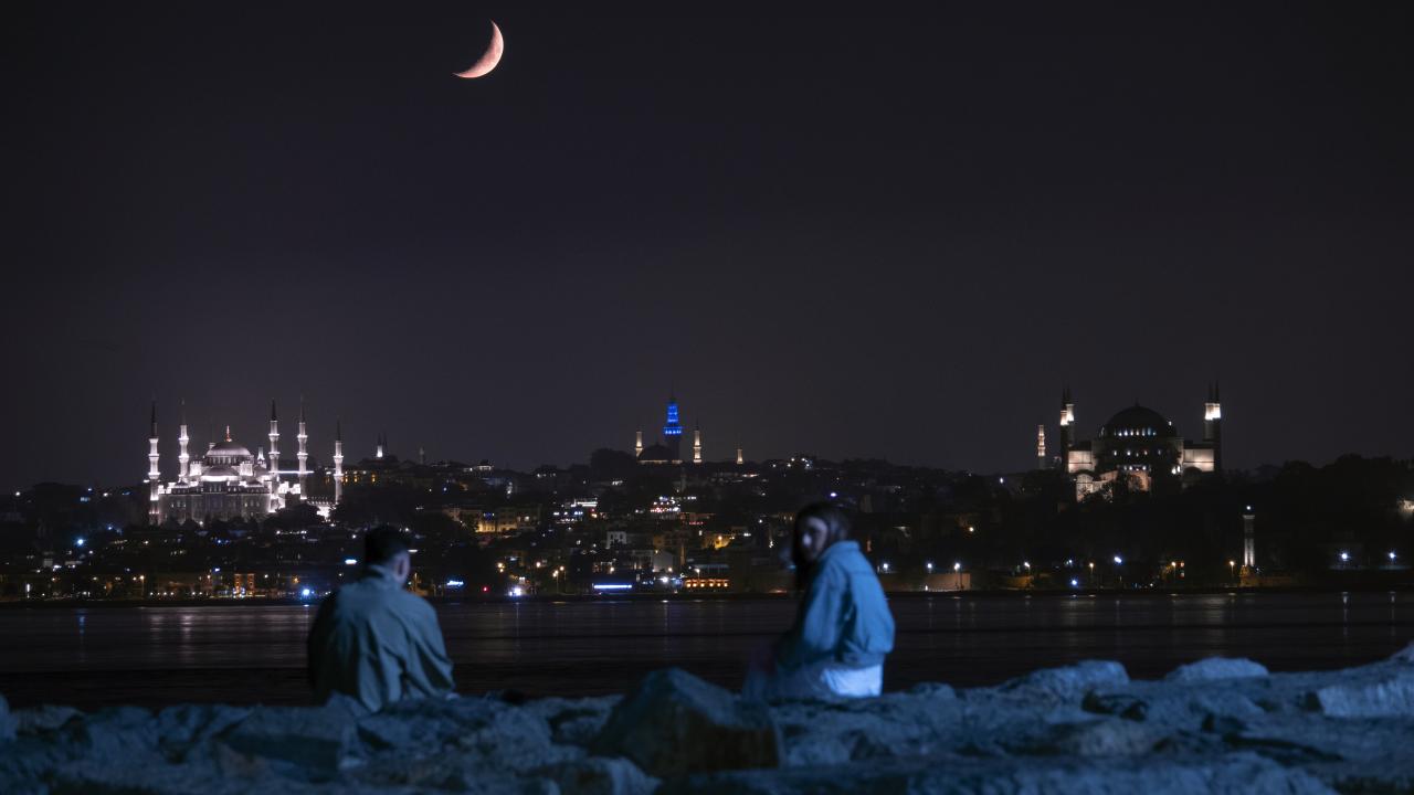 İstanbul'da hilal, Sultanahmet Camii ile güzel görüntü oluşturdu.