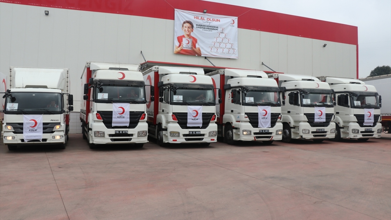 Türk Kızılay'ın Kurban Bayramı'nda yürüttüğü "Hilal Olsun Türkiye" kampanyası kapsamında, yurt içinde kesilen kurbanlıkların etlerinden yapılan konservelerin ilk kısmı, ihtiyaç sahiplerine dağıtılmak üzere 26 kente törenle gönderildi.