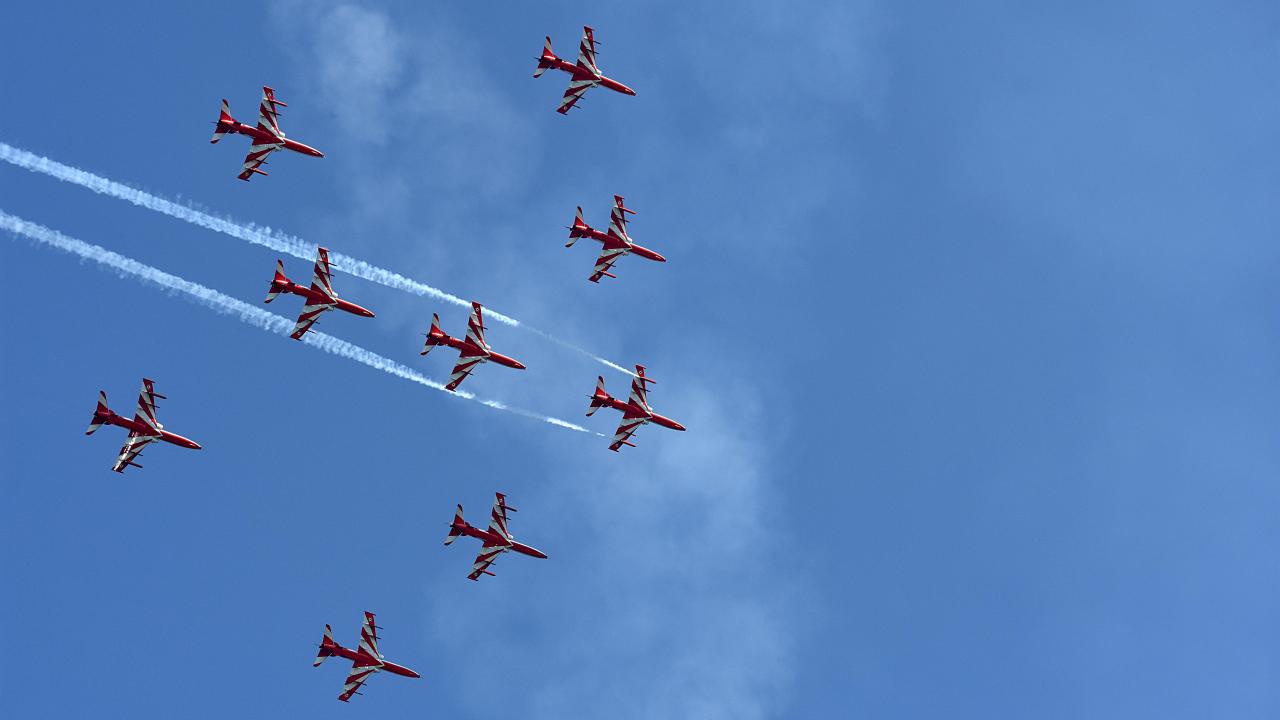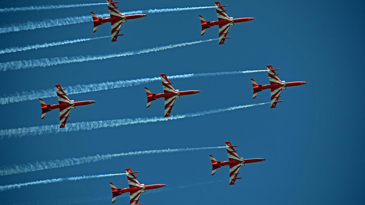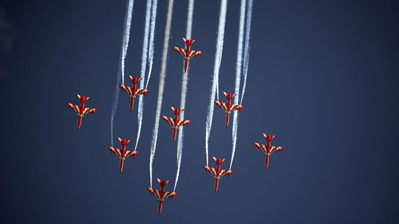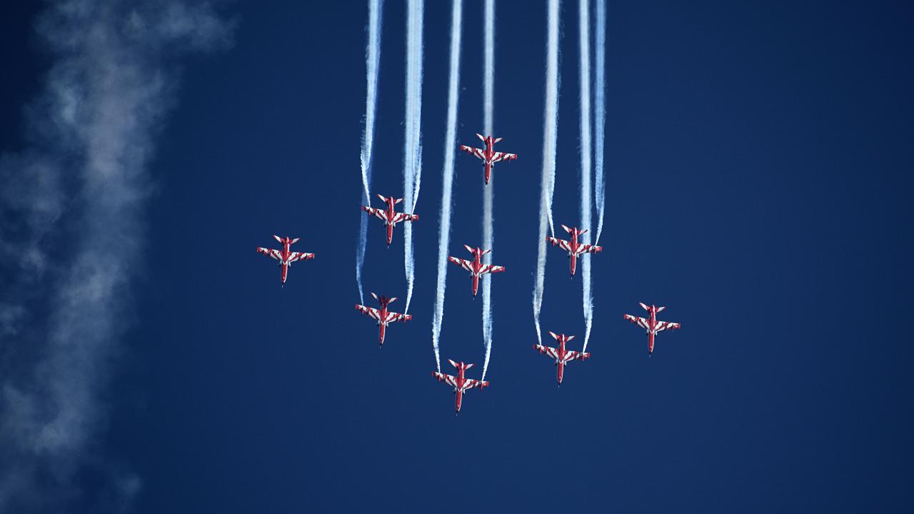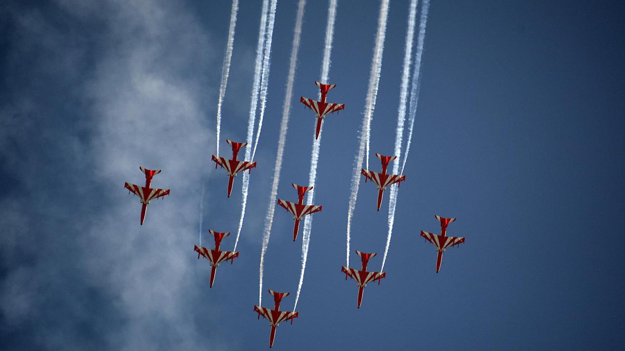 Hindistan Hava Kuvvetleri Akrobasi ekibi, Keşmir'in Srinagar kentindeki Dal Gölü'nde düzenlenen hava gösterisinde performans sergiledi.