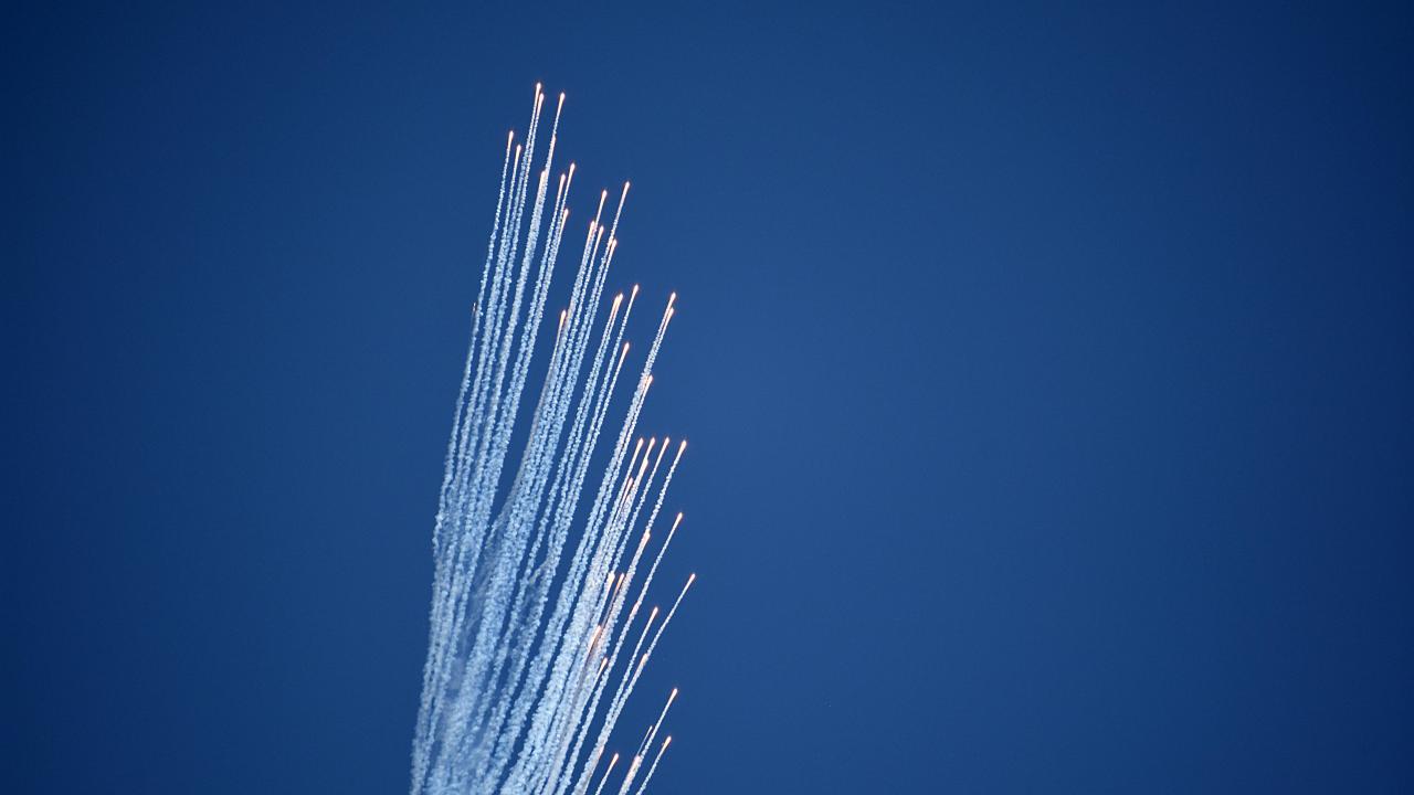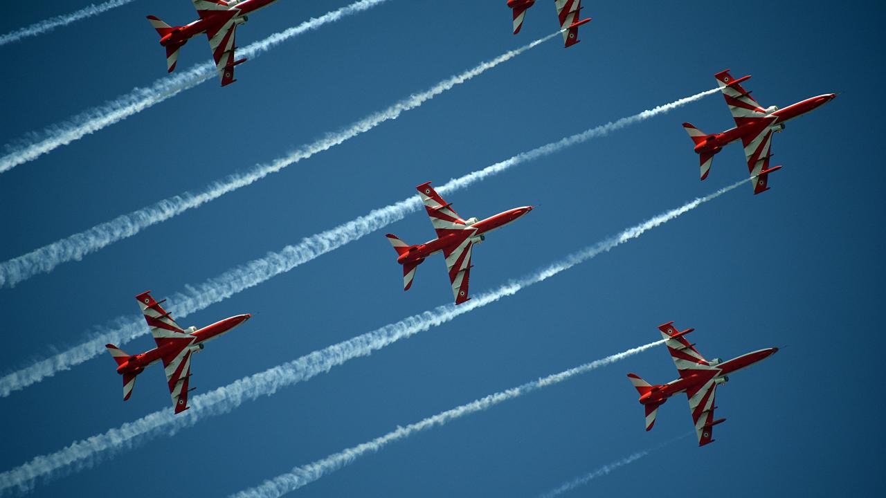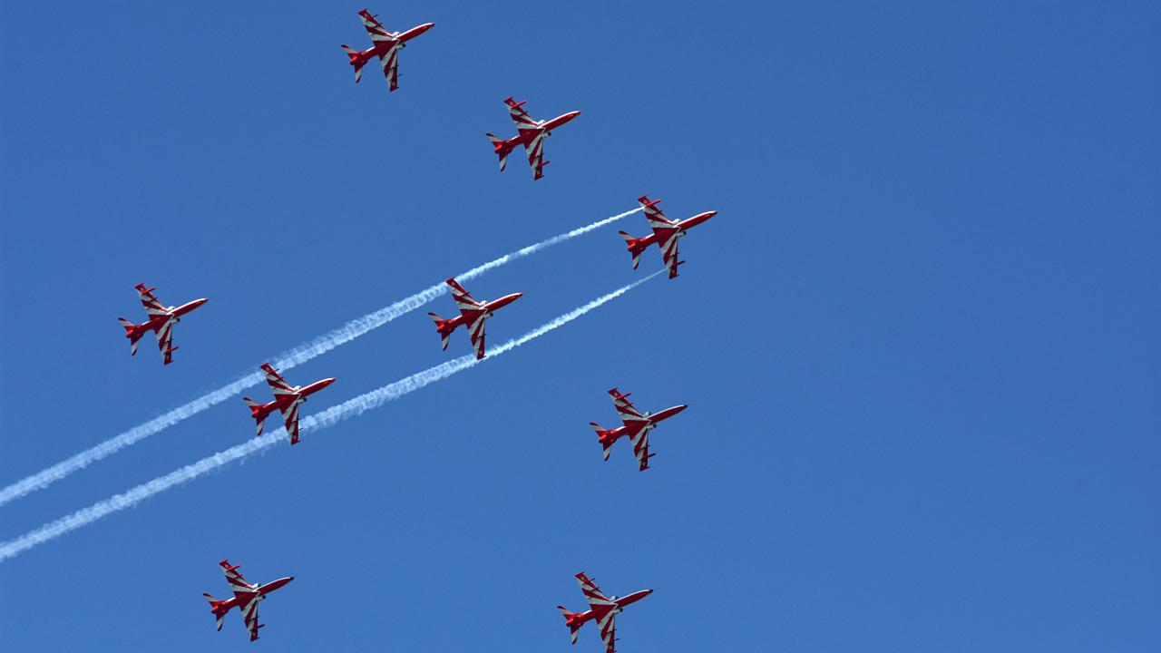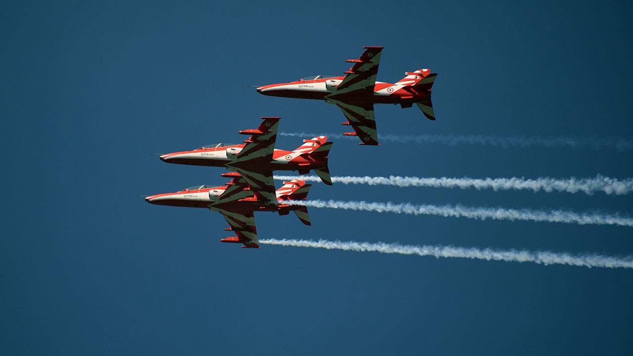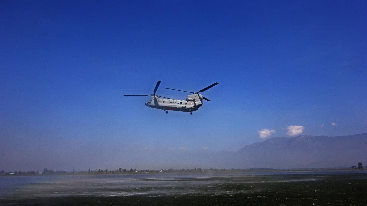 Hindistan Hava Kuvvetleri Akrobasi ekibi, Keşmir'in Srinagar kentindeki Dal Gölü'nde düzenlenen hava gösterisinde performans sergiledi.