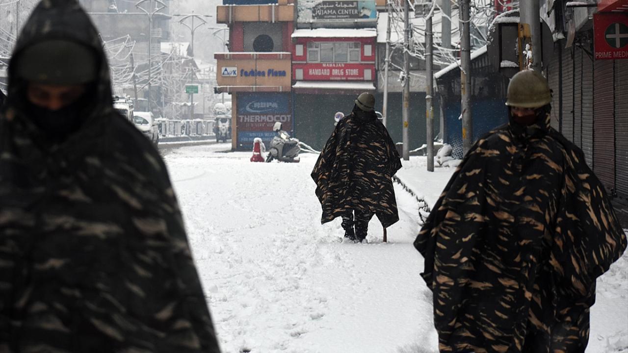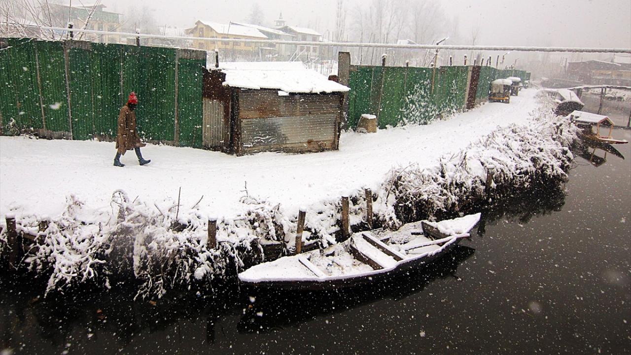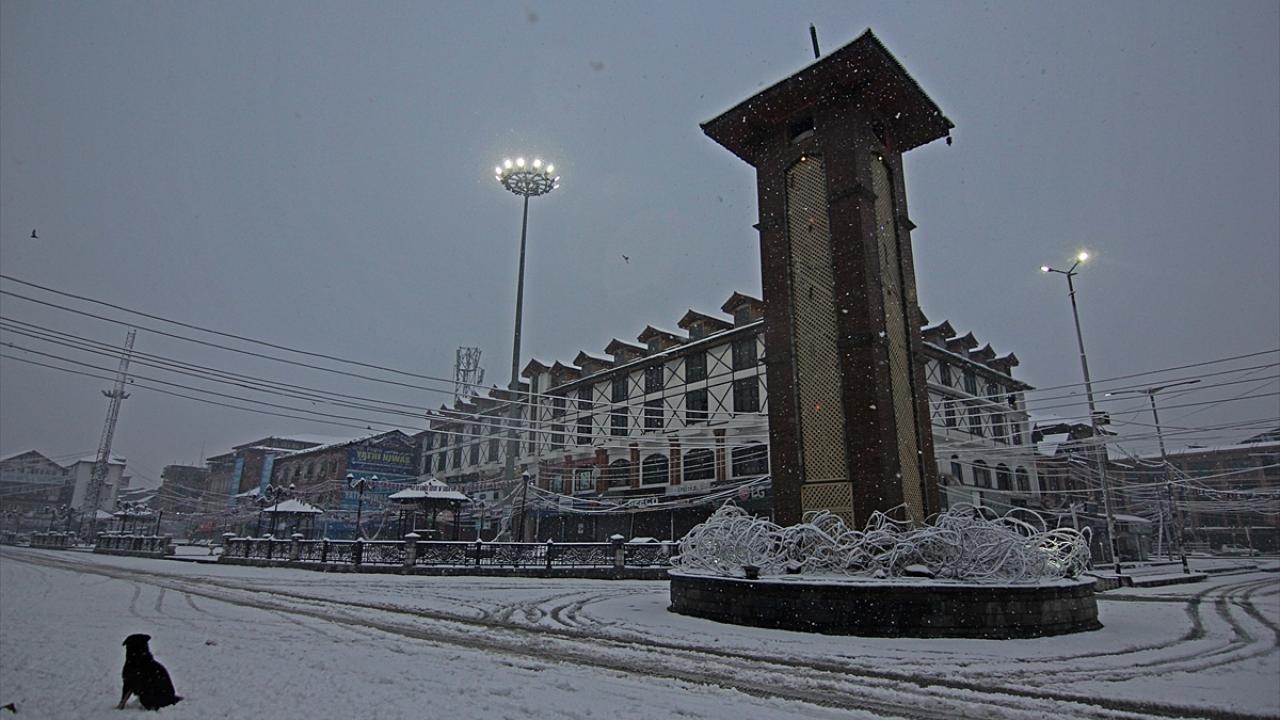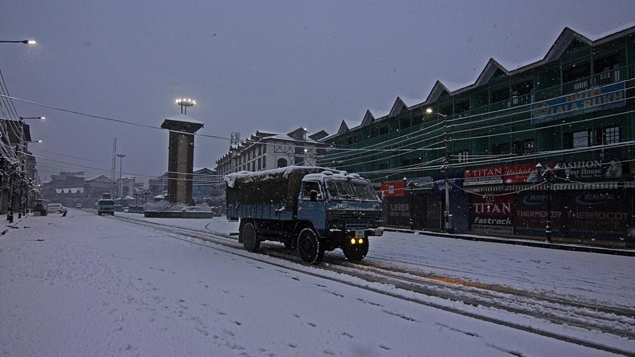 Hindistan'ın Cammu Keşmir bölgesindeki Srinagar kentine, 2021'in ilk karı yağdı. Kar yağışı nedeniyle sokaklar beyaza büründü.