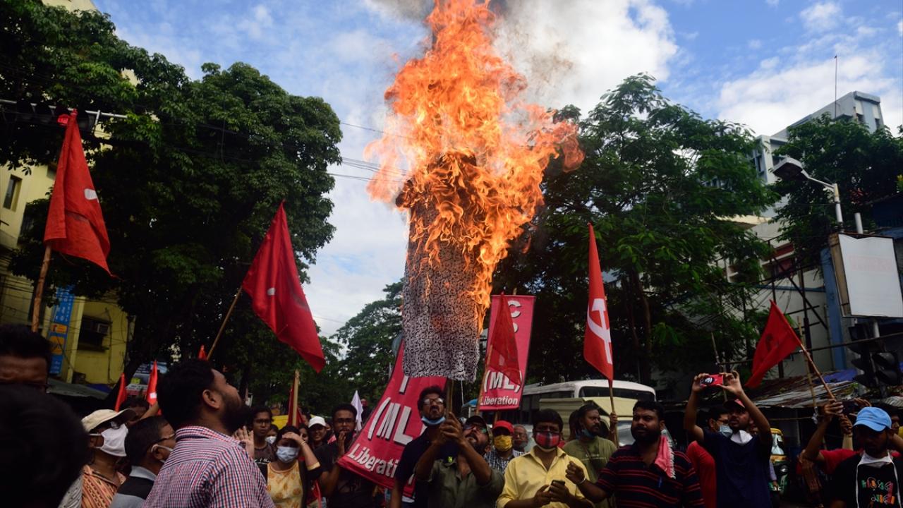 Protestocuların Modi hükümetine karşı sloganlar attığı, sokaklarda lastik yaktıkları ve bölge genelinde yolları kapattığı bilgisi paylaşıldı.