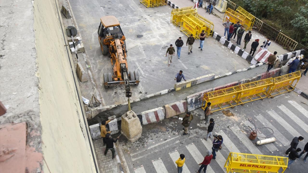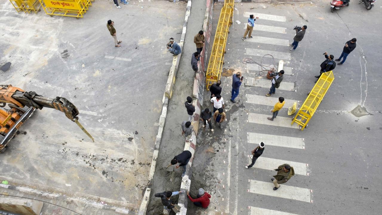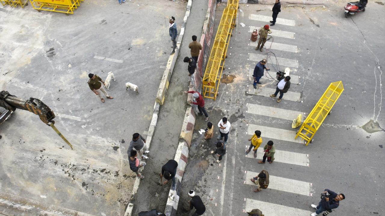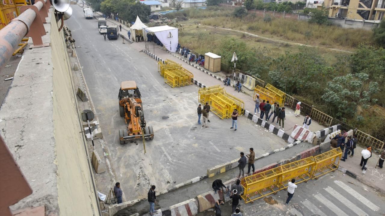 Polis, 2021`de hükümete ilettikleri taleplerin halen yerine getirilmemesini protesto etmek amacıyla traktörleriyle Yeni Delhi`ye hareket eden çiftçilerin şehre girişini önlemek için bazı yolların dikenli tel örgü ve bariyerlerle kapatıldığını bildirdi.