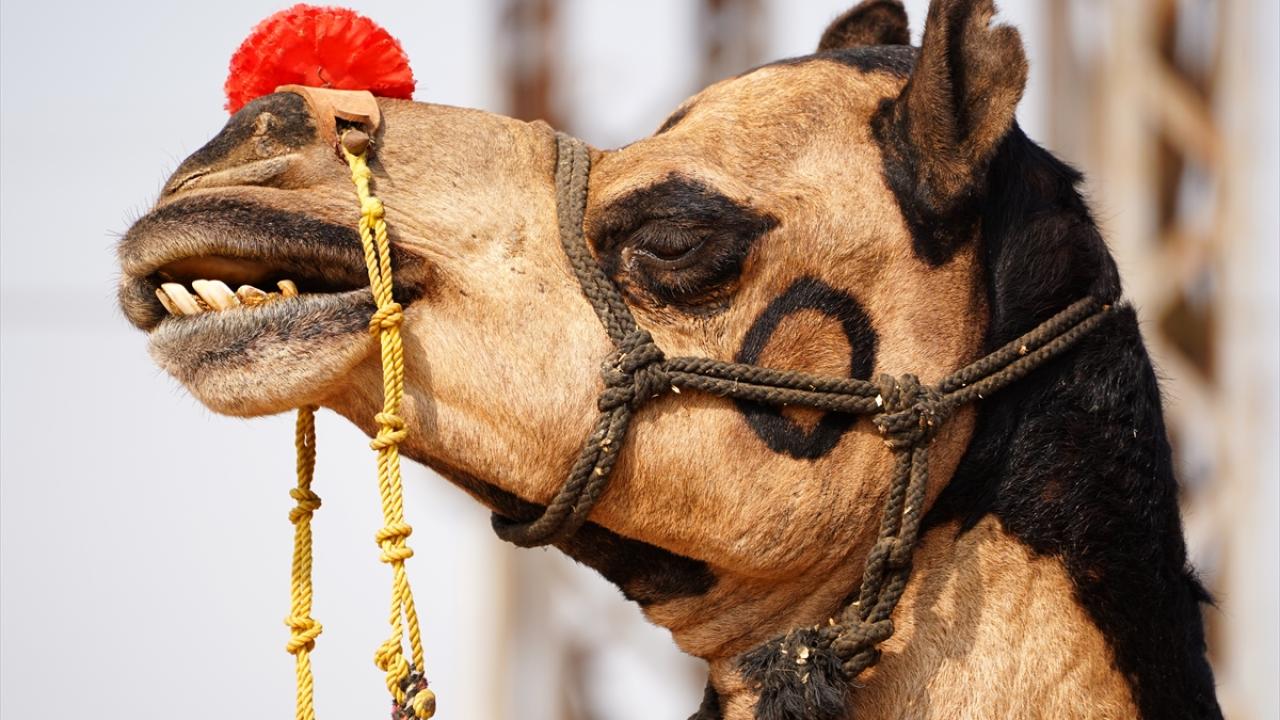 Geleneksel kıyafetler giyen bir besici, süslediği devesiyle turistlerin ilgi odağı oldu.
