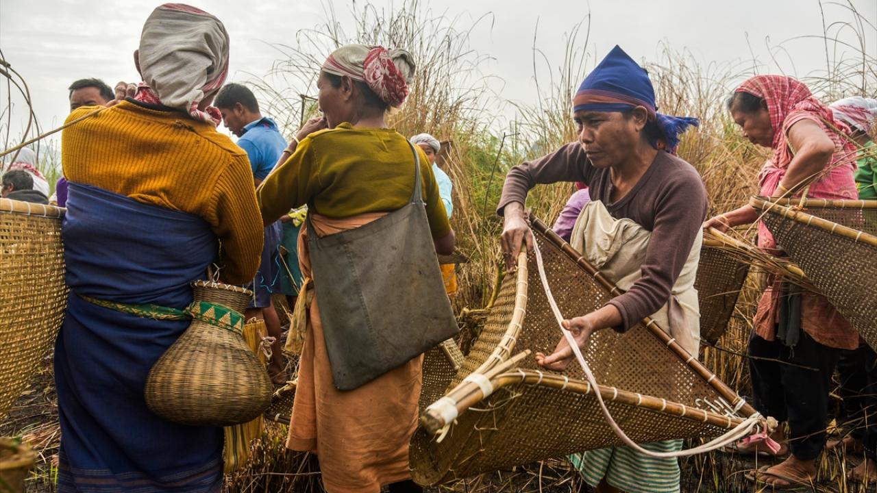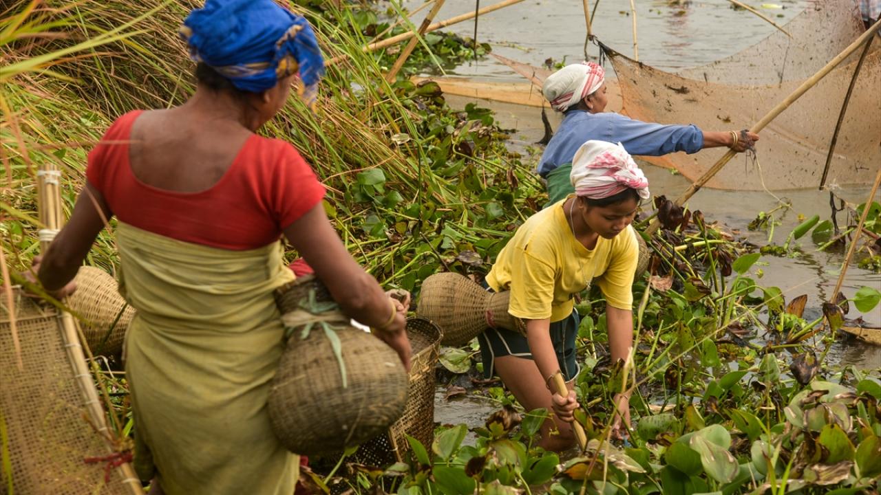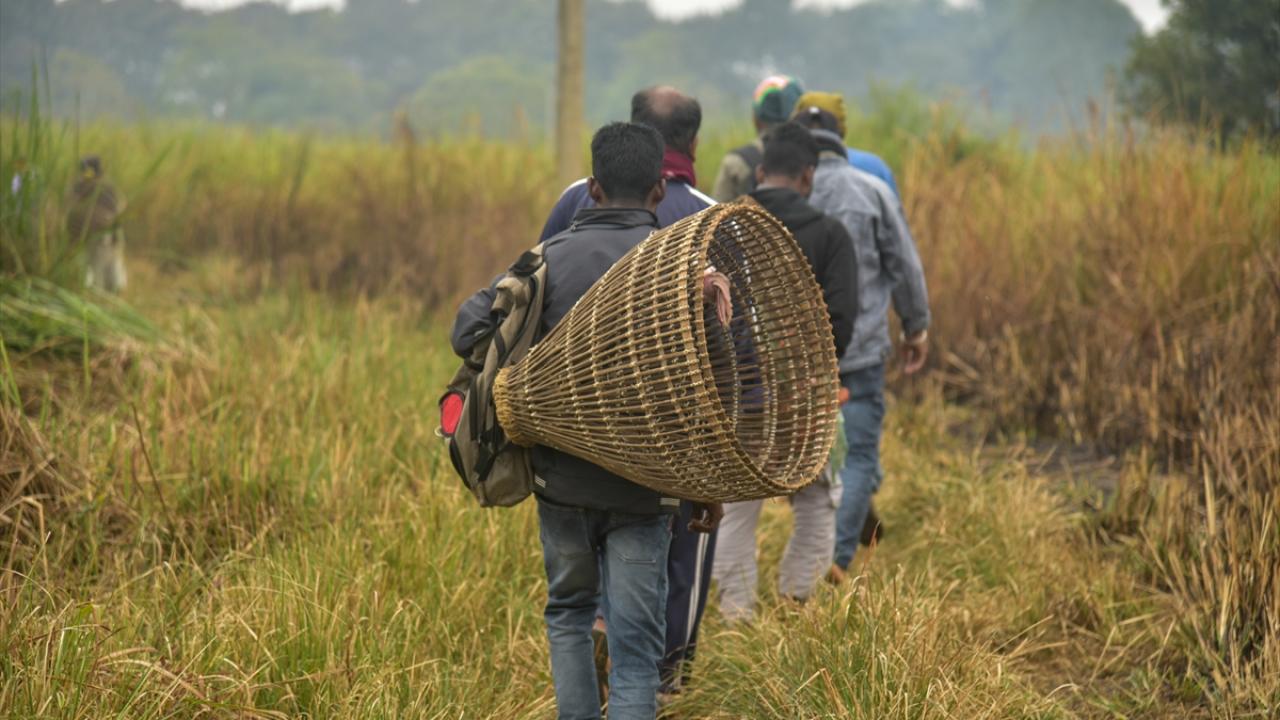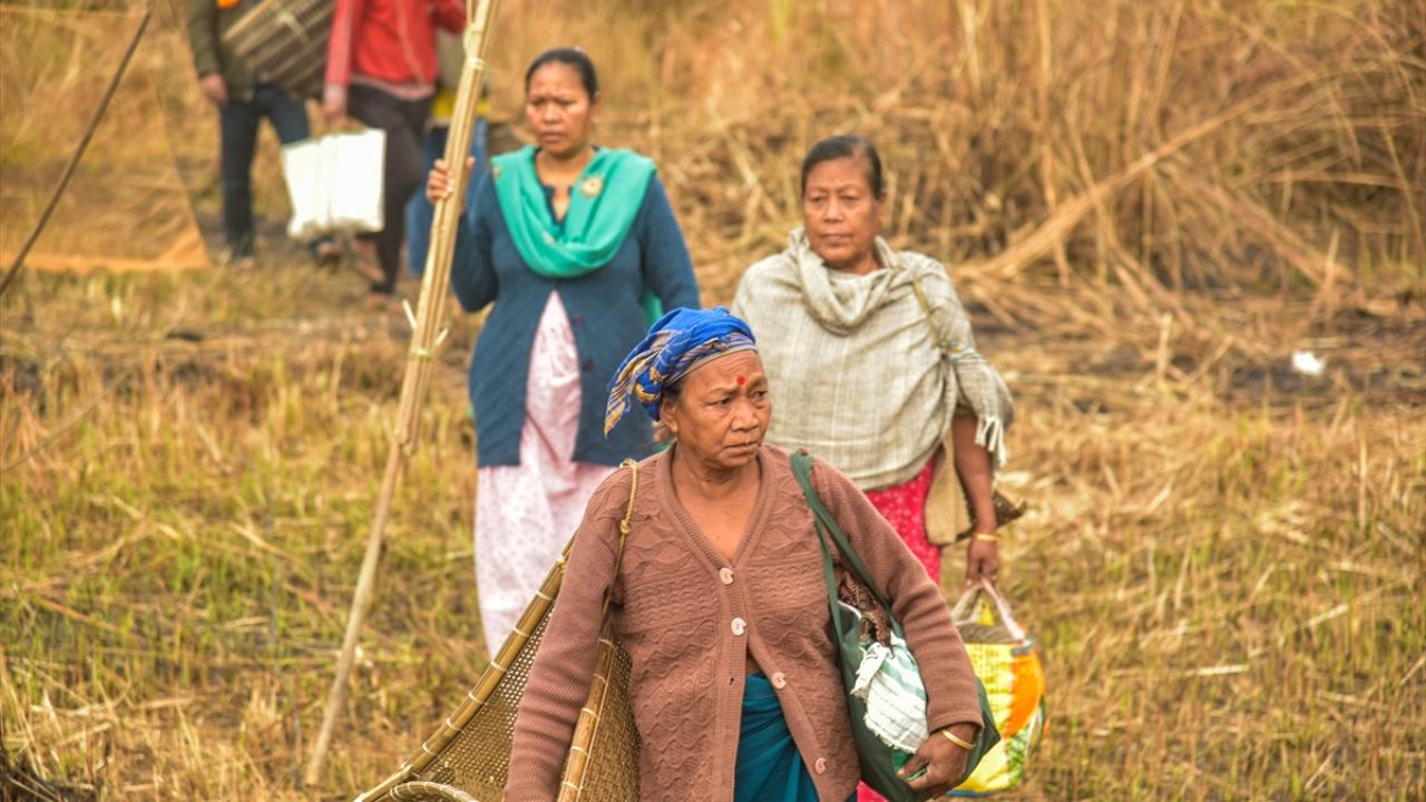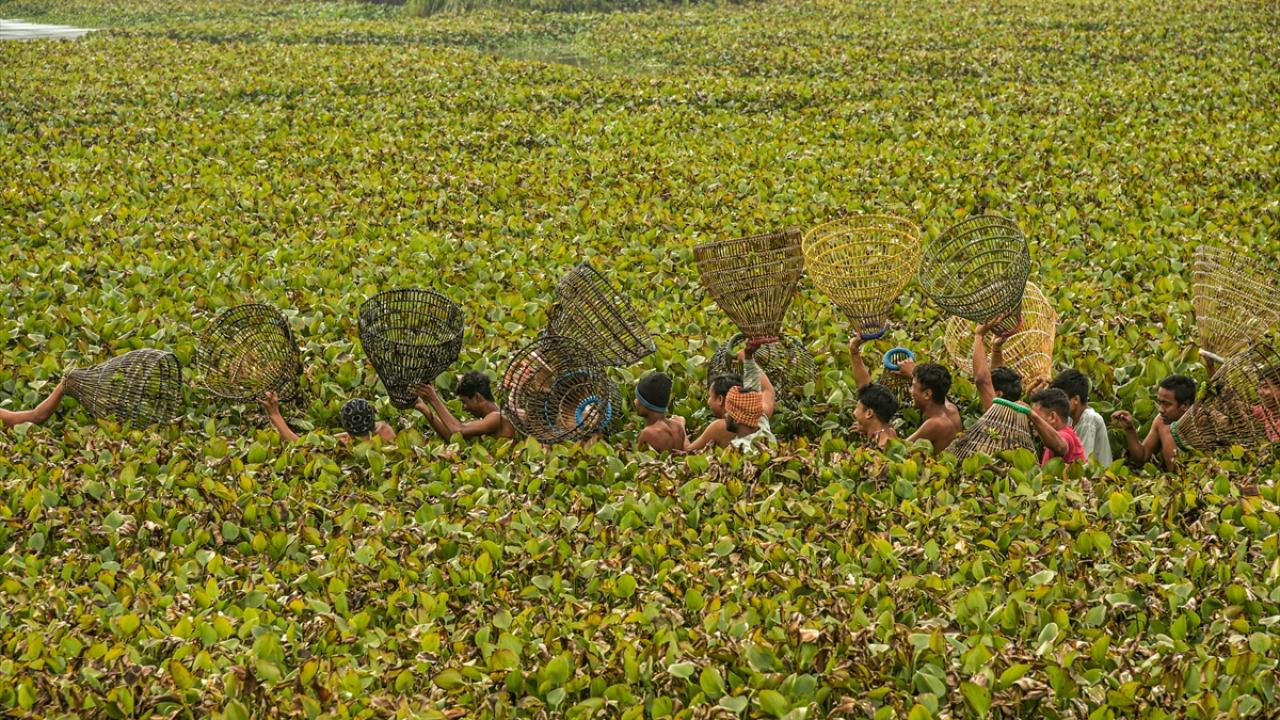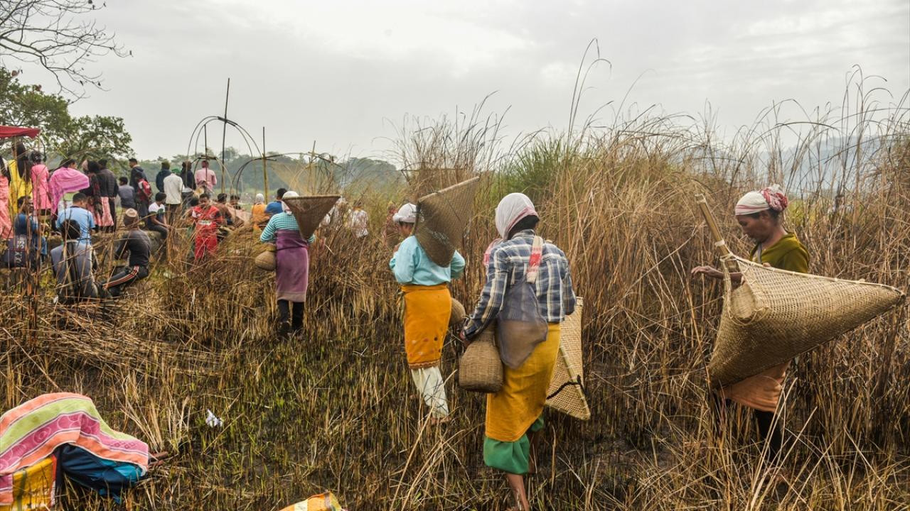Hindistan'ın Kamrup kentinde, hasat sezonunun sonunu işaret eden ocak ayında kutlanan Magh Bihu kapsamında geleneksel ekipmanların kullanıldığı balıkçılık etkinliği devam ediyor.