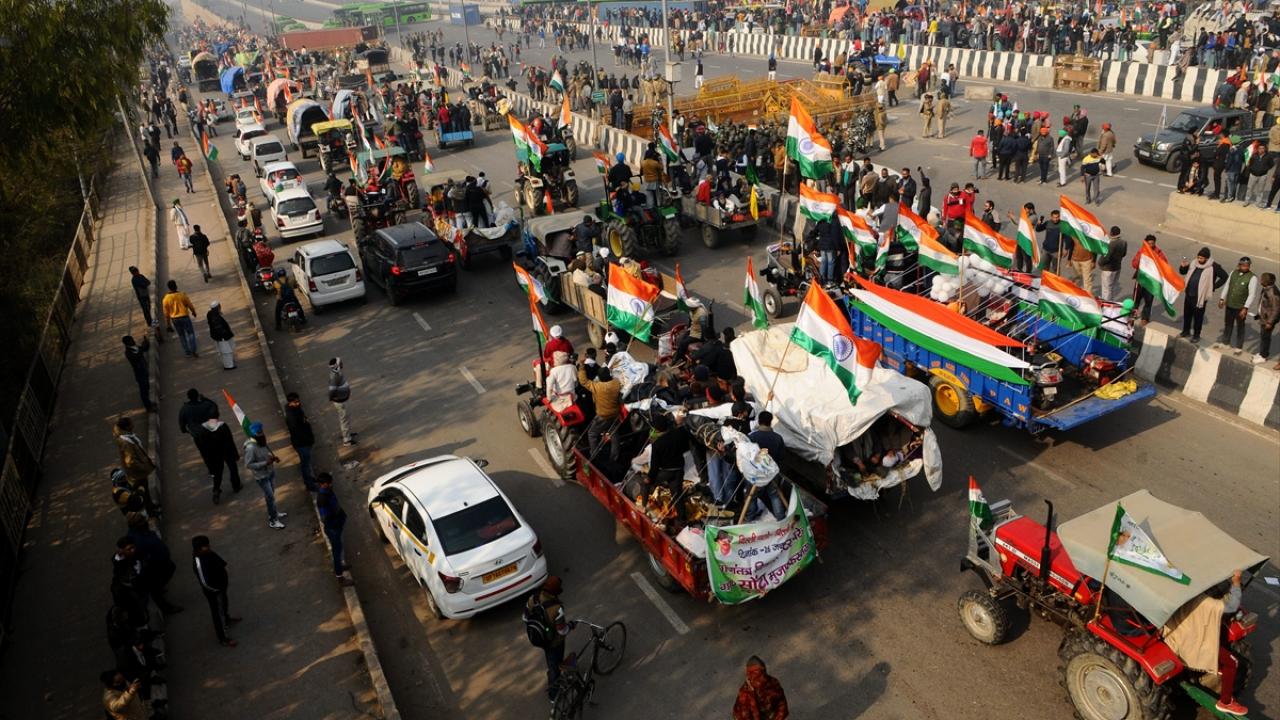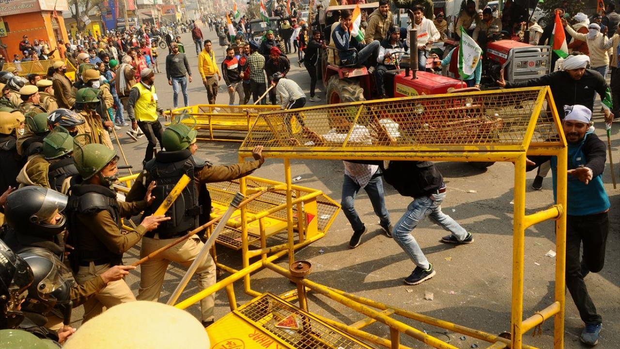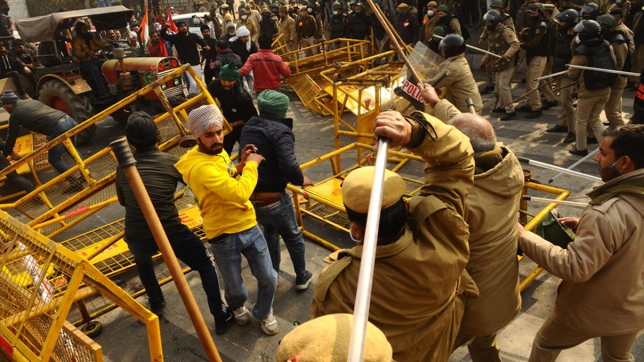 Hindistan'da traktörlü eylem yapan çiftçilere polis müdahale etti