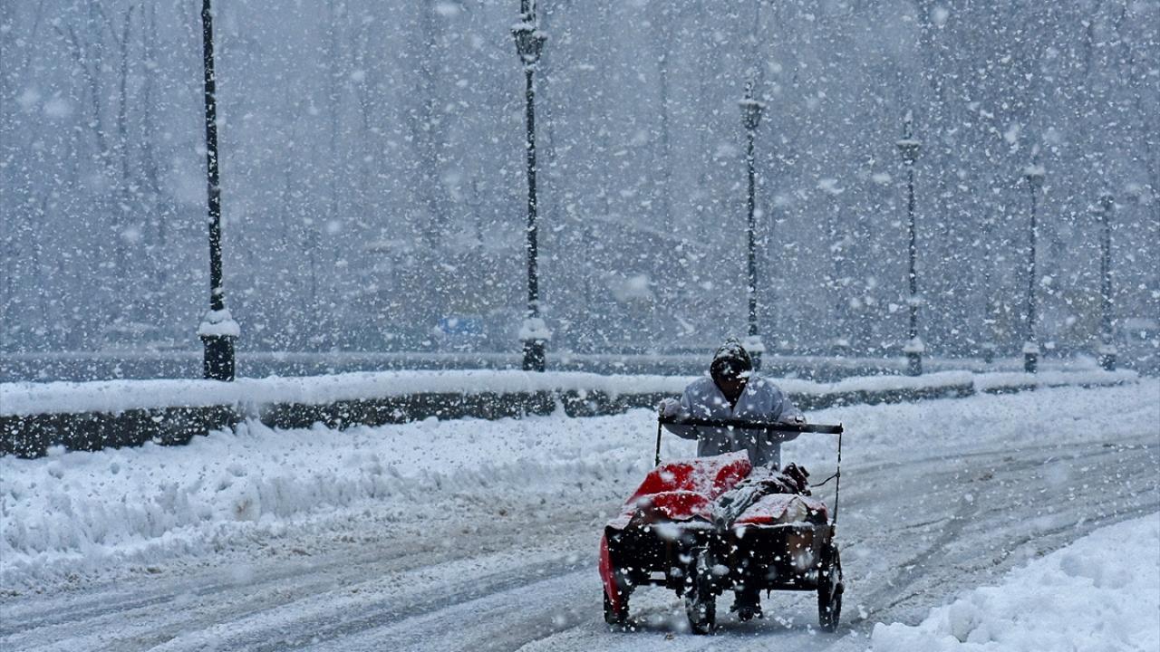 Hindistan'ın Cammu Keşmir bölgesindeki Srinagar kentinde, etkili olan yoğun kar yağışı nedeniyle sokaklar beyaza bürünürken, insanlar günlük hayatlarına devam etmeye çalıştı.