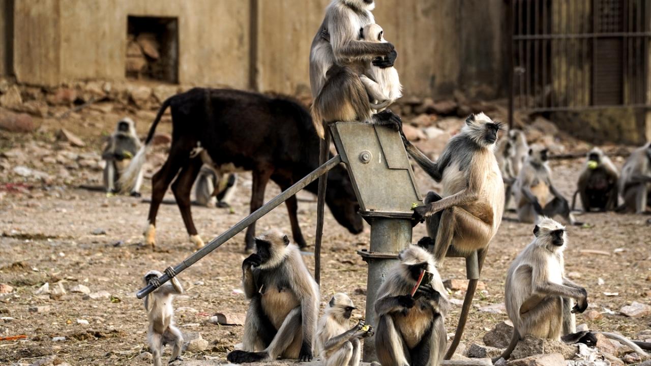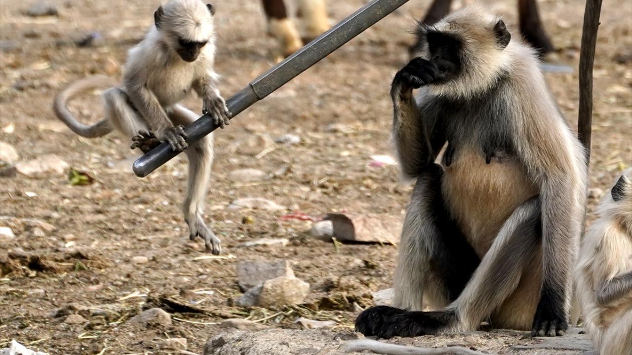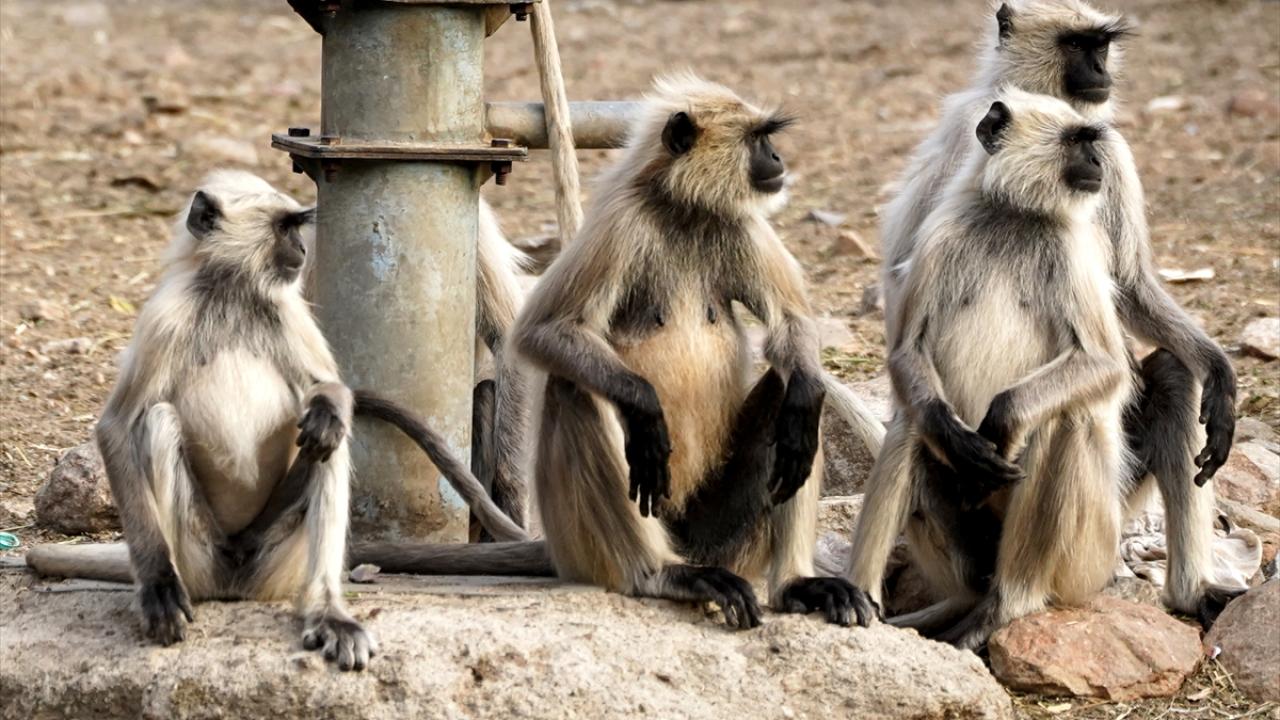Hindistan'ın Rajasthan eyaletinde bulunan Pushkar kentindeki bir parkta langur maymunları görüntülendi.