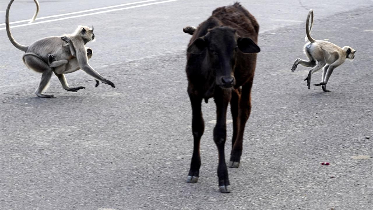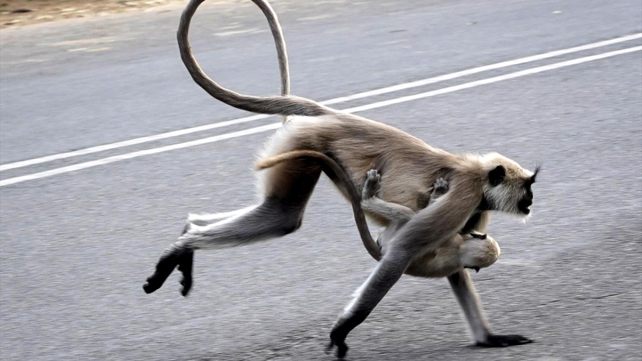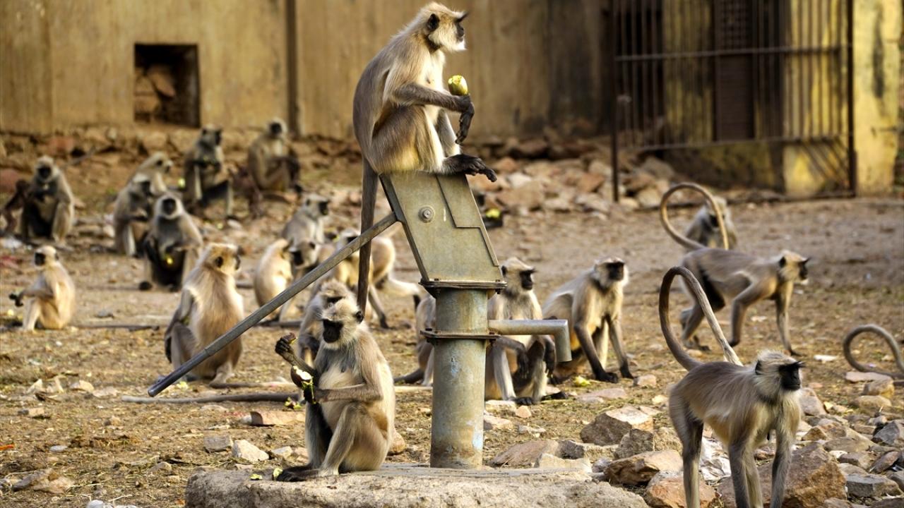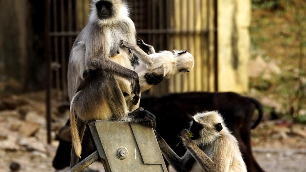Hindistan'ın Rajasthan eyaletinde bulunan Pushkar kentindeki bir parkta langur maymunları görüntülendi.