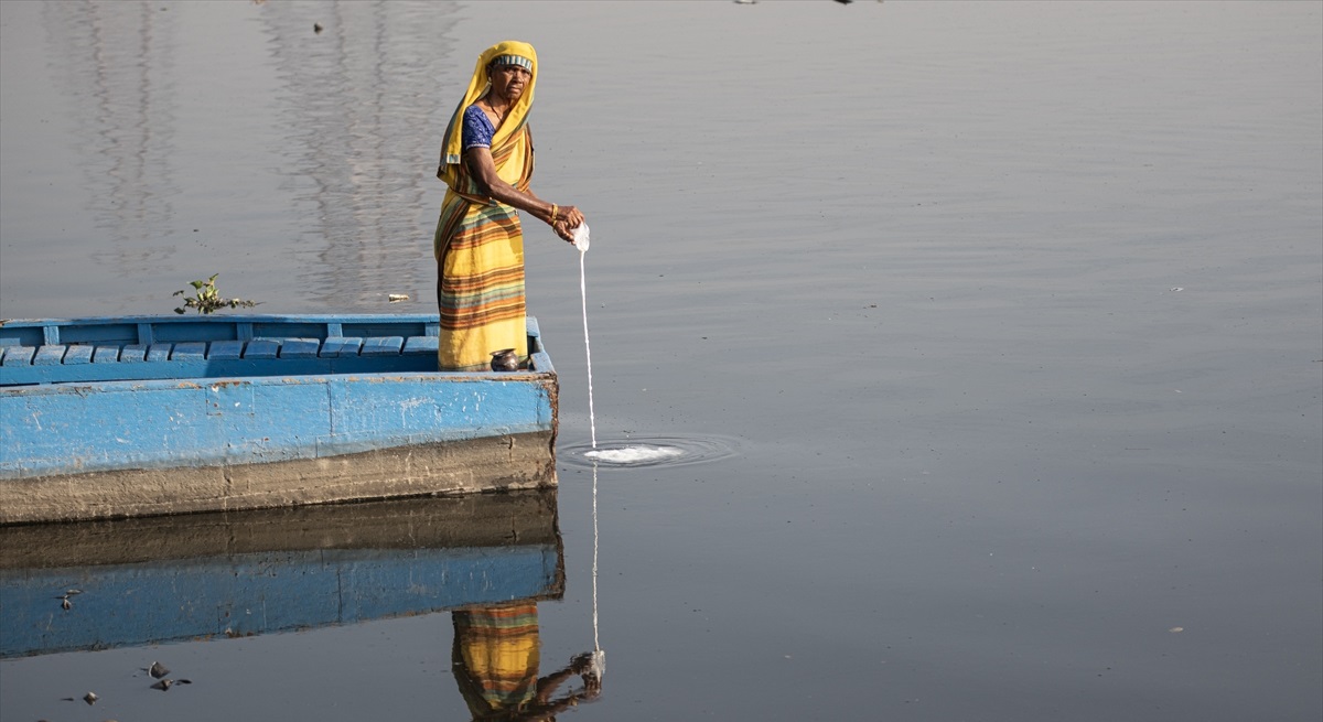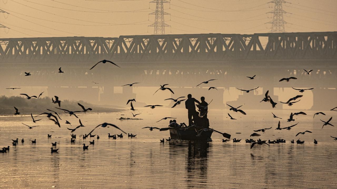 Kalindi Kunj bölgesinde bulunan Yamuna Nehri`nde turistler, kayıklarla gezinti yapabiliyor.