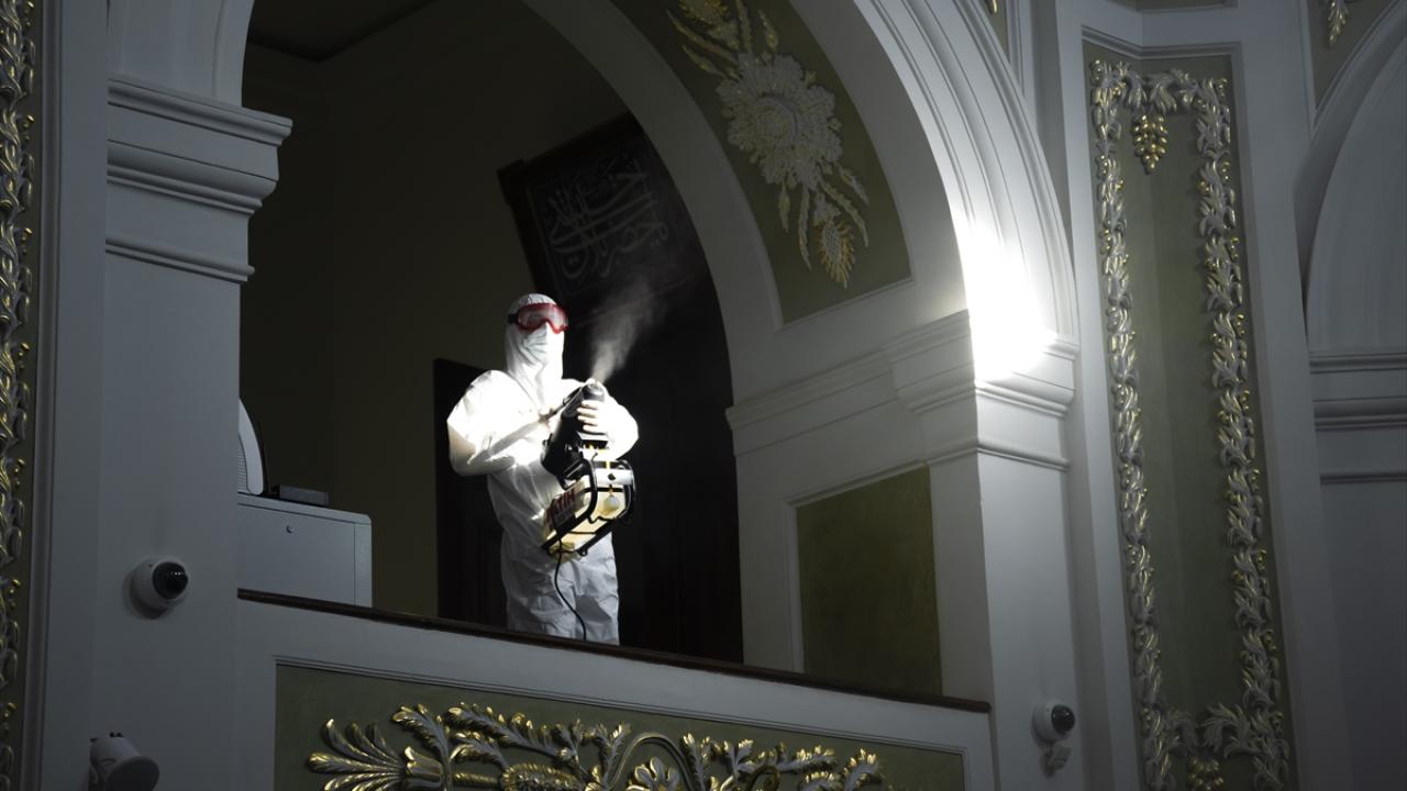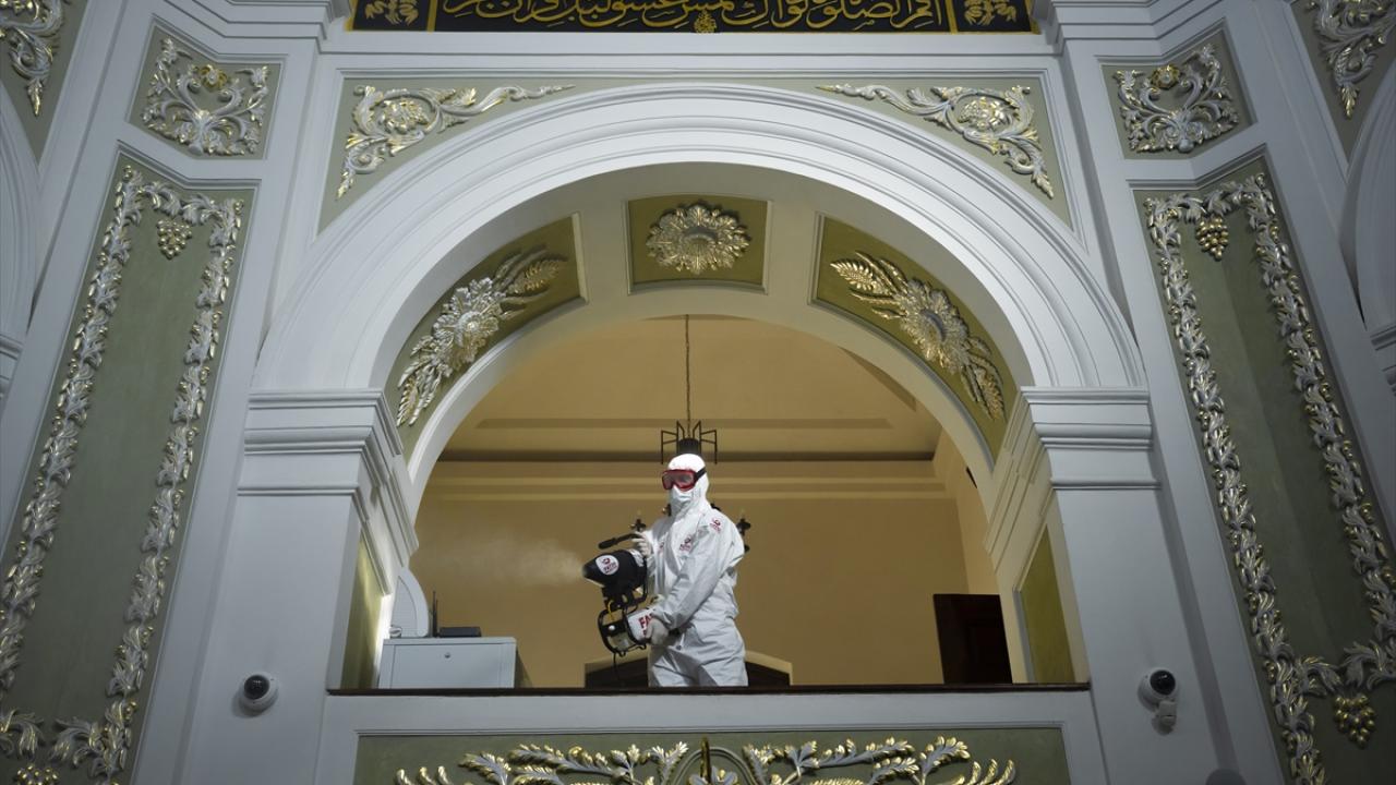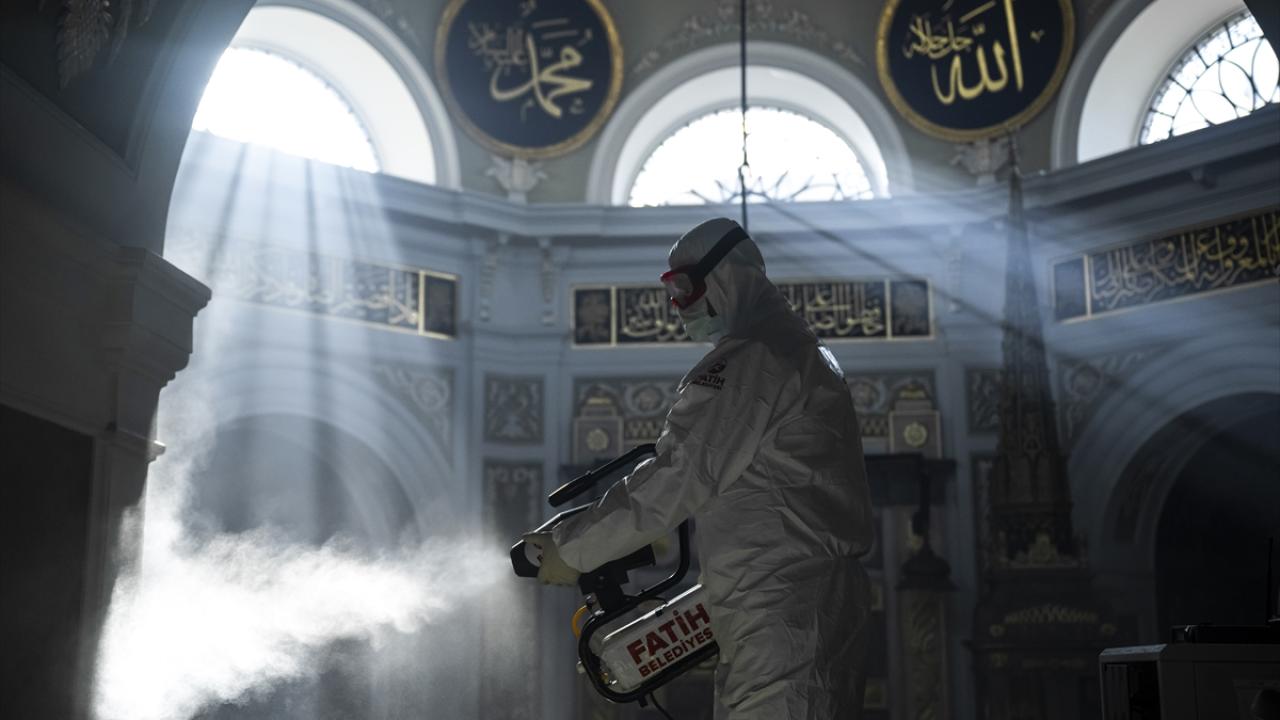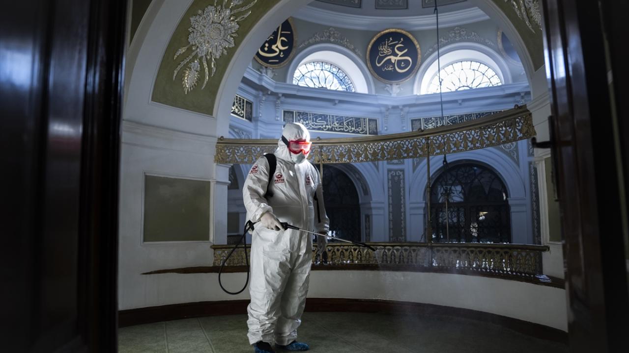 Fatih Belediyesi ekiplerince, Hırka-i Şerif Camii`nde detaylı temizlik çalışması gerçekleştirdi. Ekipler, camii içerisini geleneksel yöntemle gül suyu kullanarak yıkarken, dezenfektan çalışması da yaptı.