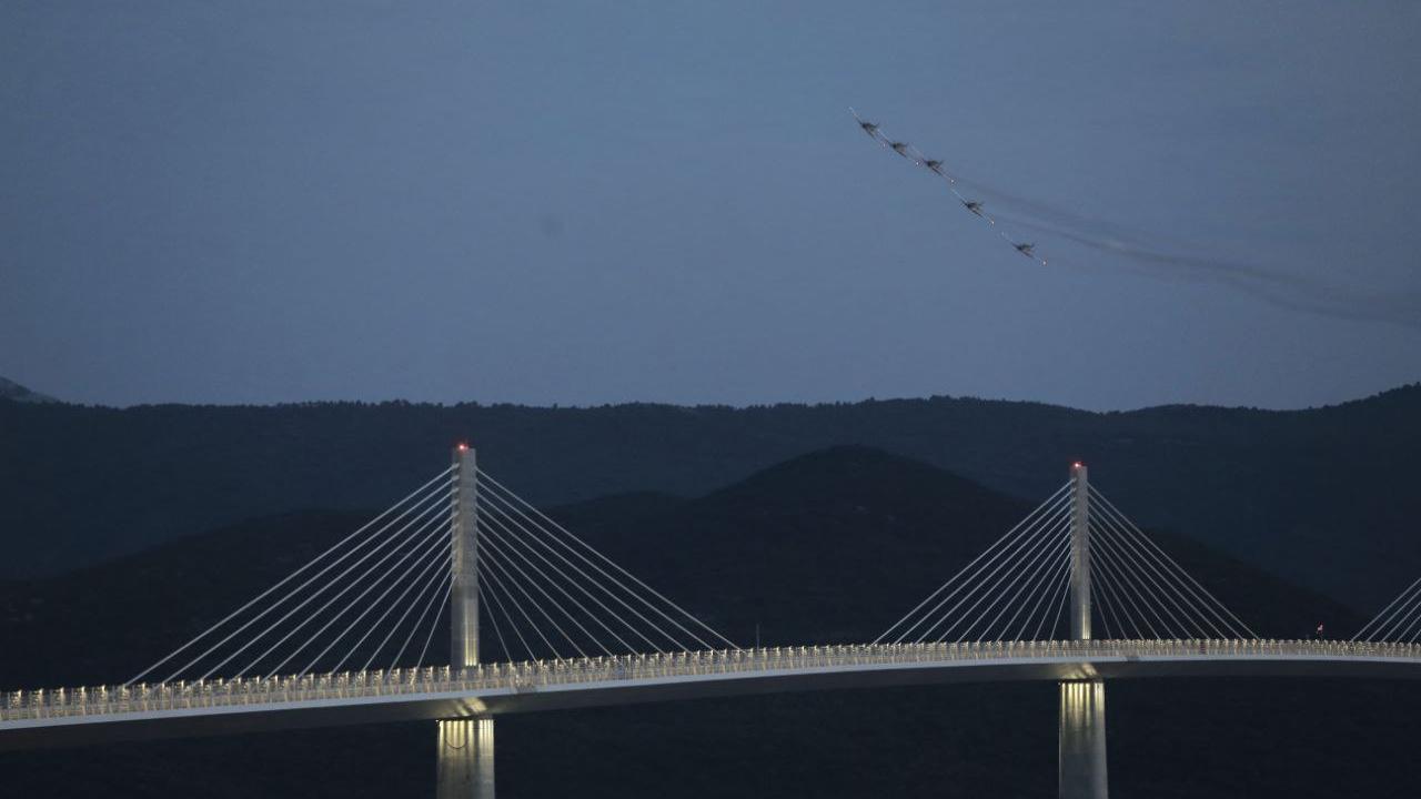 Adriyatik sahilinin önemli bir bölümünü elinde bulunduran Hırvatistan`ın, Komarna ile Brijesta arasında inşa ettiği 55 metre yüksekliğinde ve 2,4 kilometre uzunluğundaki köprünün açılışında ülkenin hiper otomobil üreticisi Rimac`ın "Nevera" isimli ilk modeli de gösterildi.