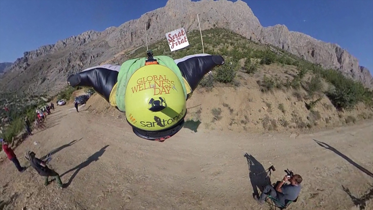 Erzincan'ın Kemaliye ilçesinde bu yıl 41'incisi düzenlenen "Uluslararası Kültür ve Doğa Sporları Şenlikleri" kapsamında, 2 bin 200 rakımdan yapılan yarasa atlayışında (wingsuit) heyecan dolu anlar yaşandı.