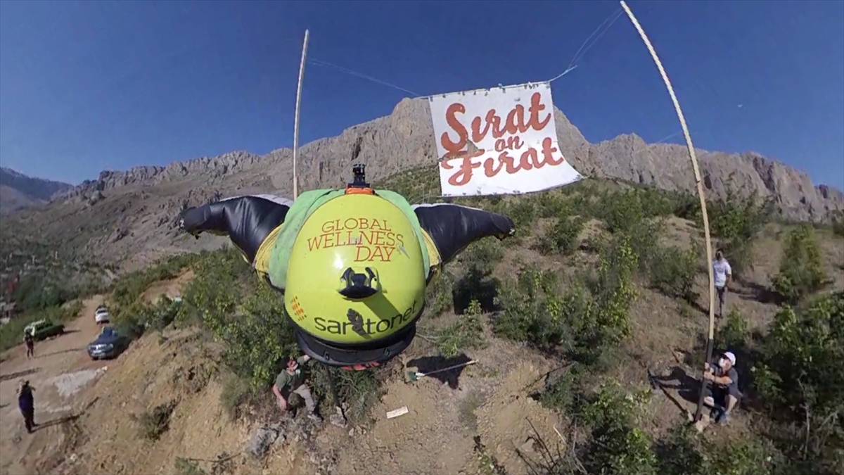 Kemaliye Gabani bölgesindeki etkinlikte base jump ve wingsuit sporcusu Cengiz Koçak, 600 metre yükseklikte kurulan 6 metre uzunluğundaki özel platforma, "Demir Yol" adı verilen ve 517 demir basamaktan oluşan "Via Ferrata" parkurundan tırmandı.