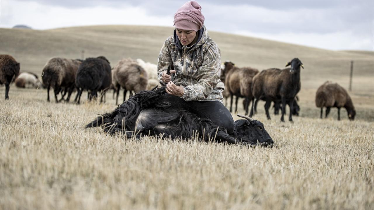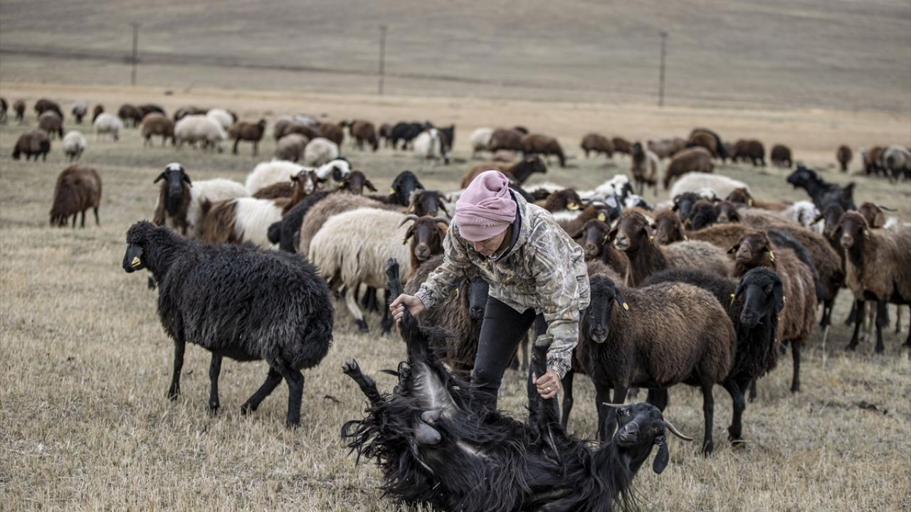 Tek başına yazları ilçenin 2 bin 400 rakımlı dağları ve meralarında otlattığı hayvanlara, kışın ise ahırda bakan kadın, devletten aldığı desteklerle hayvan sayısını 3 yılda 300`e çıkardı.