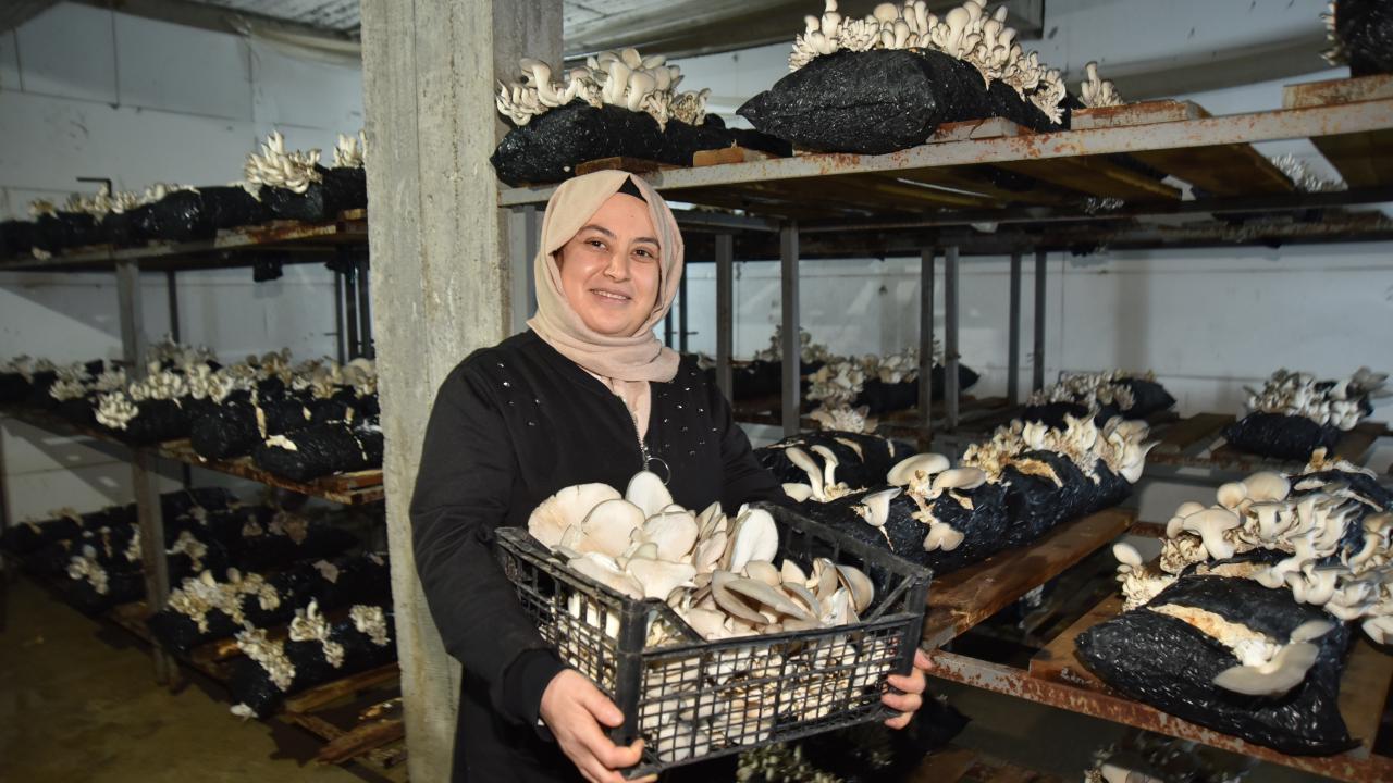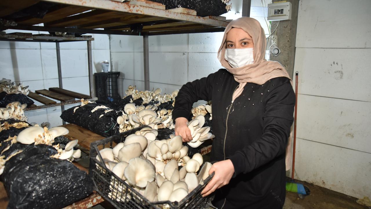 Kahramanmaraş'ın Türkoğlu ilçesinde merak ederek evinin bir odasında istiridye mantarı yetiştirmeye başlayan Cennet Polat, ürünlerine olan ilgiyle üretim alanını büyüttü ve üretimi 4 tona çıkardı.