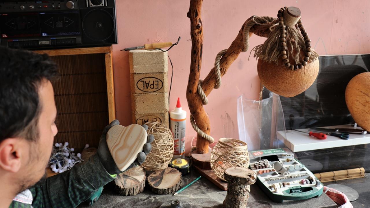 "Dedem ve babam tahtadan kaşık, mızıka gibi ürünler yapardı. Bende onlardan öğrendim. İşsiz kaldığım süreçte eve etmek götürmem gerekiyordu. Bu işe başladım ve yaptığım ürünleri satışa çıkardım. Siparişler artınca yeni aletler alarak daha farklı ürünler tasarladım. Yakacak olarak kullanılan ağaçları abajura ve farklı süs eşyalarına dönüştürüyorum. Bunları sosyal medyadan paylaşınca ilgi arttı. Bu işten ekmeğimi kazanmaya başladım. Çöp dediğimiz atık malzemeleri değerlendirdiğimizde çok güzel şeyler ortaya çıkıyor."