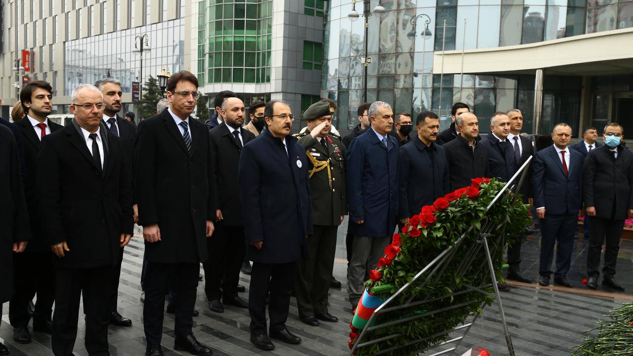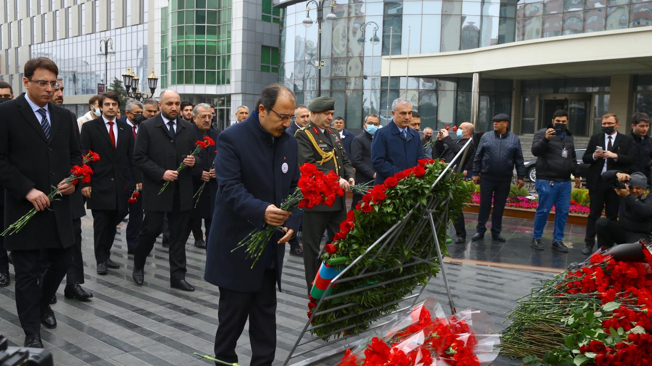 Türkiye`nin Bakü Büyükelçisi Cahit Bağcı, büyükelçilik çalışanları ve Bakü`deki Türk kurum ve kuruluşlarının temsilcileri de Ana Feryadı Anıtı`nı ziyaret ederek Hocalı Katliamı`nın kurbanlarını andı.