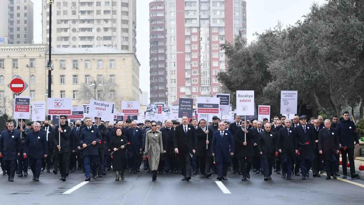 Azerbaycan'da, Ermenilerin 26 Şubat 1992'de yaptığı Hocalı Katliamı'nın şehitleri anılıyor. Azerbaycanlılar, Ermenilerin Hocalı'da katlettiği 613 kişiyi anmak için Bakü'deki Ana Feryadı Anıtı'na akın etti.