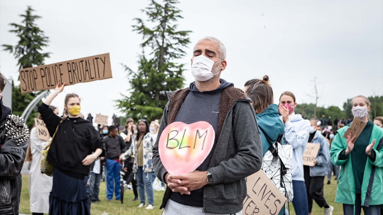 Göstericiler, "Irkçılığa hayır de" ve "Siyahların hayatı değerlidir" sloganları attı.
