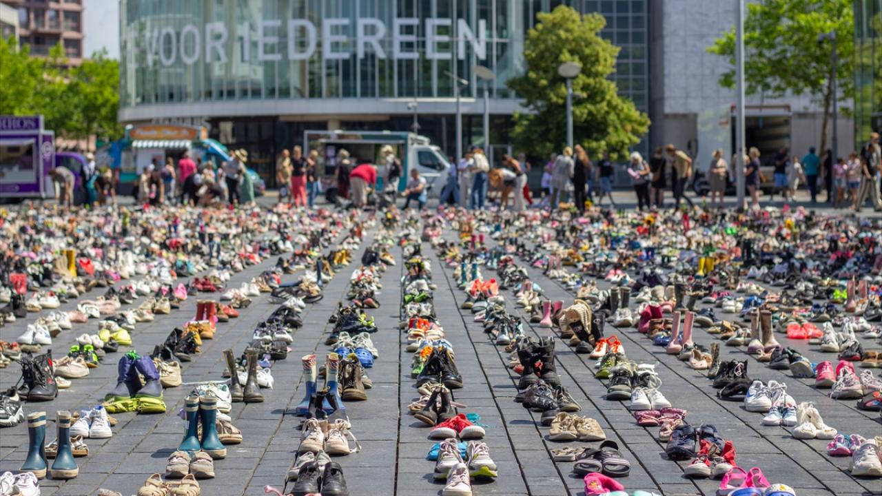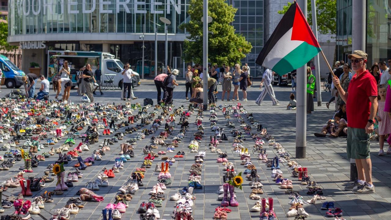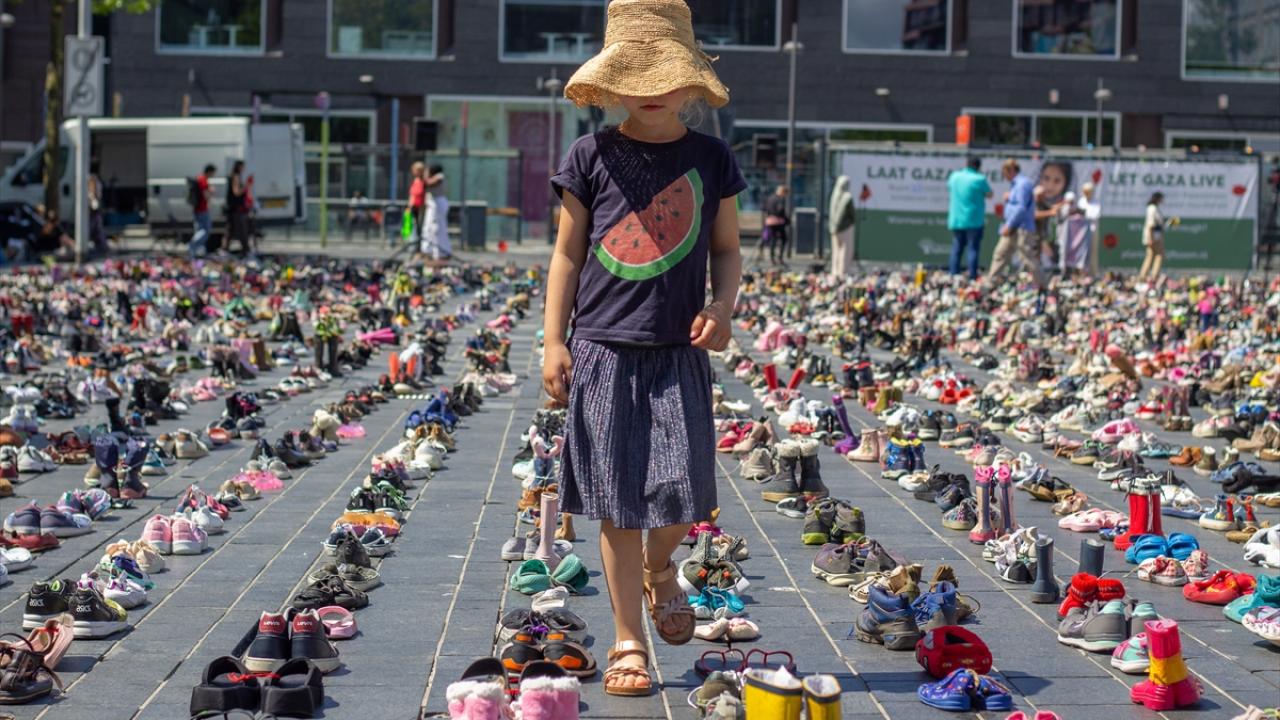 Hollanda'nın Almere kentinde, İsrail'in Gazze'ye yönelik saldırılarında öldürülen Filistinli çocuklar için bir kez daha anma etkinliği düzenlendi.