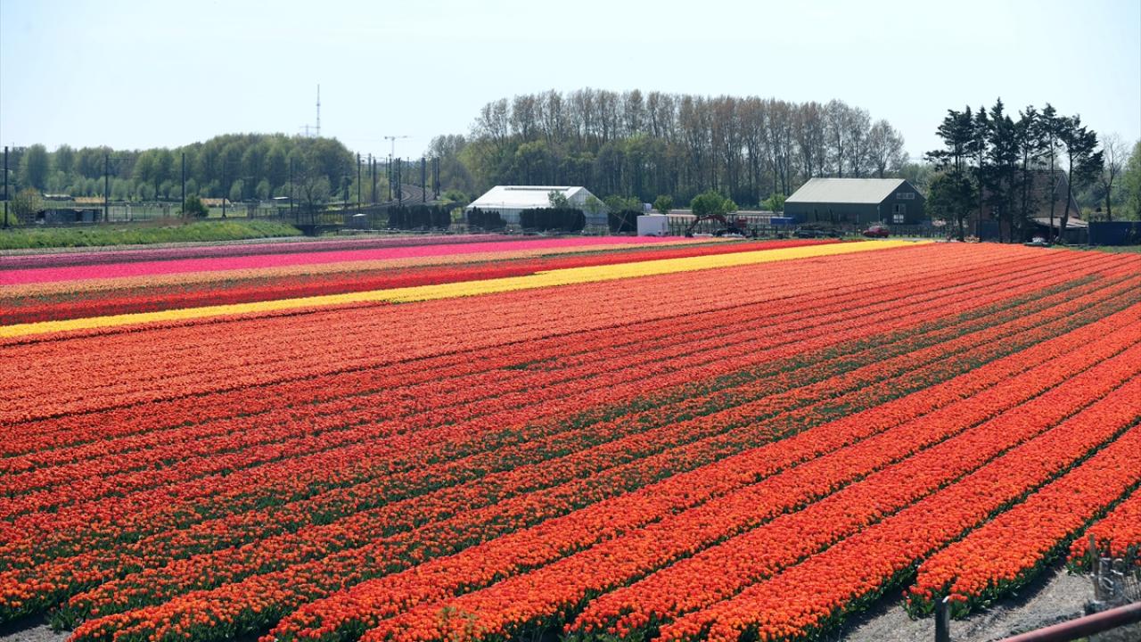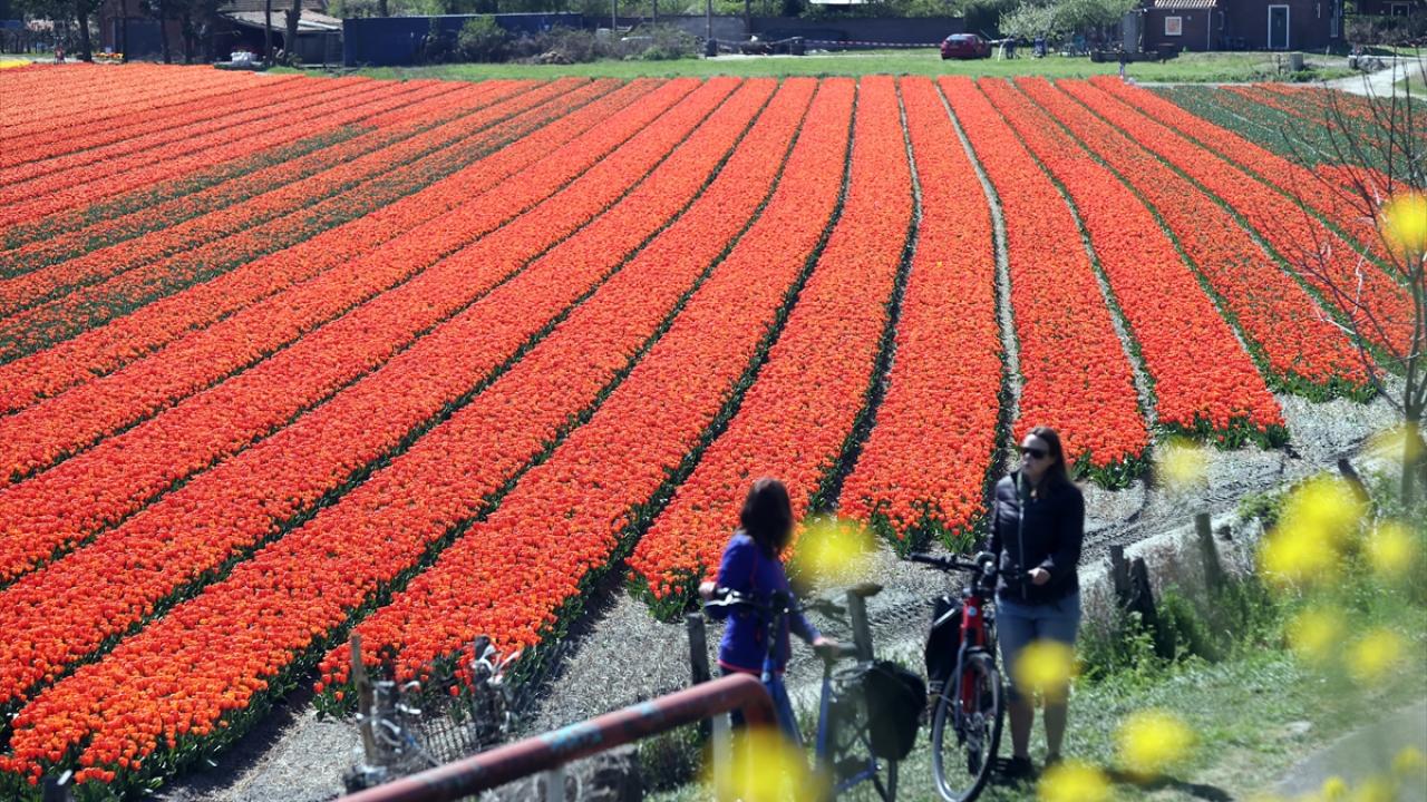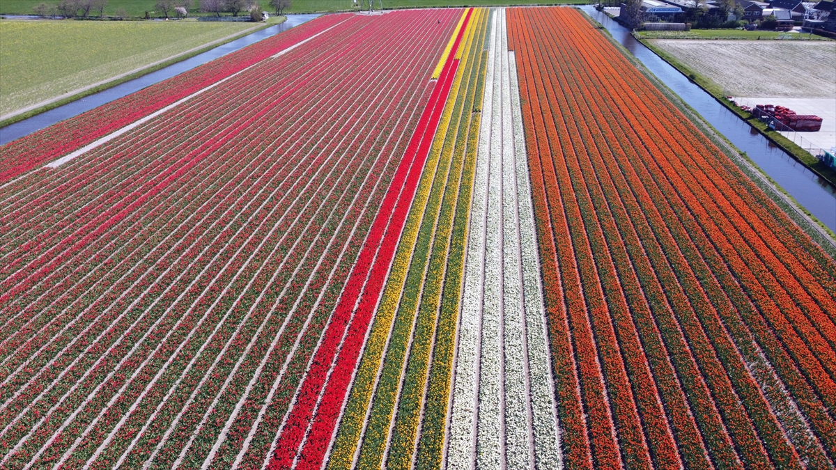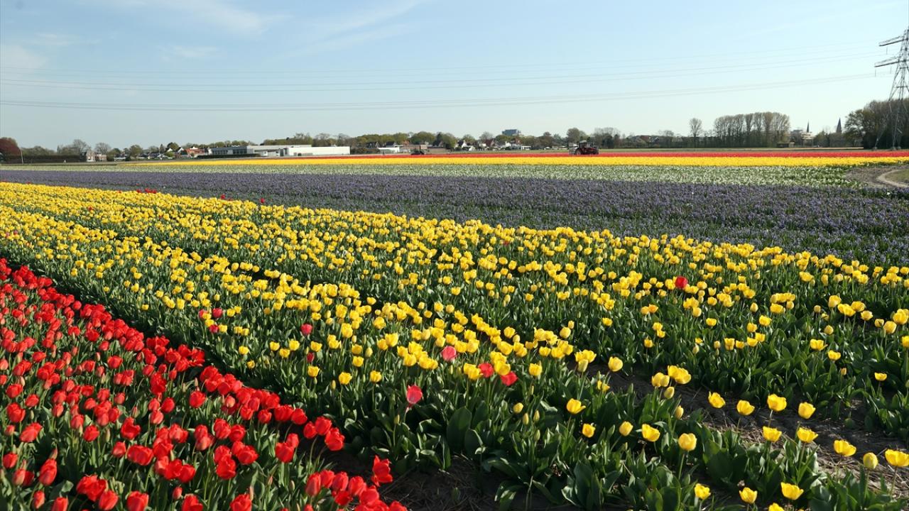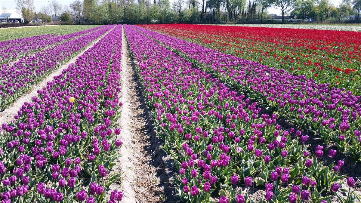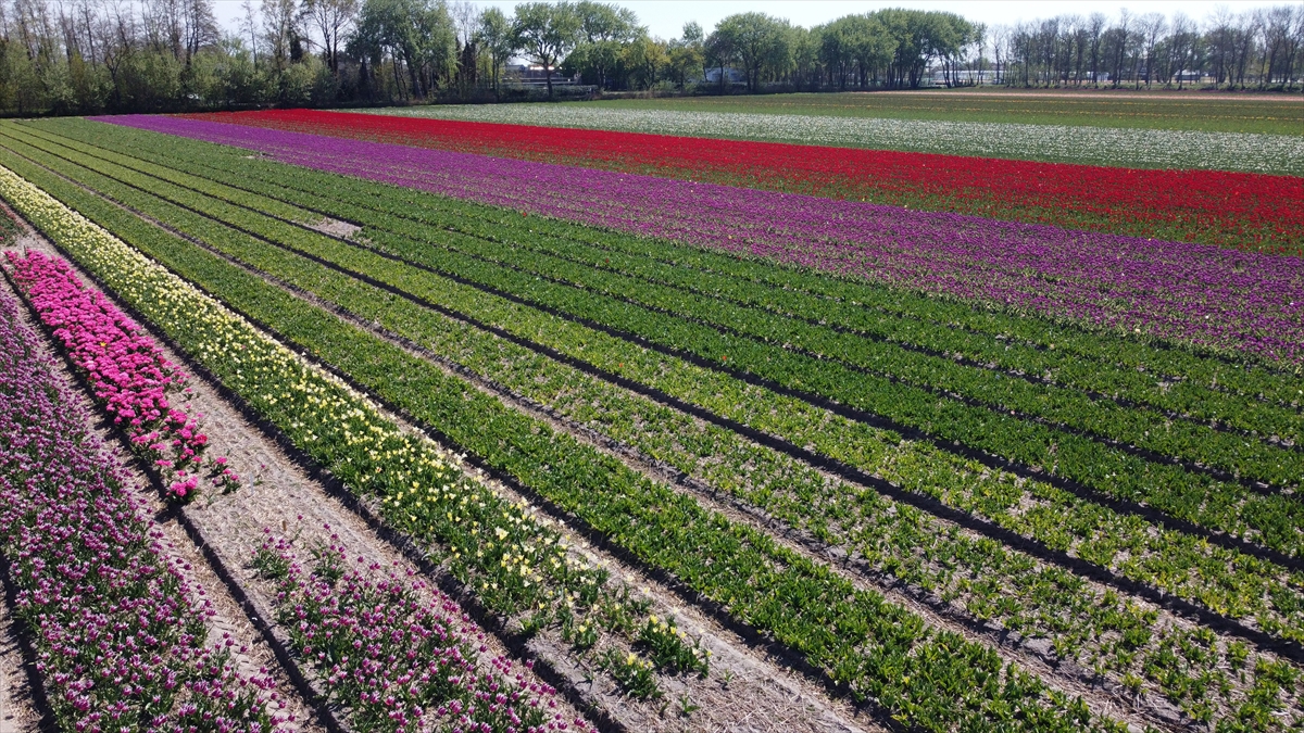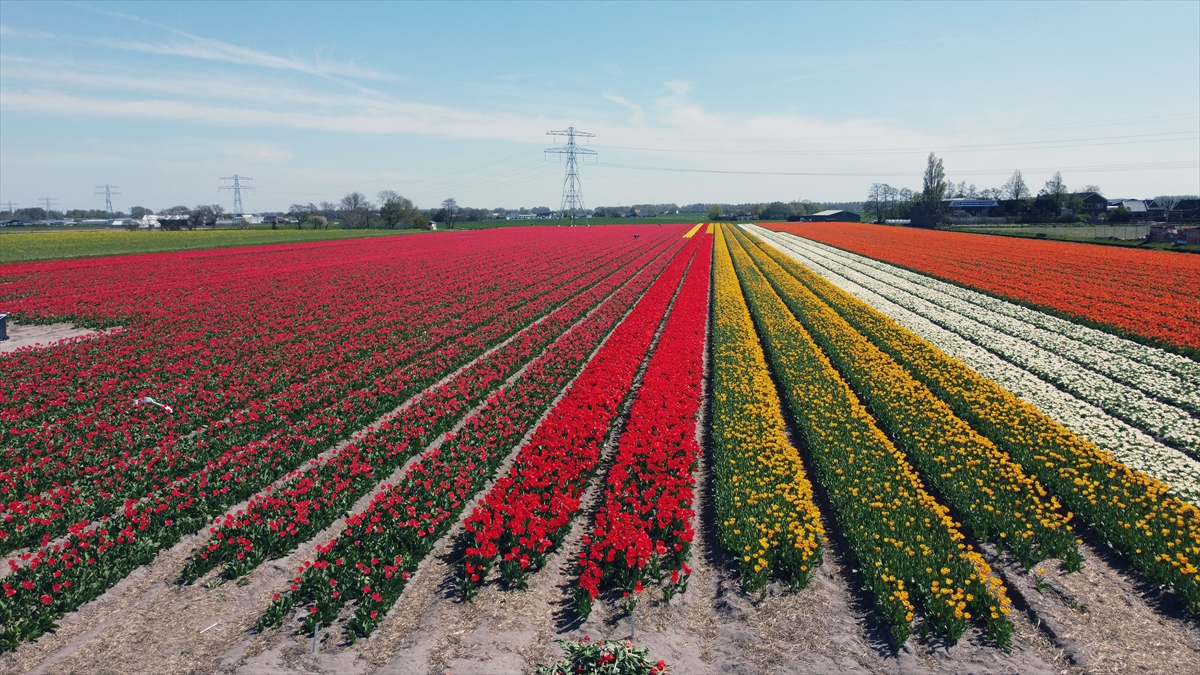 Hollanda'da baharın gelmesiyle açan laleler, tarlaları türlü renklere büründürdü.