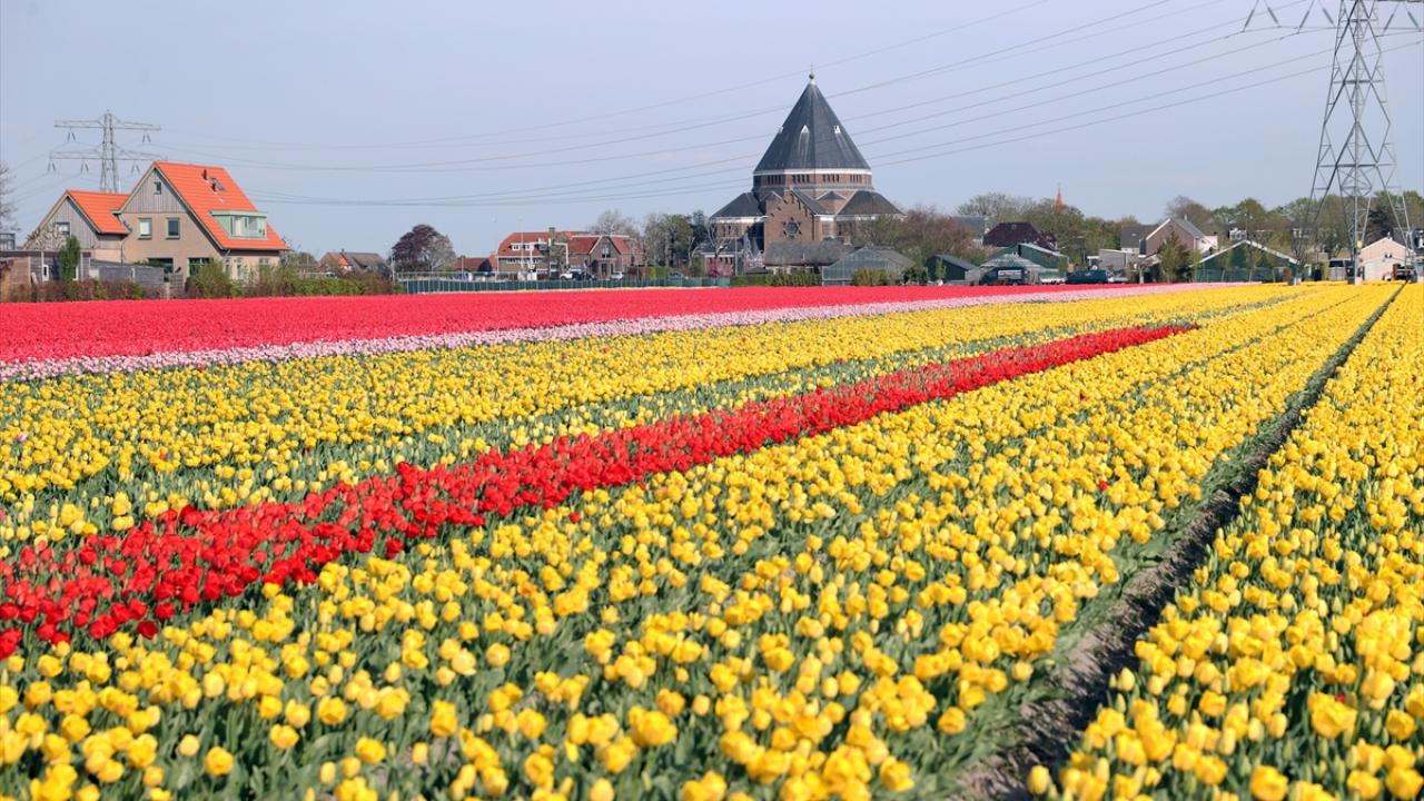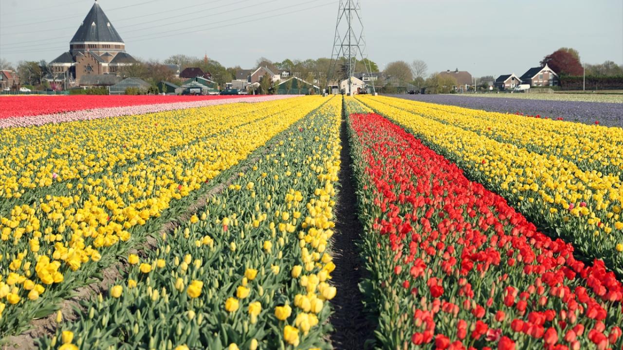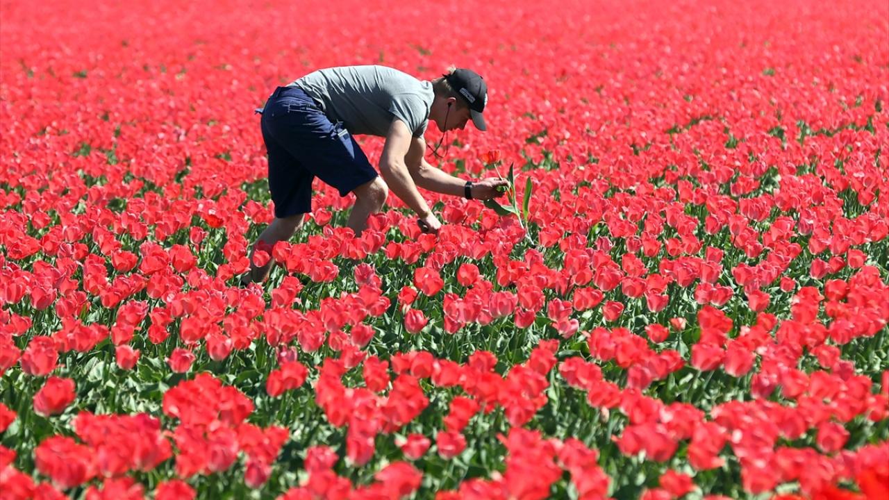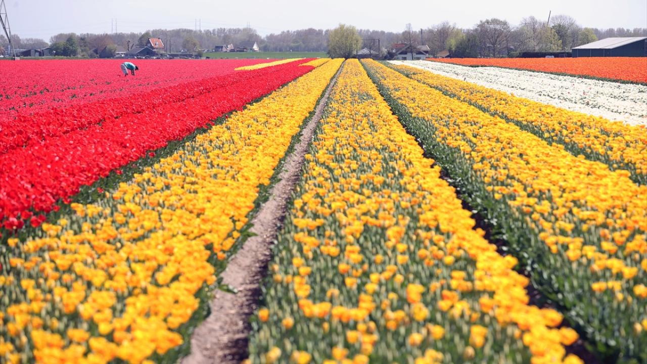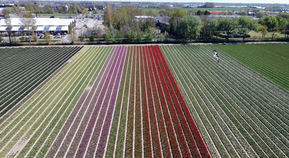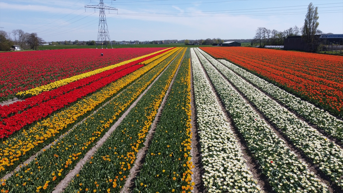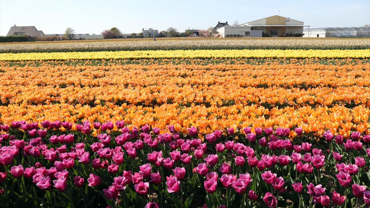 Hollanda'da baharın gelmesiyle açan laleler, tarlaları türlü renklere büründürdü.