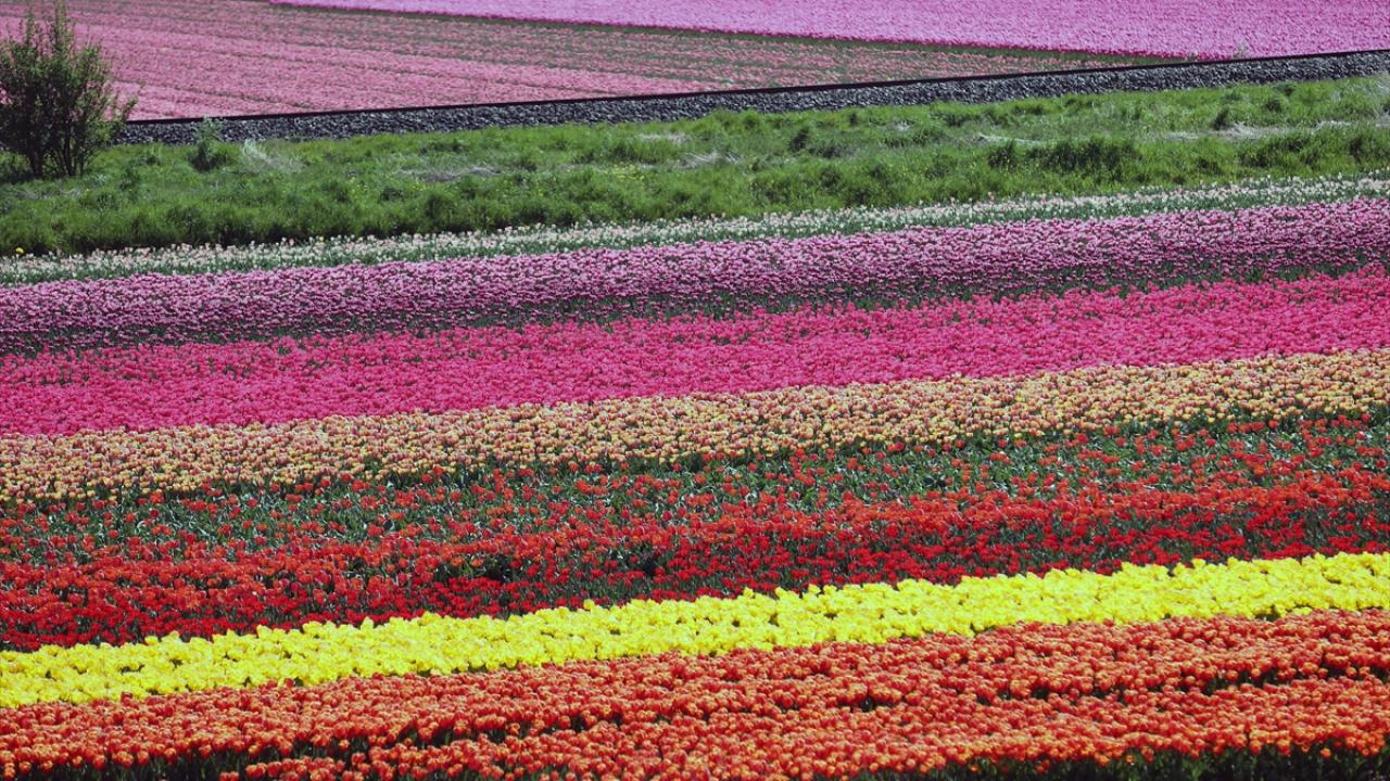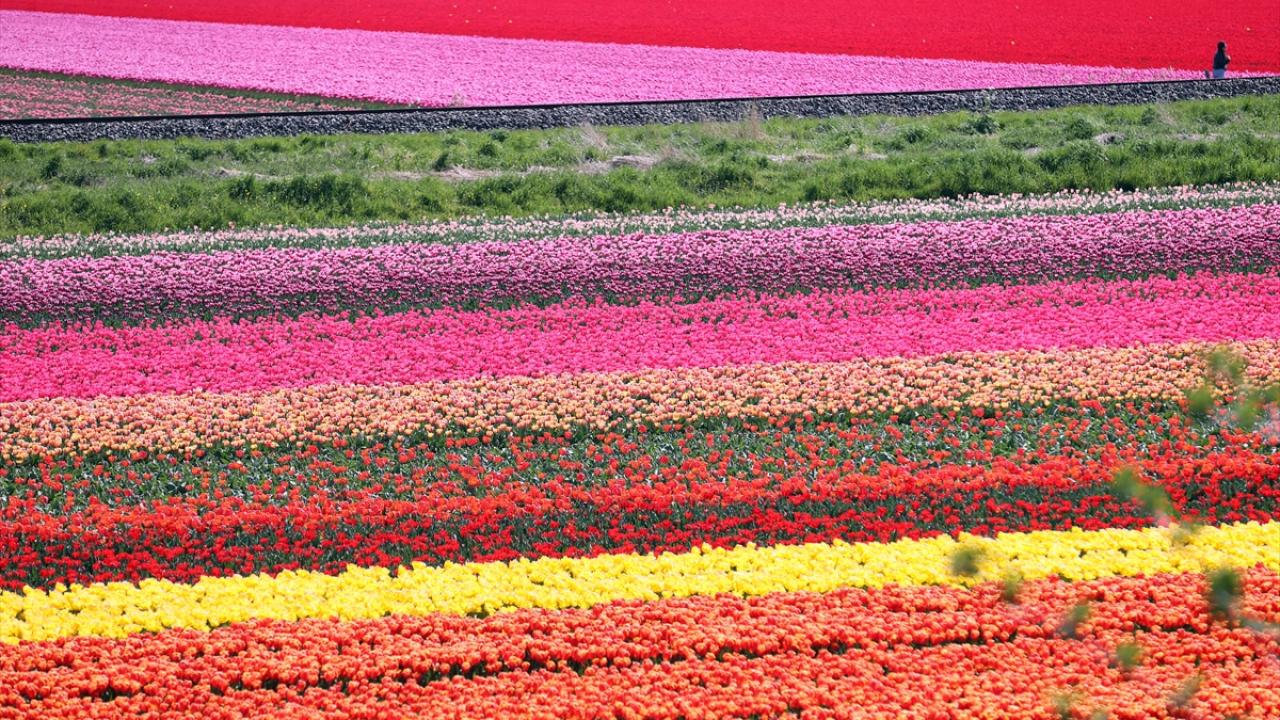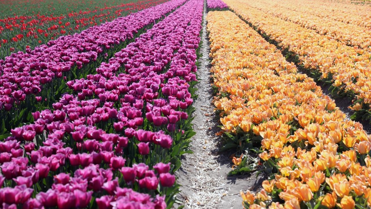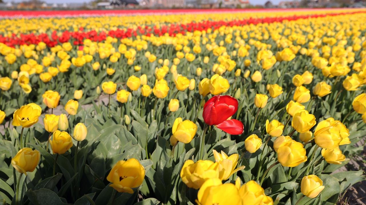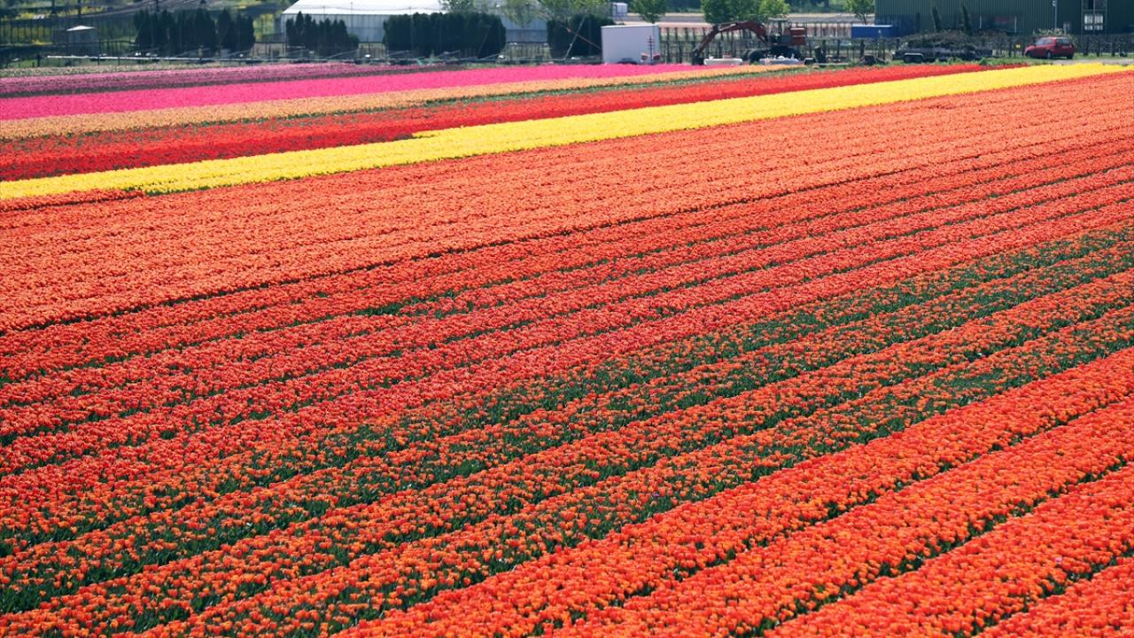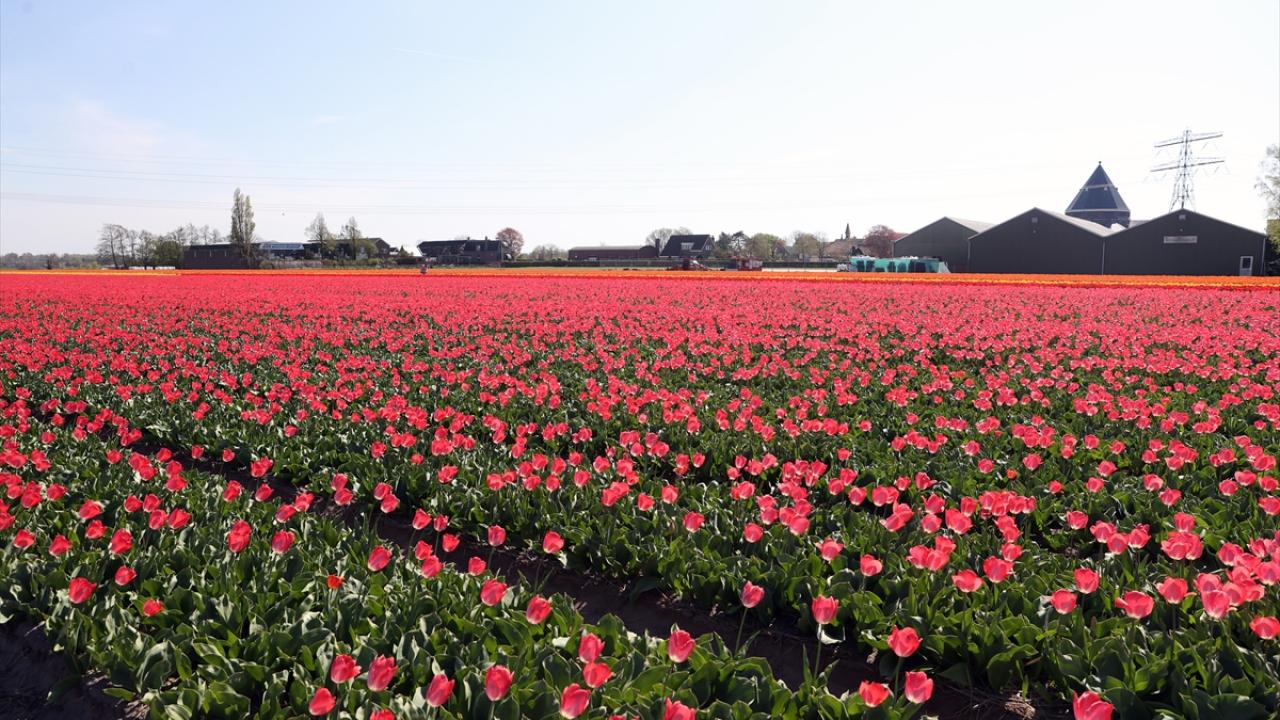 Hollanda'da baharın gelmesiyle açan laleler, tarlaları türlü renklere büründürdü.
