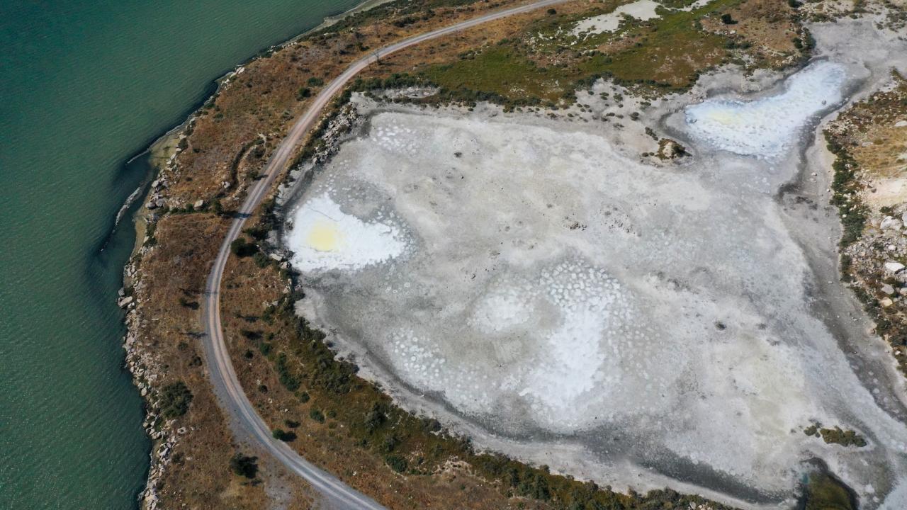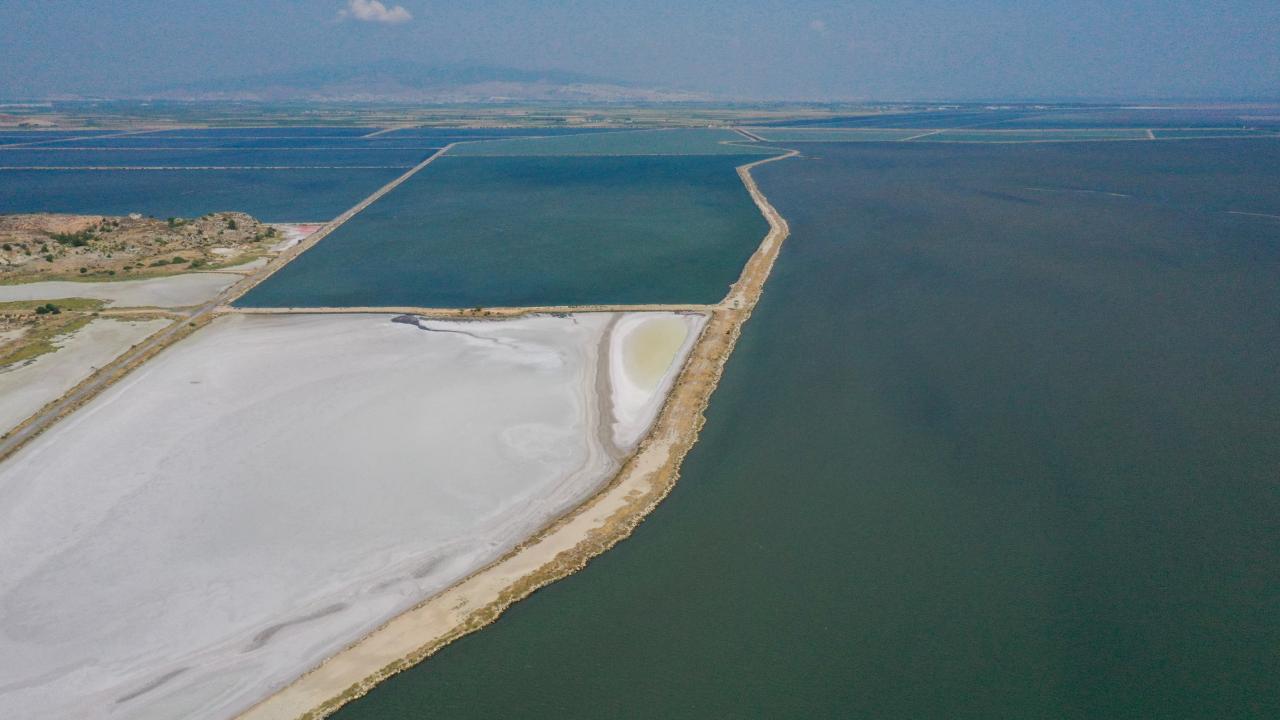 Saha içinde yer alan Çamaltı Tuzlası`nın tuz tavaları, başta flamingolar olmak üzere pek çok kuş türünün besini olan canlıları barındırıyor.