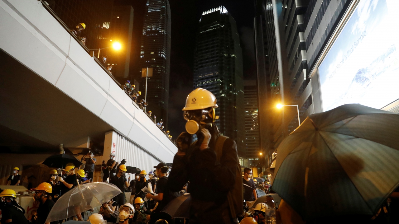 Polisin bugün sadece gösterilerin Chater Garden parkında yapılmasına izin vermesi üzerine protestocular iki gruba ayrılarak alışveriş bölgesi olan Causeway Bay ve Çin`in bölgedeki irtibat ofisine doğru yürüdü.