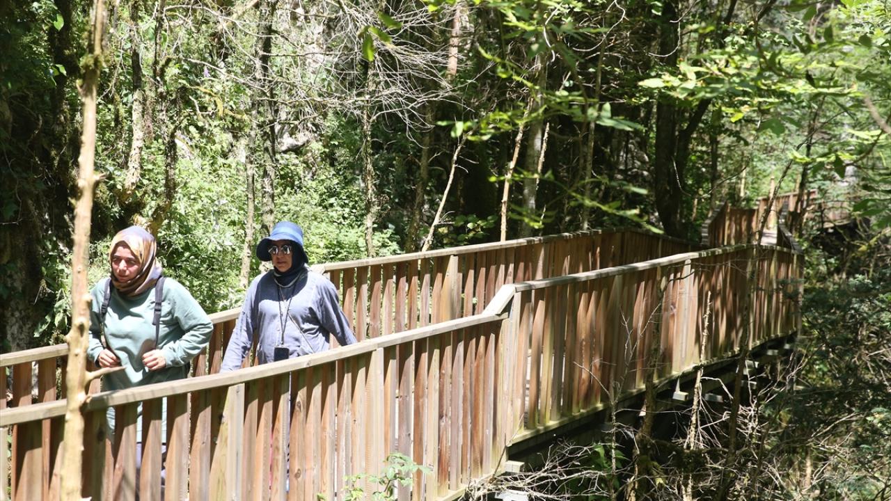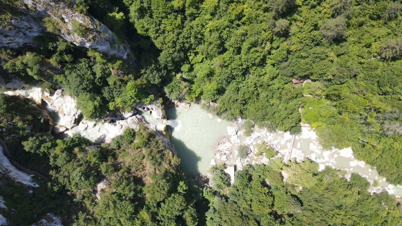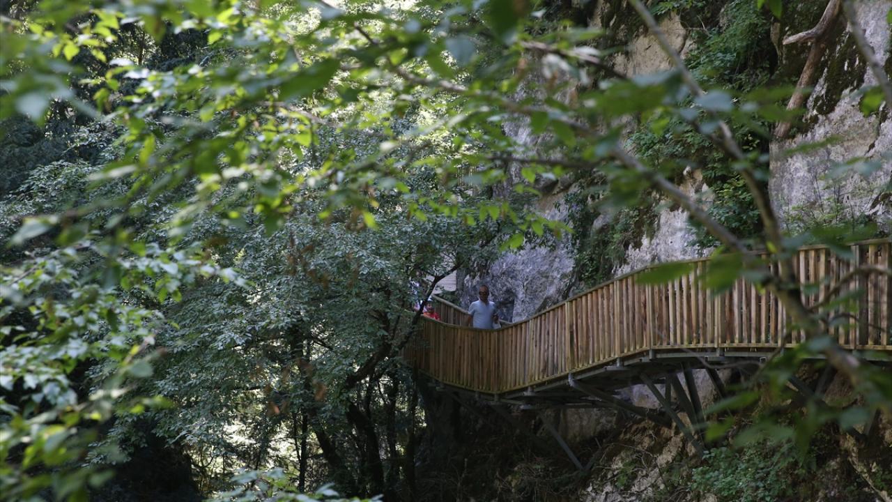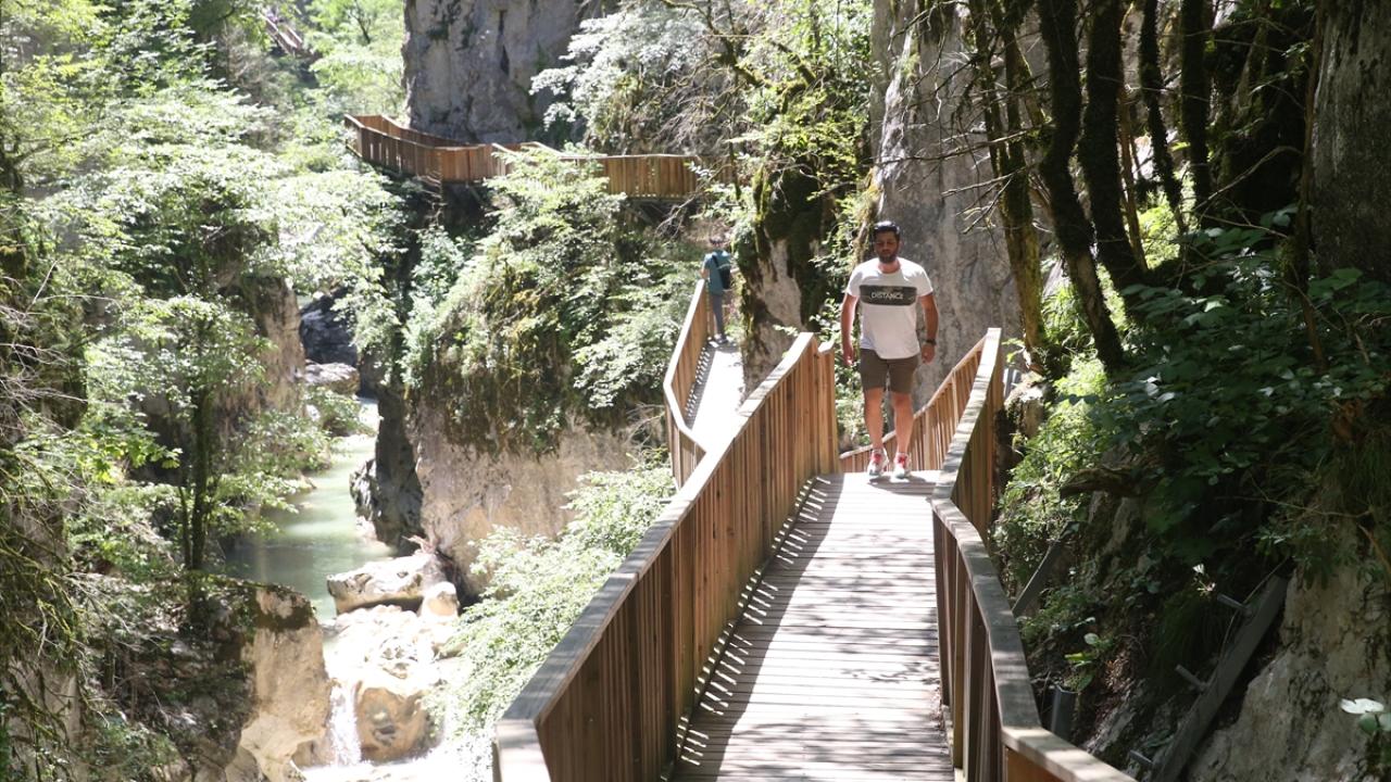 Platformdan geçerken kanyonun tüm doğal güzelliklerini görme imkanı bulan turistler, yürüyüş sonunda doğal havuz niteliğindeki Ilıca Şelalesi`ne ulaşıyor.
