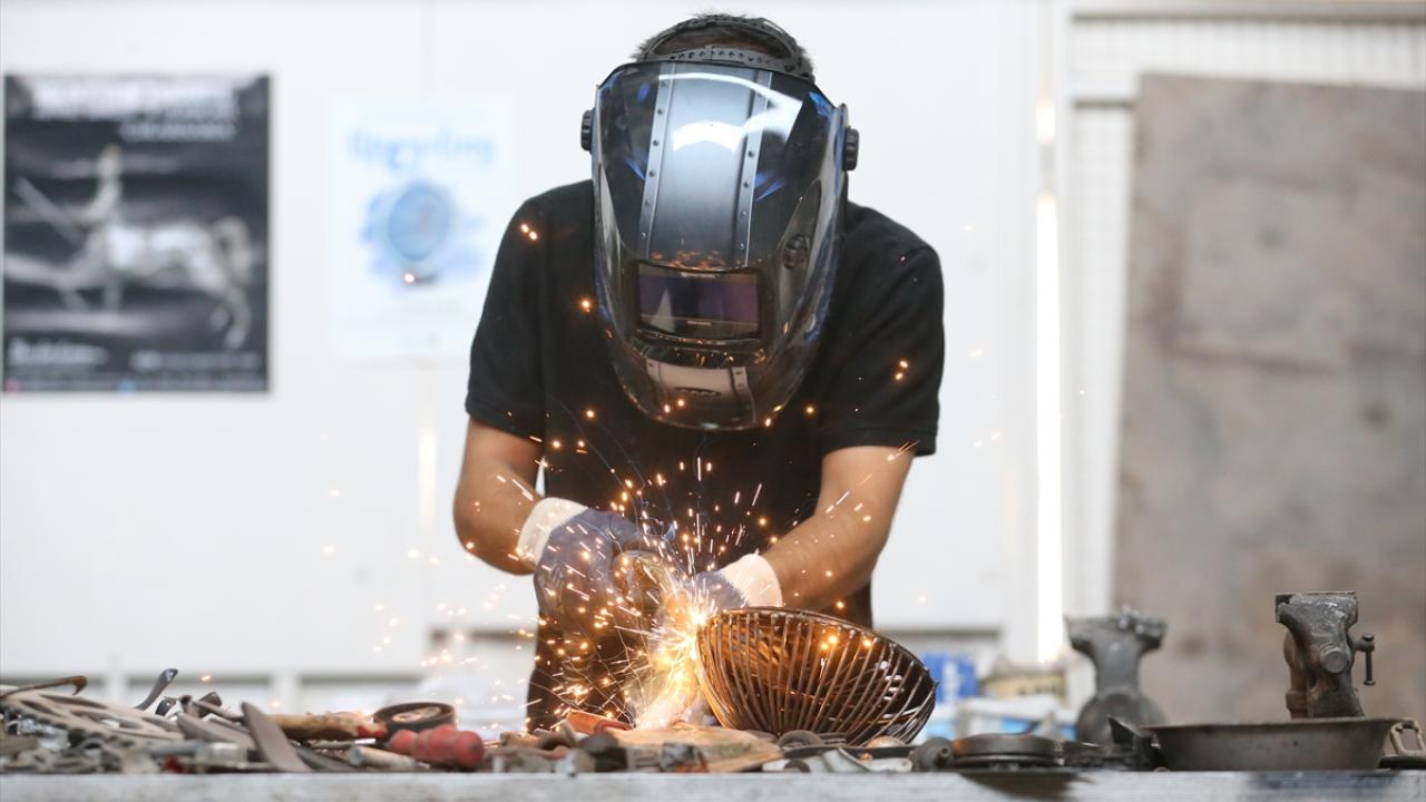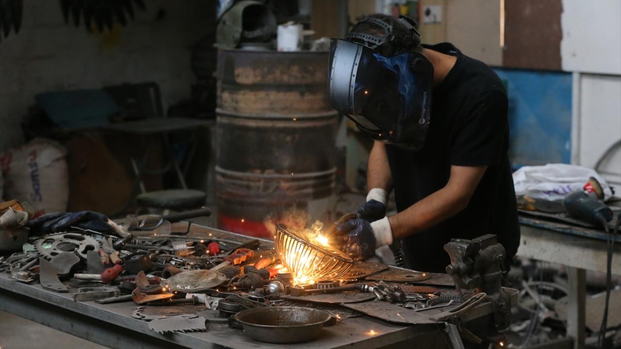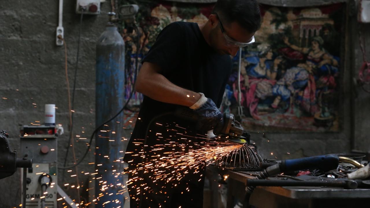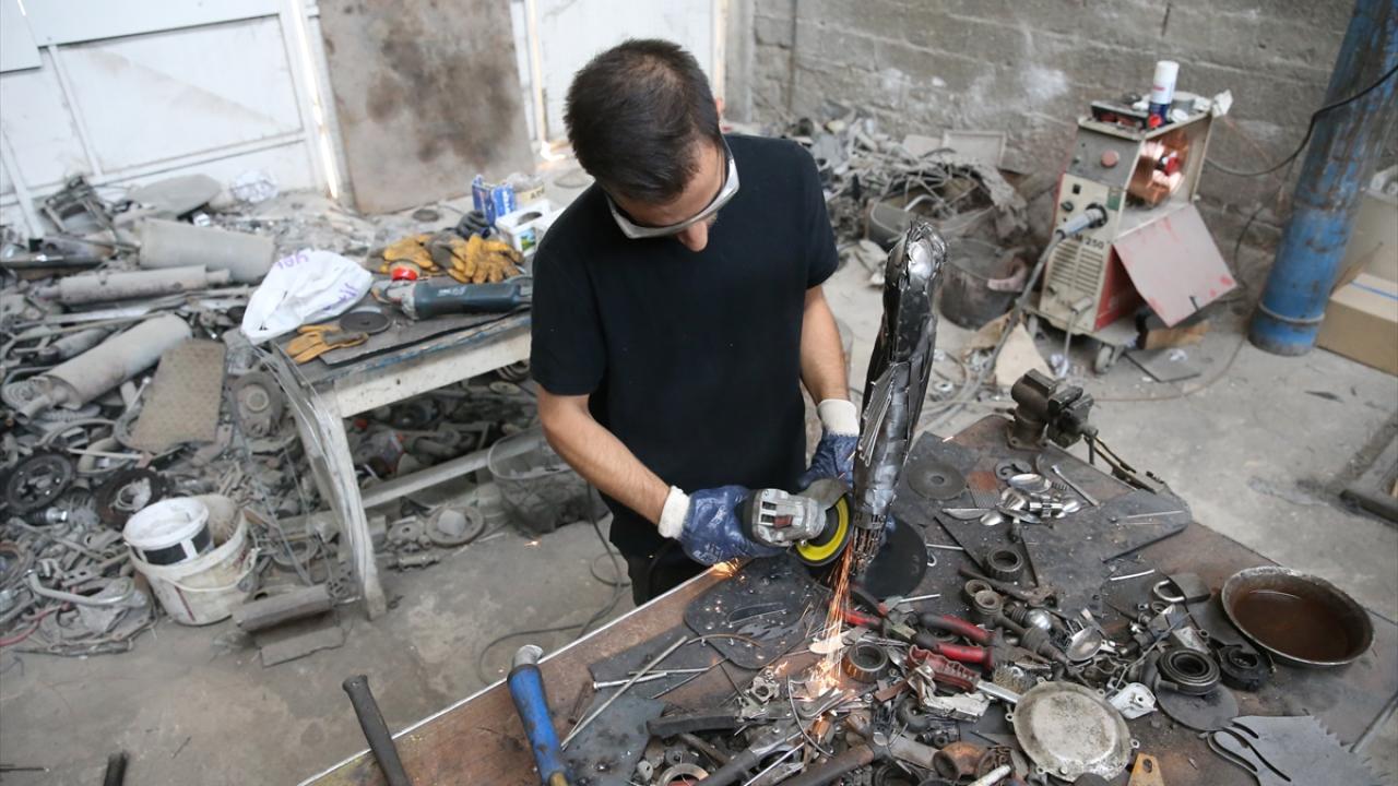 Mücahit Diyar Arız, hurda metallerden yaptığı eserlerinde sevdiği konuları çalışmayı tercih ettiğini söyledi.