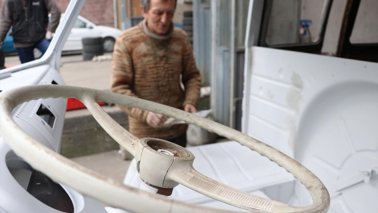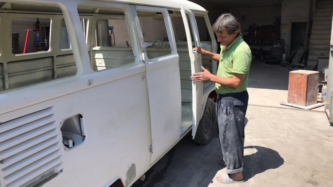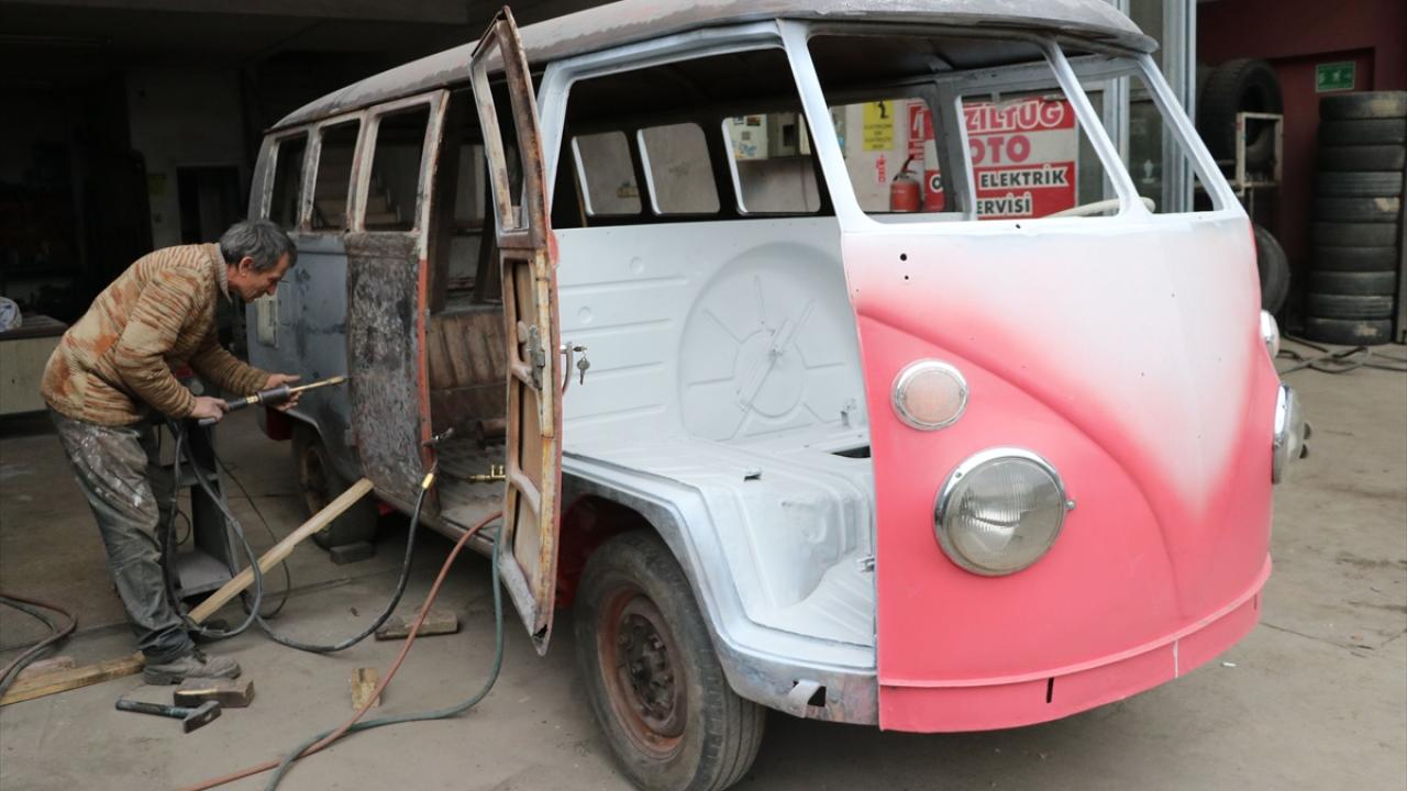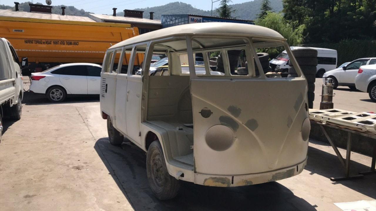 Zonguldak'ta otomobil tamirciliği yapan Kadir Dalkoz, Almanya'da yaşayan yeğeninin hurda olarak satın aldığı 1964 model minibüsü 3 yılda el emeğiyle orijinaline yakın görünüme kavuşturdu.