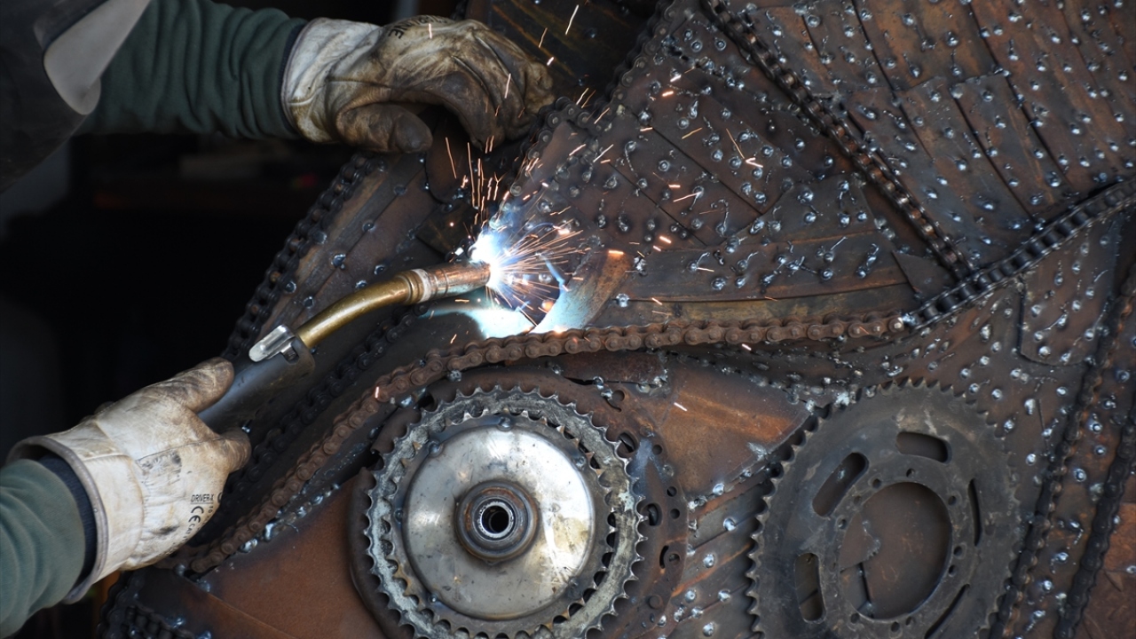 Hurda otomobil ve motosiklet parçalarına sanatsal dokunuş