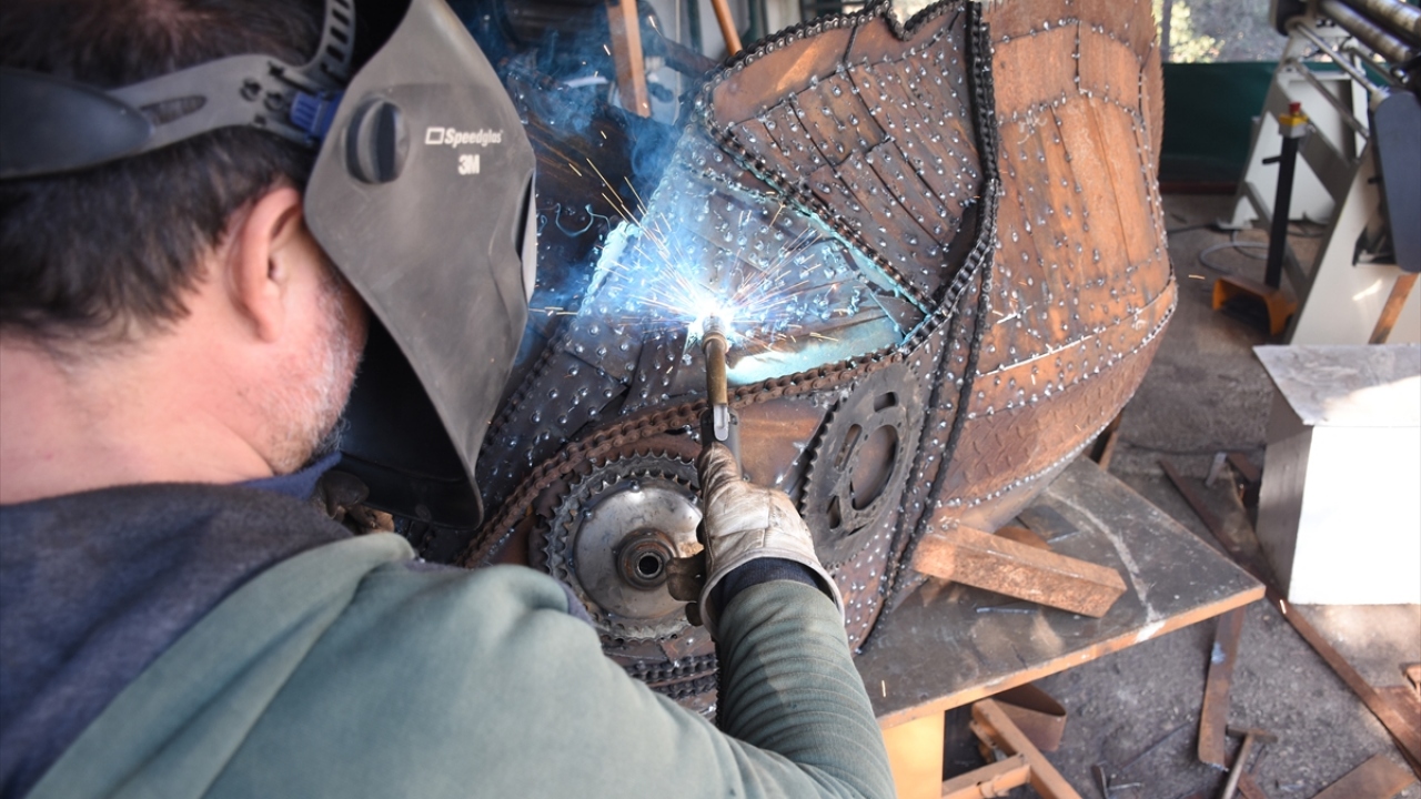 Projelerini sürdürmeye devam edeceğine işaret eden Koçak, 6 metrelik bir kayayı oyarak metalle farklı bir figür yapmaya başladığını vurguladı.