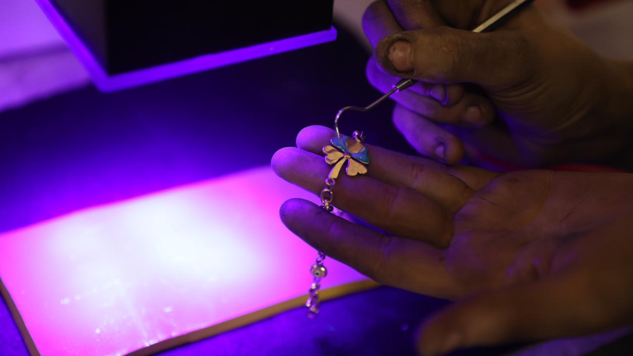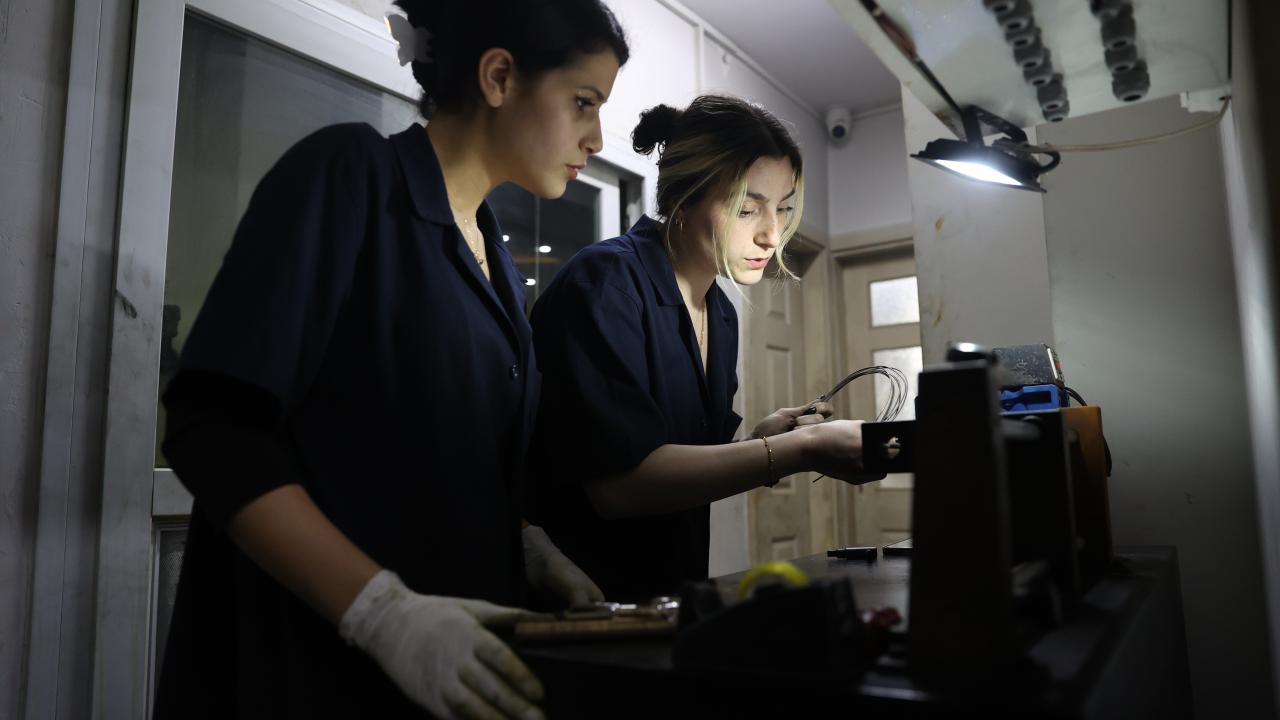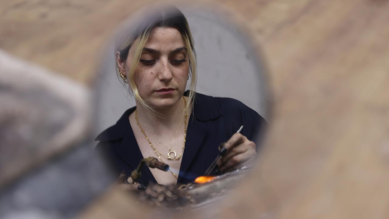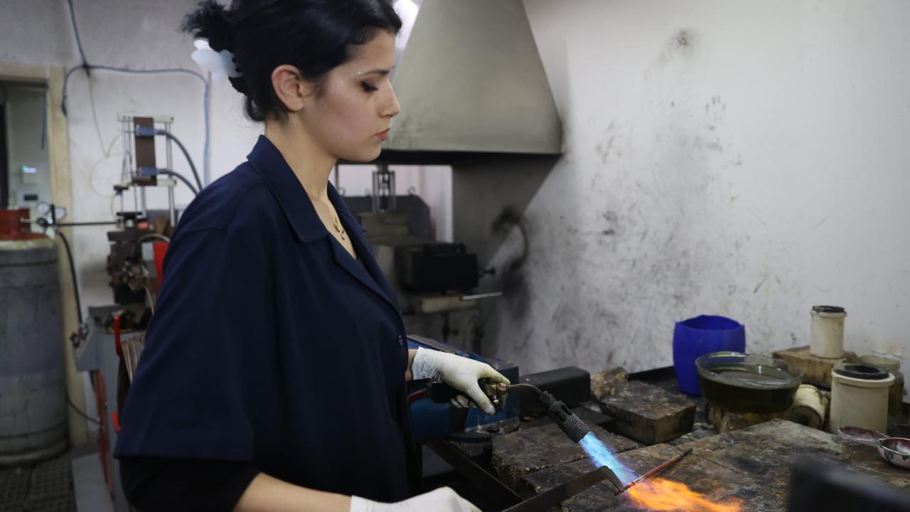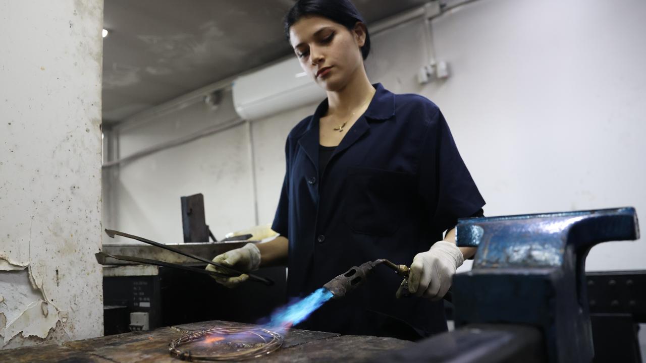 Mersin'de çırak olarak başladıkları atölyede kuyumculuğu öğrenen iki genç kadın, yüksek sıcaklıkta erittikleri hurda ve külçe altınlardan özgün tasarımlar yapıyor.