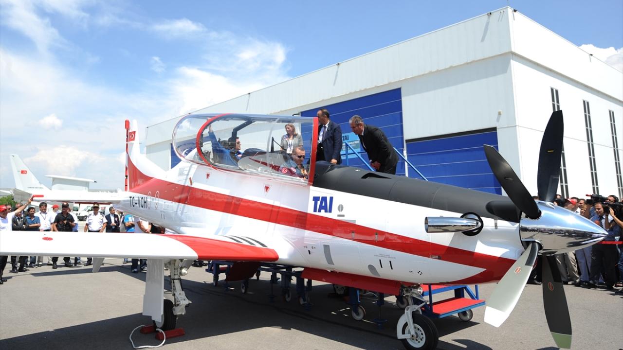 Türk Başlangıç ve Temel Eğitim Uçağı HÜRKUŞ, yer ve hava testleri yapılmak üzere 27 Haziran 2012`de düzenlenen törenle hangardan çıkarıldı. Dönemin Başbakanı Recep Tayyip Erdoğan, uçağın kokpitine girerek yetkililerden bilgi aldı. (Arşiv)