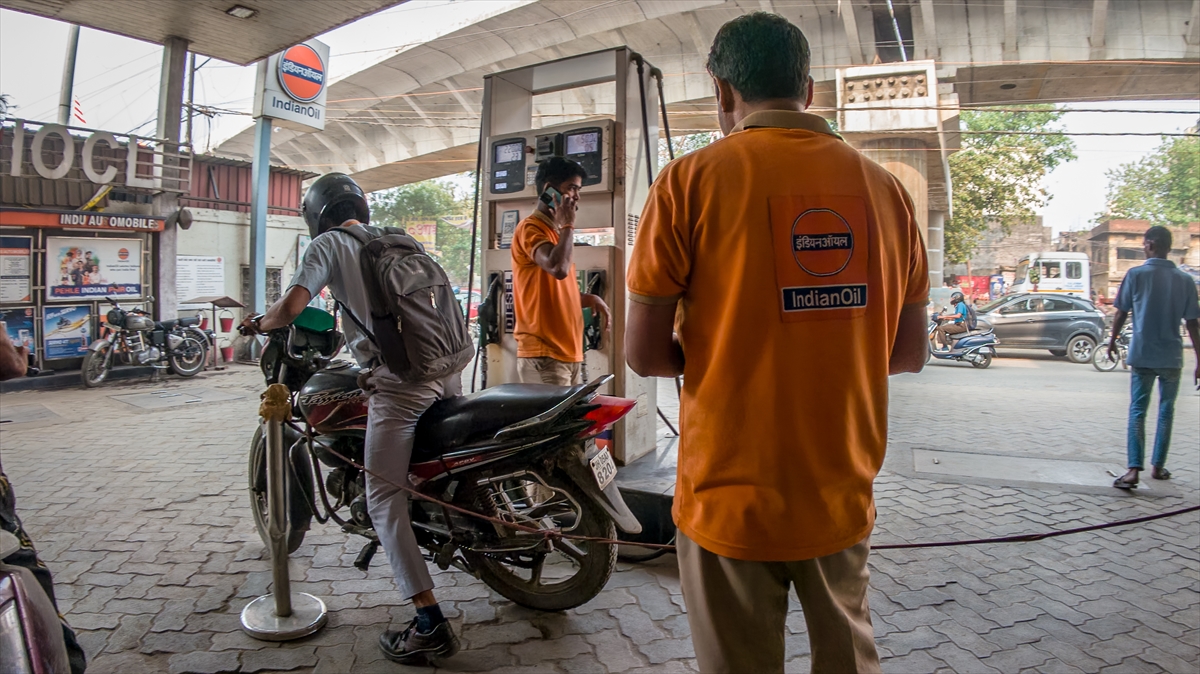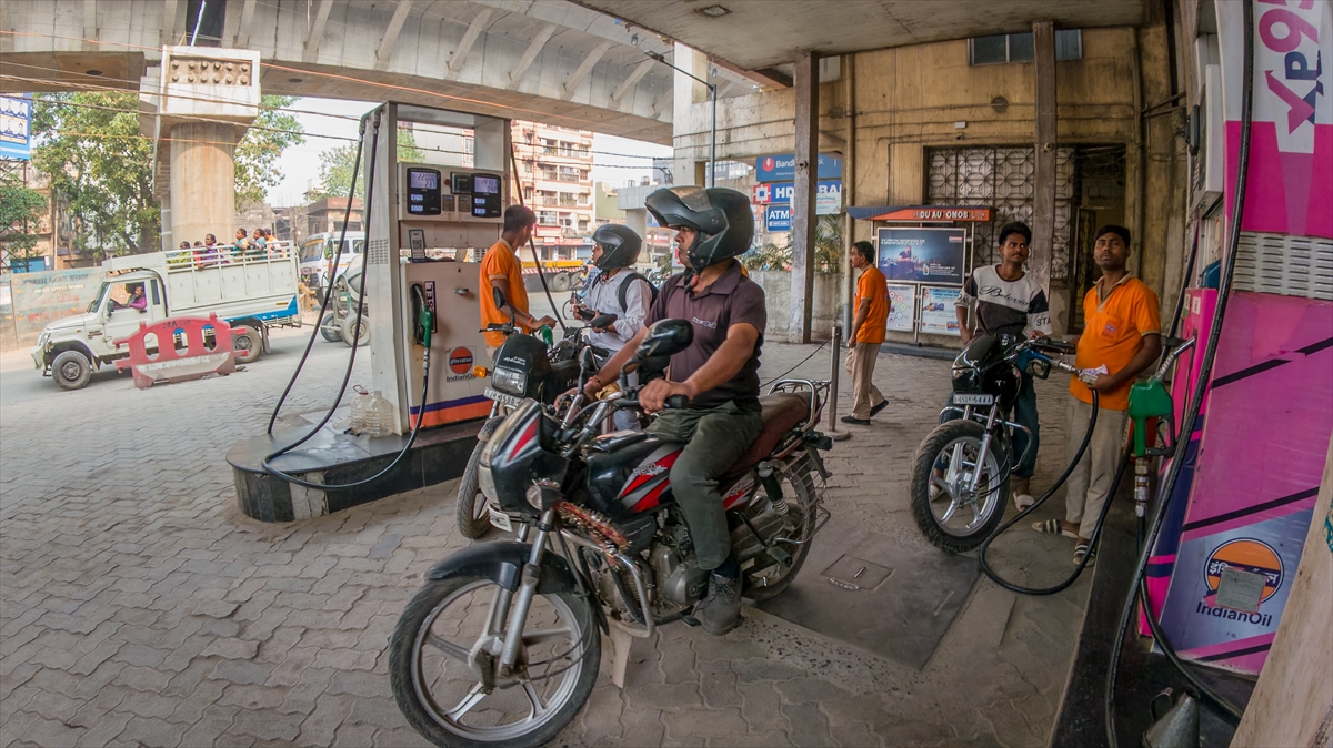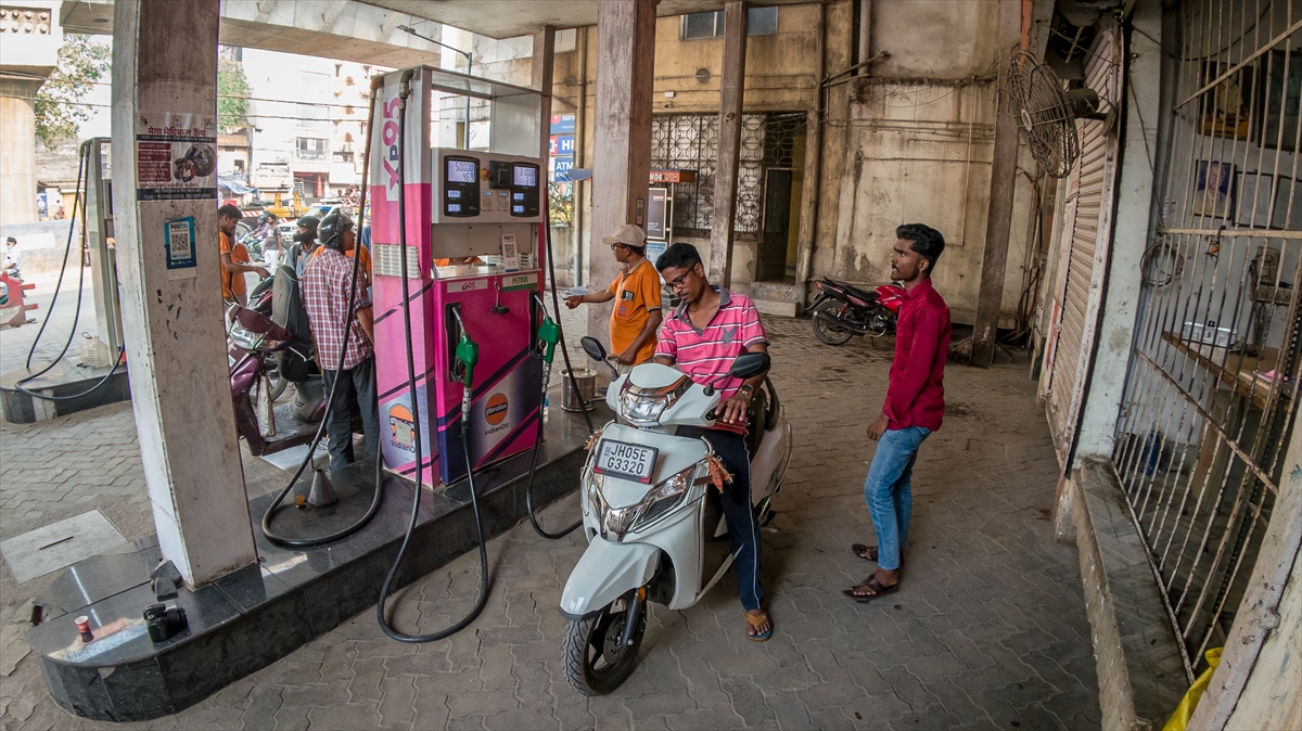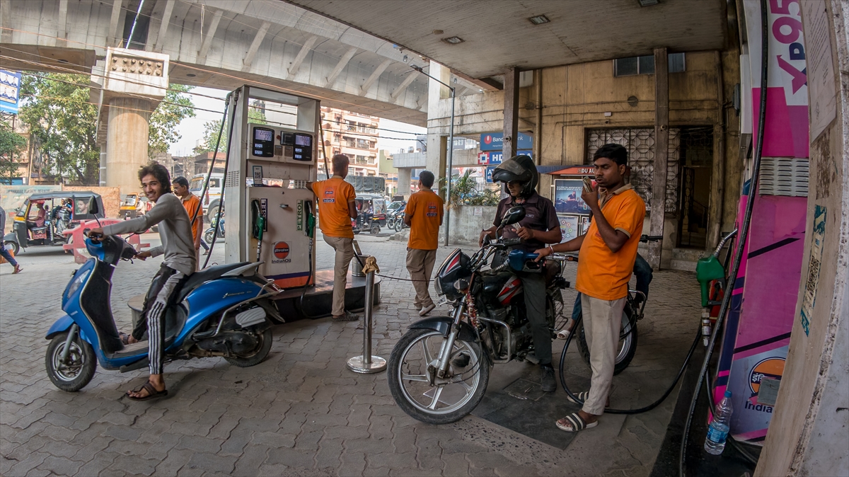 Bu gelişmelerin etkilediği Hindistan’da benzin istasyonları görüntülendi.