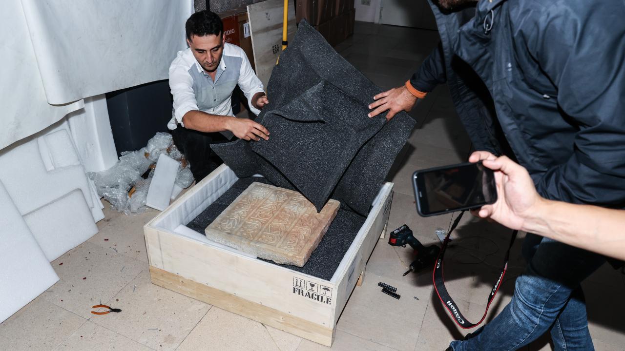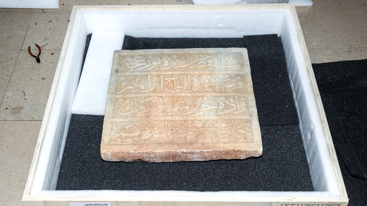 Havalimanının Gümrük Müdürlüğü`nde gerekli işlemleri yapılan kitabe, sergilenmek üzere Türk ve İslam Eserleri Müzesi`ne götürüldü.