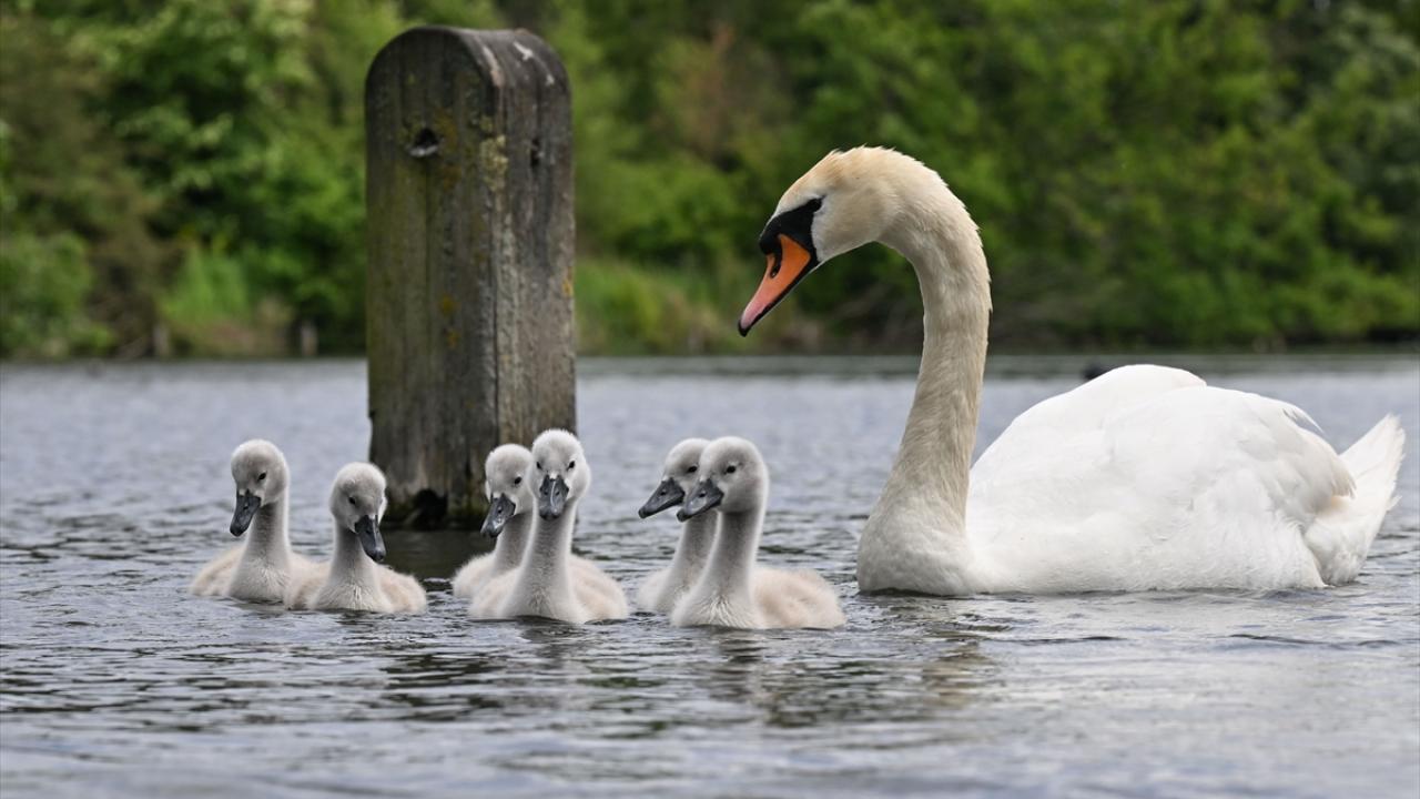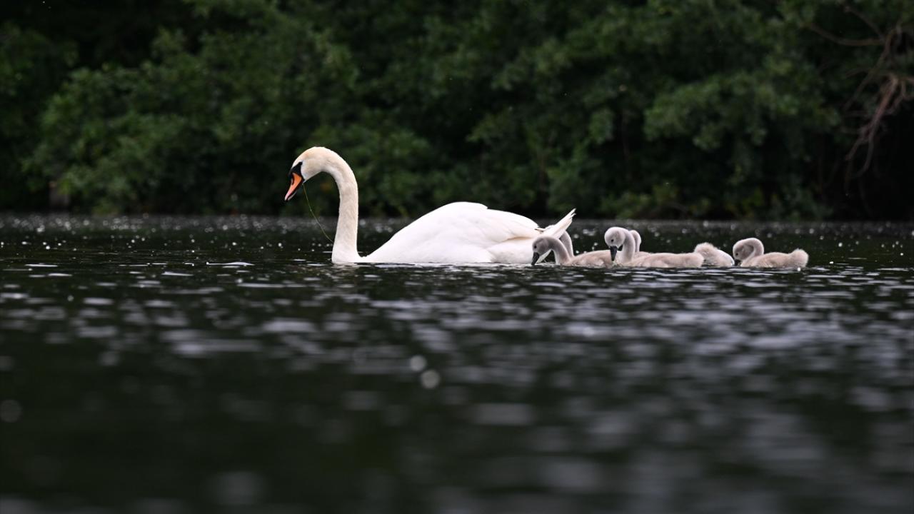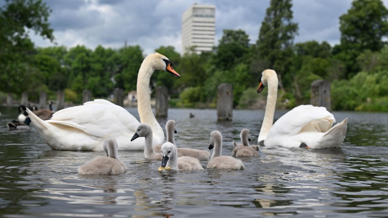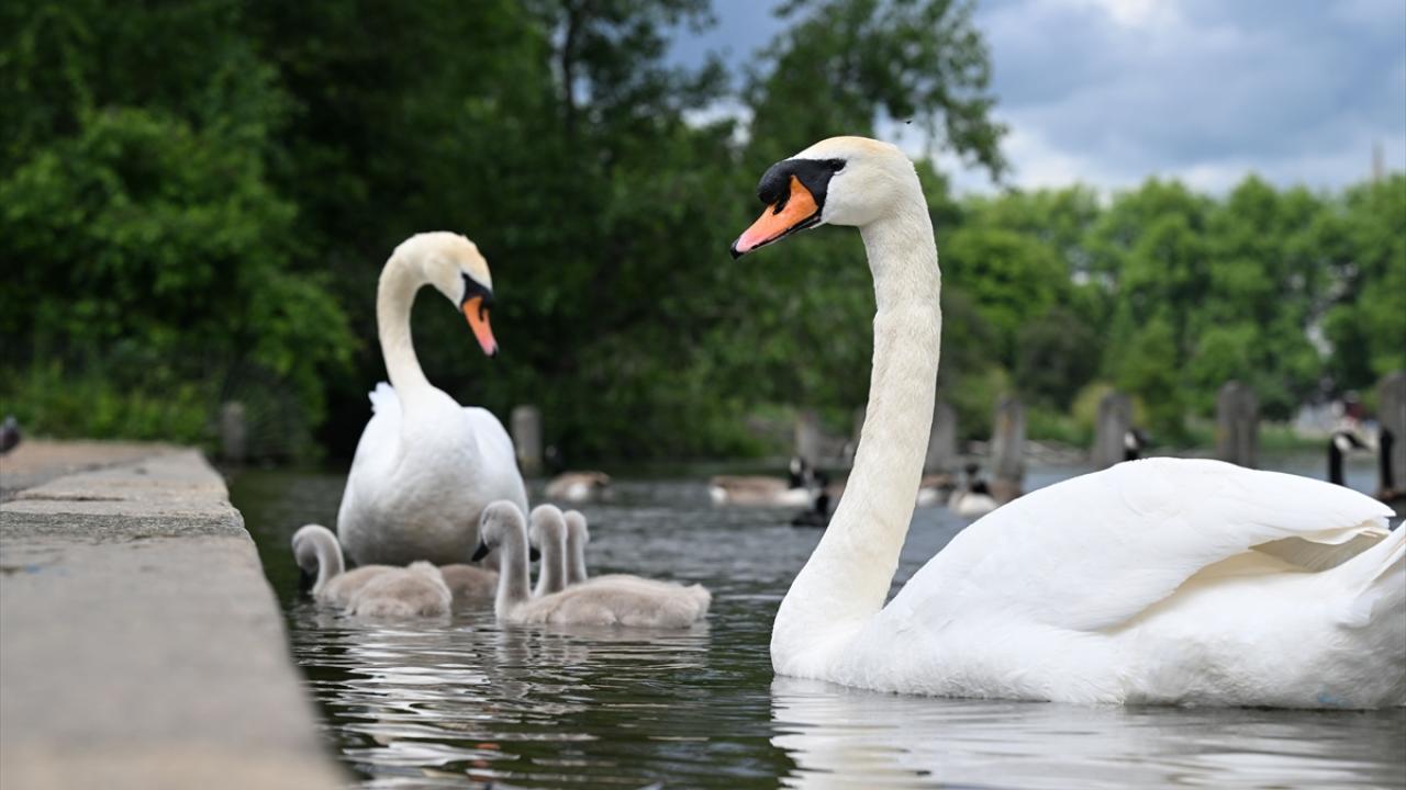 İngiltere’nin başkenti Londra’daki Hyde Park’ta yaşayan farklı kuş türleri arasında bulunan kuğu ve yavruları, ziyaretçilerin ilgisini çekiyor.