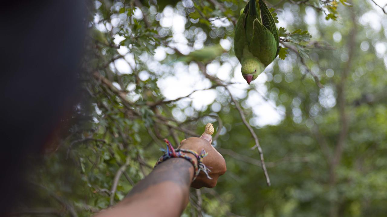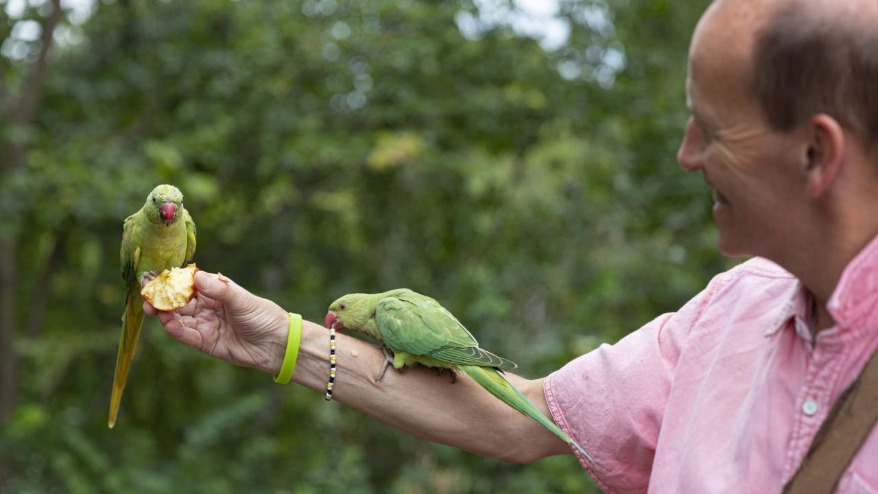 İngiltere’nin başkenti Londra’da bulunan Hyde Park’a hafta sonu için vakit geçirmeye gelen vatandaşların parkta yaşayan yeşil papağanları beslemeleri güzel görüntüler oluşturdu.