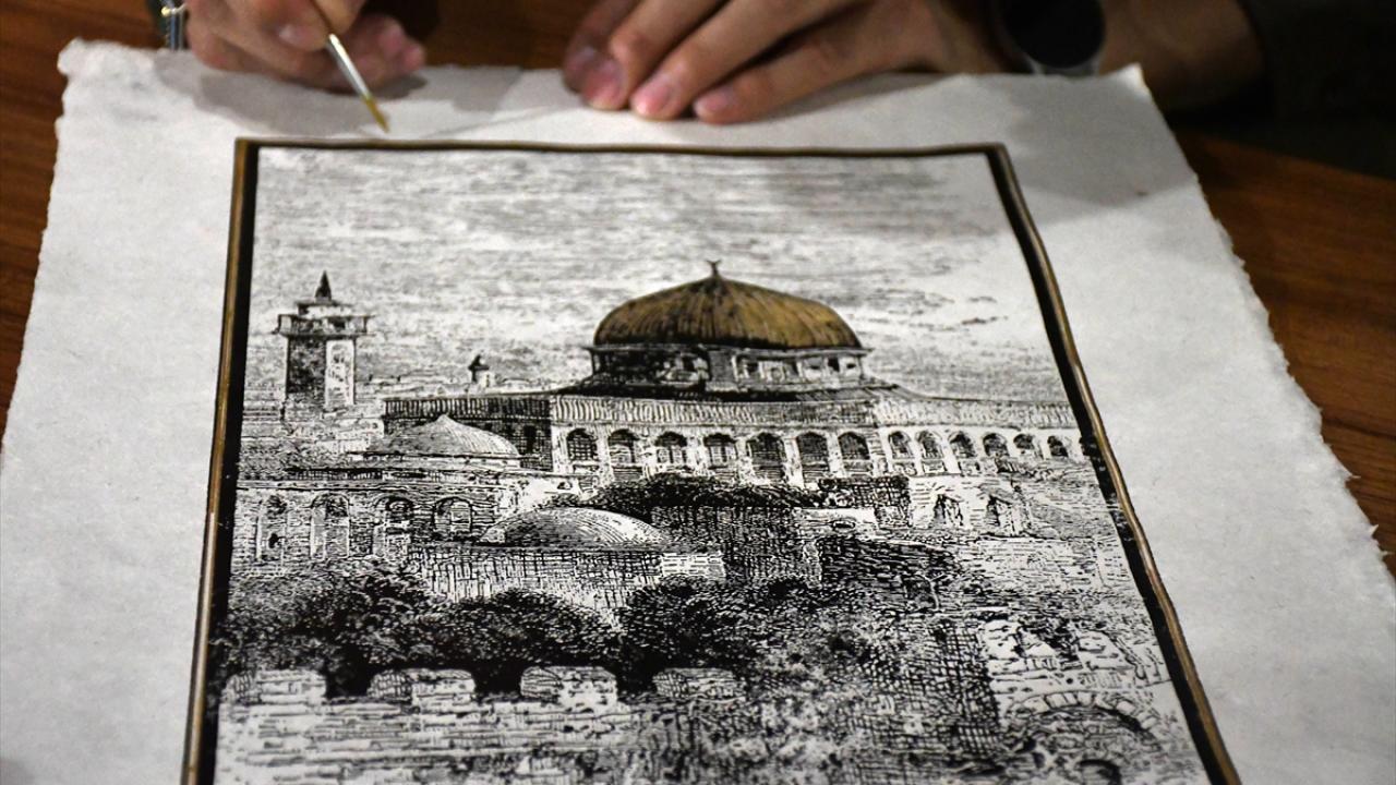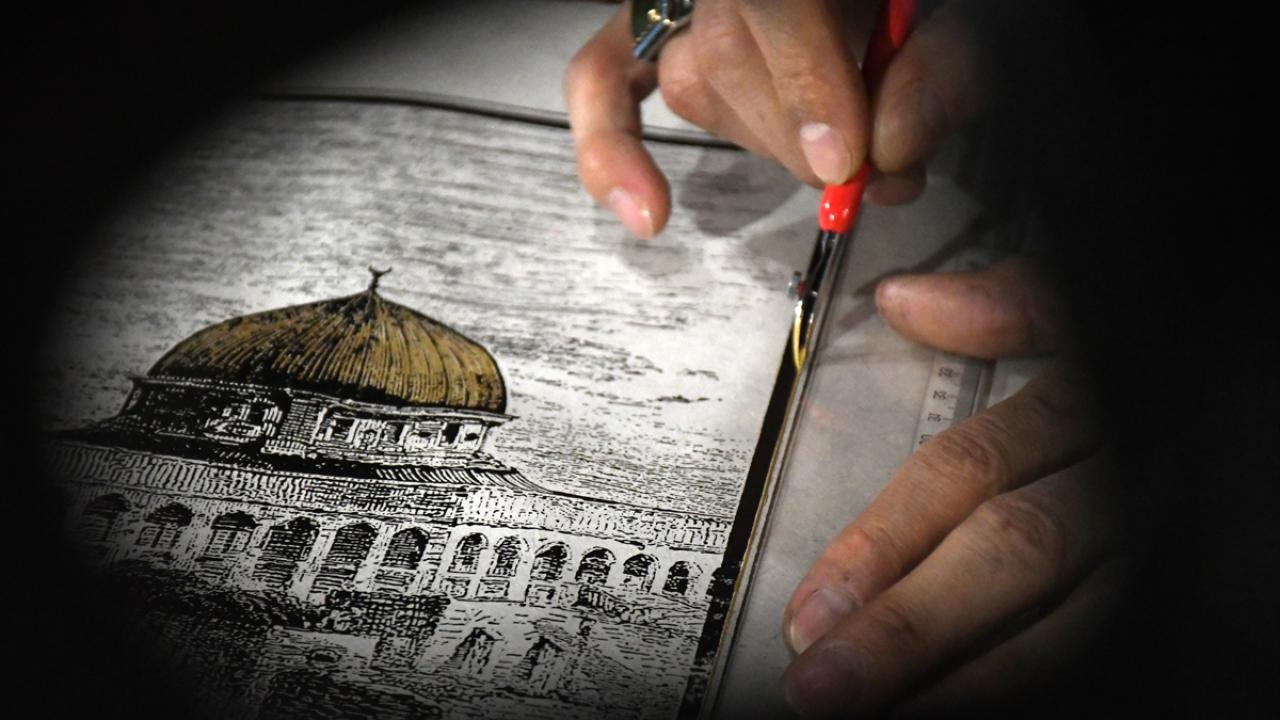 İbadete kapatılan Mescid-i Aksa'yı gündemde tutmak için el yapımı kağıtlara işliyor