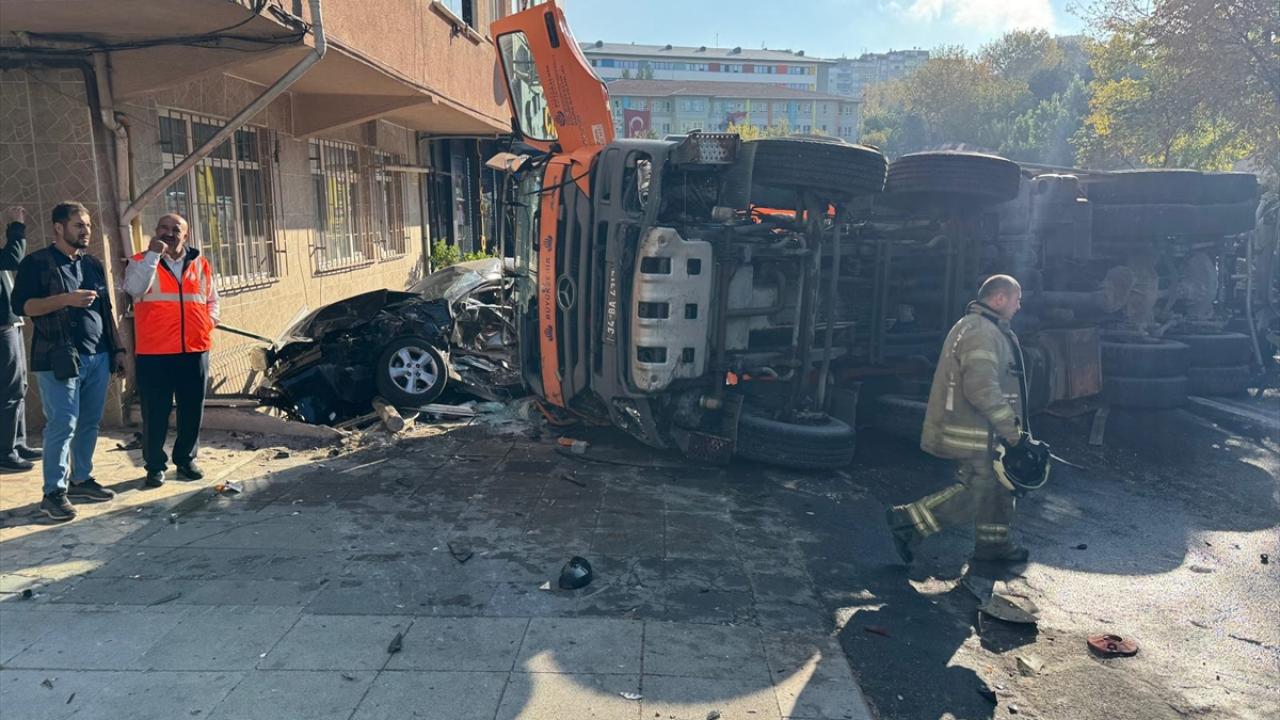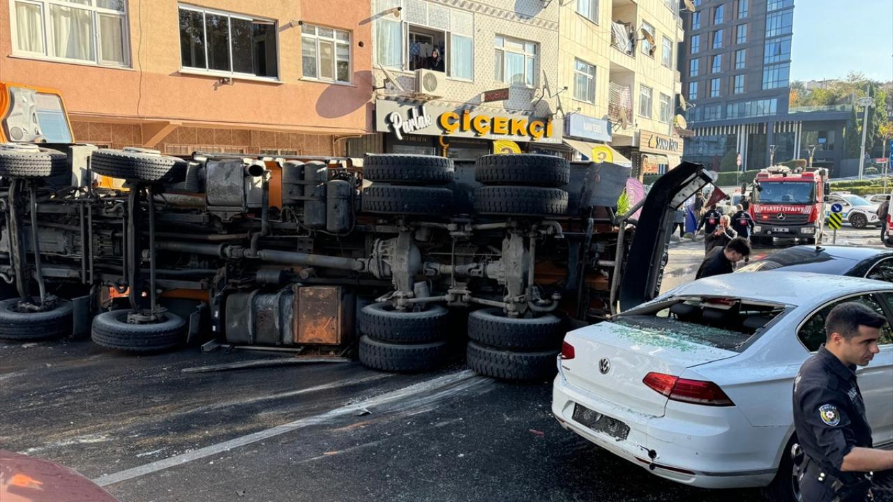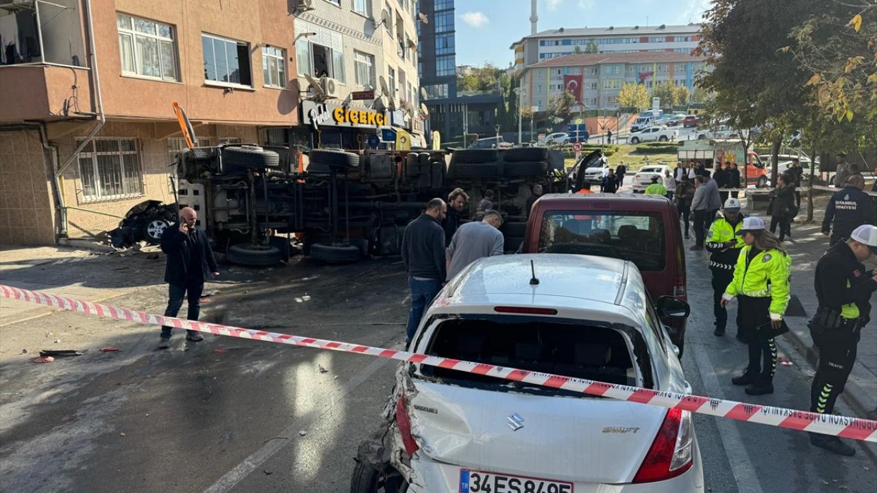 Kocatepe Mahallesi Şehir Parkı Caddesi`nde İBB`ye ait yol bakım aracı, sürücünün kontrolünden çıkması sonucu park ve seyir halindeki 8 araca çarptıktan sonra devrildi.