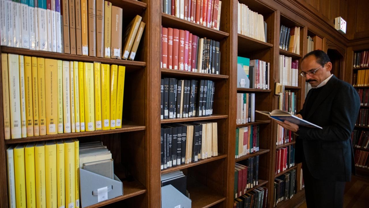 İbrahim Kalın ve beraberindeki heyet, enstitünün kütüphanesine ilişkin de Hout`tan bilgi aldıktan sonra kütüphanedeki kitapları inceledi.