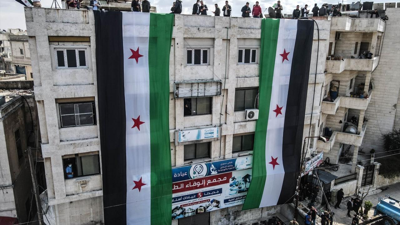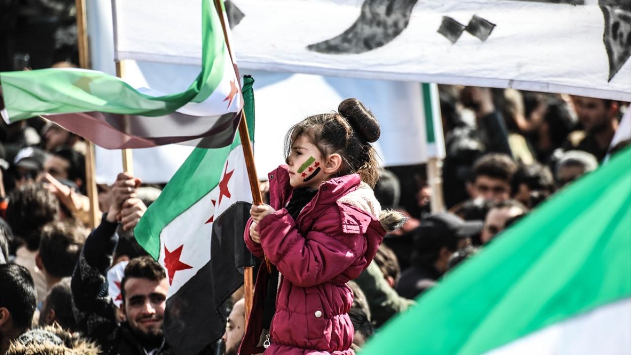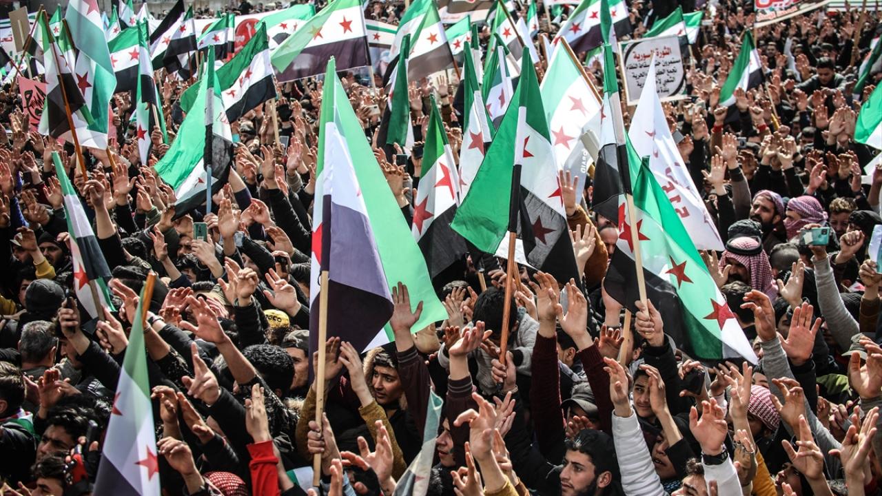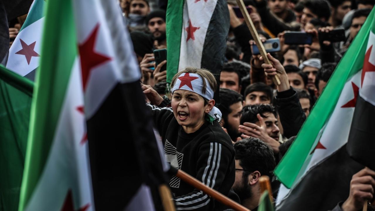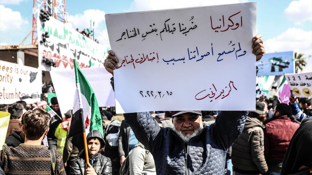 Suriye'nin İdlib ili ve Türkiye'nin teröristlerden arındırdığı Fırat Kalkanı Harekatı ve Barış Pınarı Harekatı bölgelerinde iç savaşın 12. yılına girmesi nedeniyle gösteriler düzenlendi.