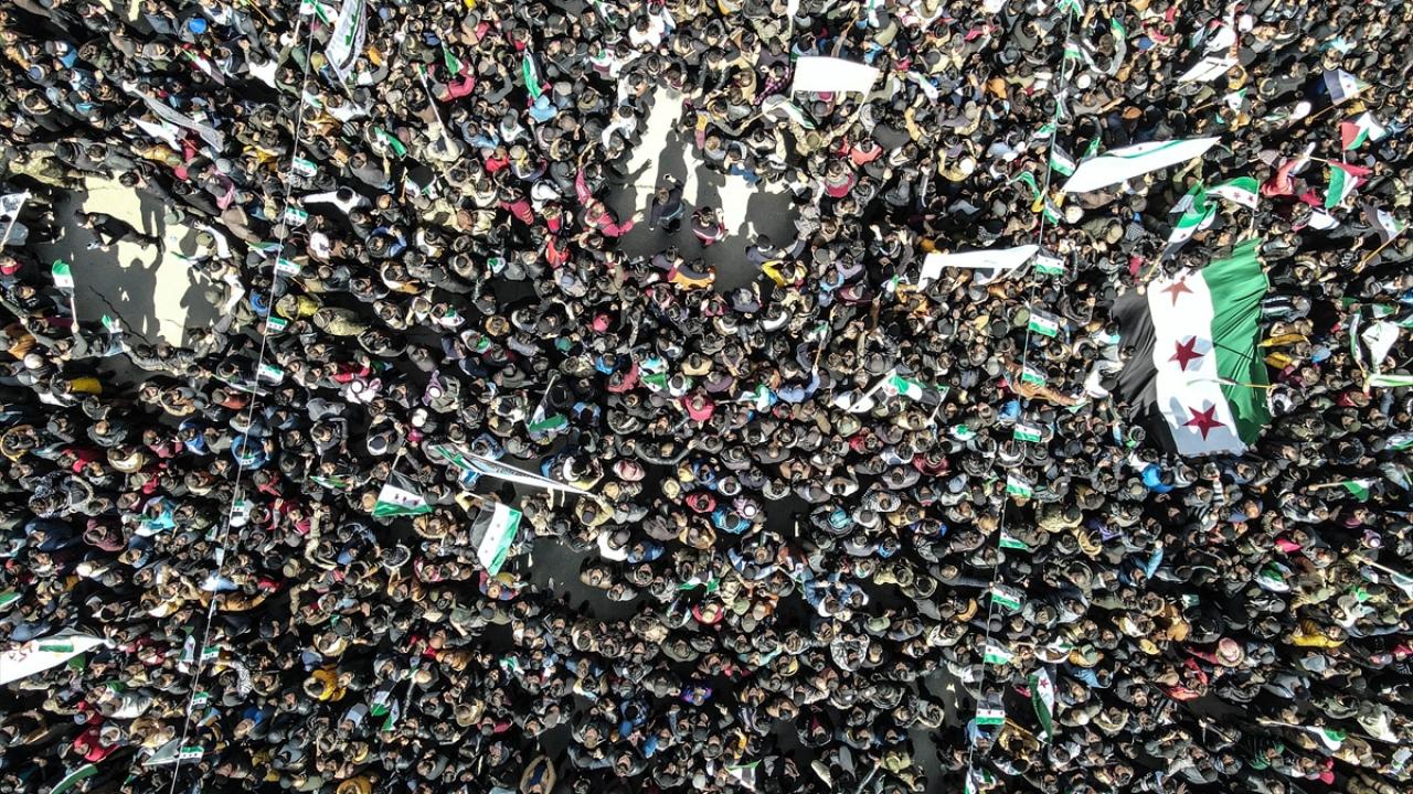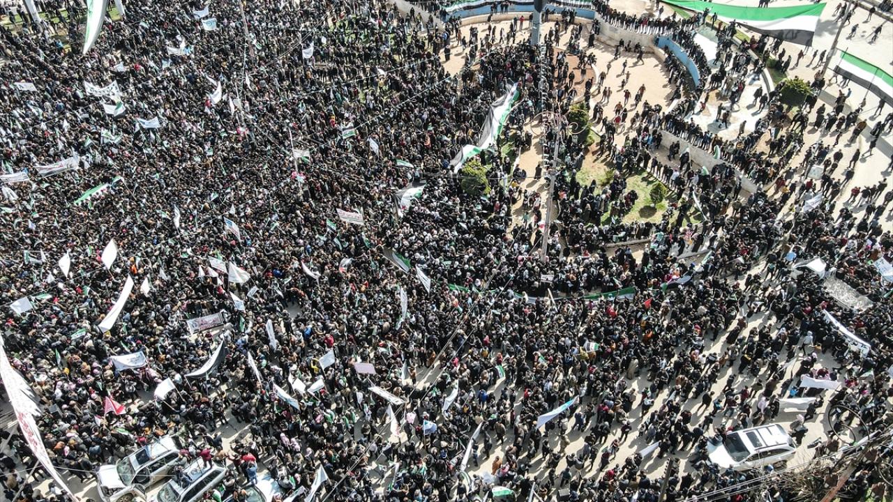 Muhammed Medeni de "Bugün Özgür İdlib’de tüm Suriyeliler gösteri yapıyoruz. 11 yıl önce başlattığımız devrime devam ediyoruz." diye konuştu.