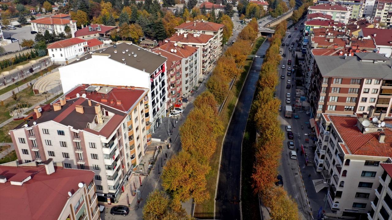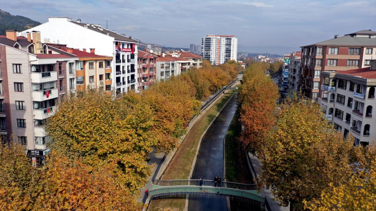 Kastamonu'da şehrin ortasından geçen Karaçomak Deresi boyunca uzanan ağaçlar, kent sakinleri ve ziyaretçilere sonbaharın tüm renklerini görme fırsatı sunuyor.