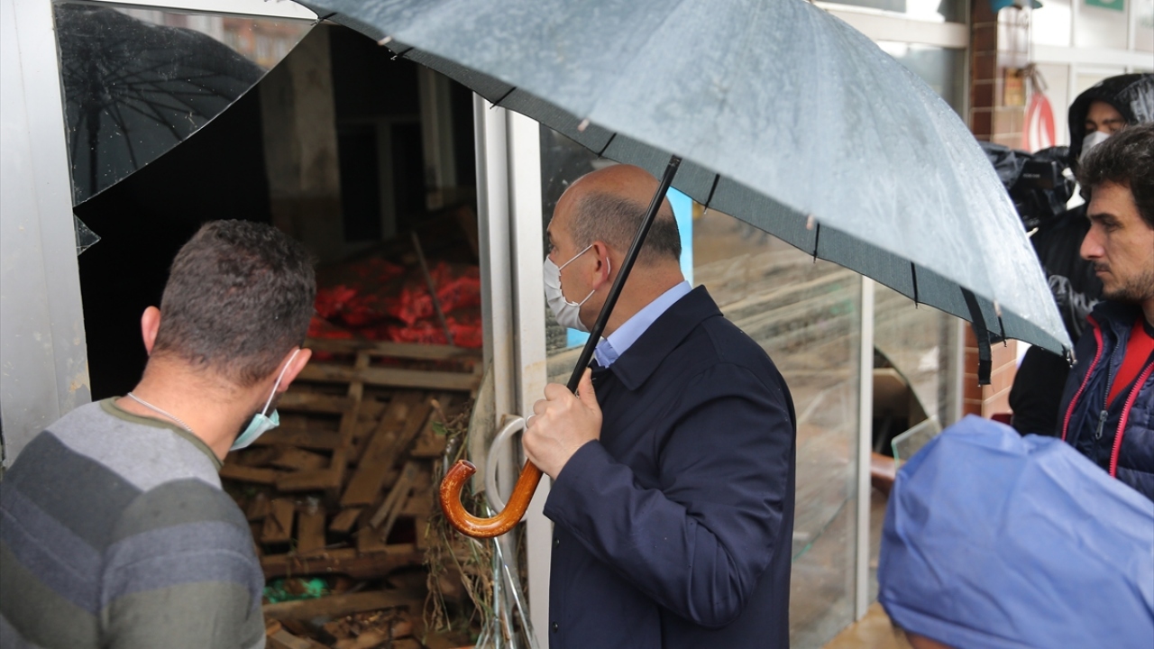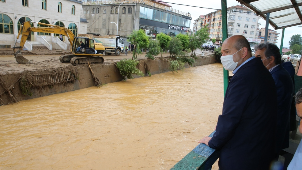 İçişleri Bakanı Soylu, Rize'deki sel bölgesinde incelemede bulundu