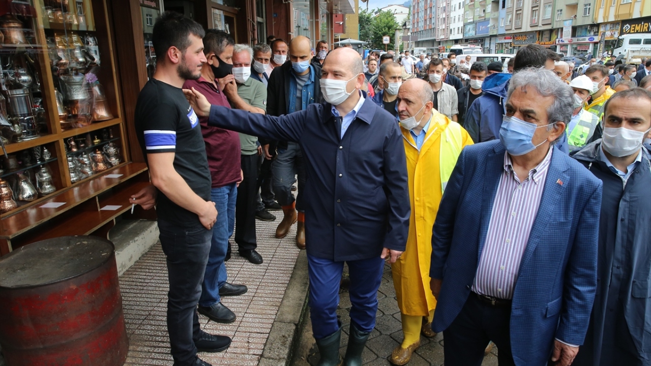 İçişleri Bakanı Süleyman Soylu ile AK Parti Genel Başkan Yardımcısı Hayati Yazıcı, Rize'de şiddetli yağış nedeniyle sel ve heyelanların yaşandığı bölgelerde incelemede bulundu.