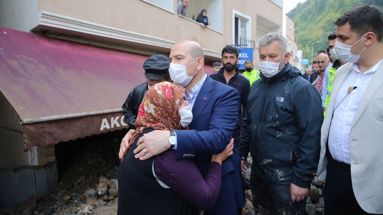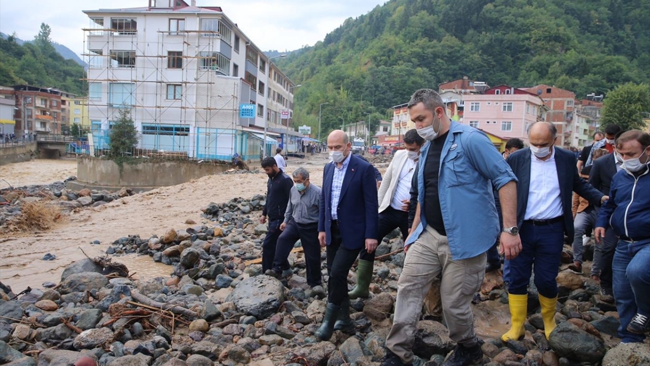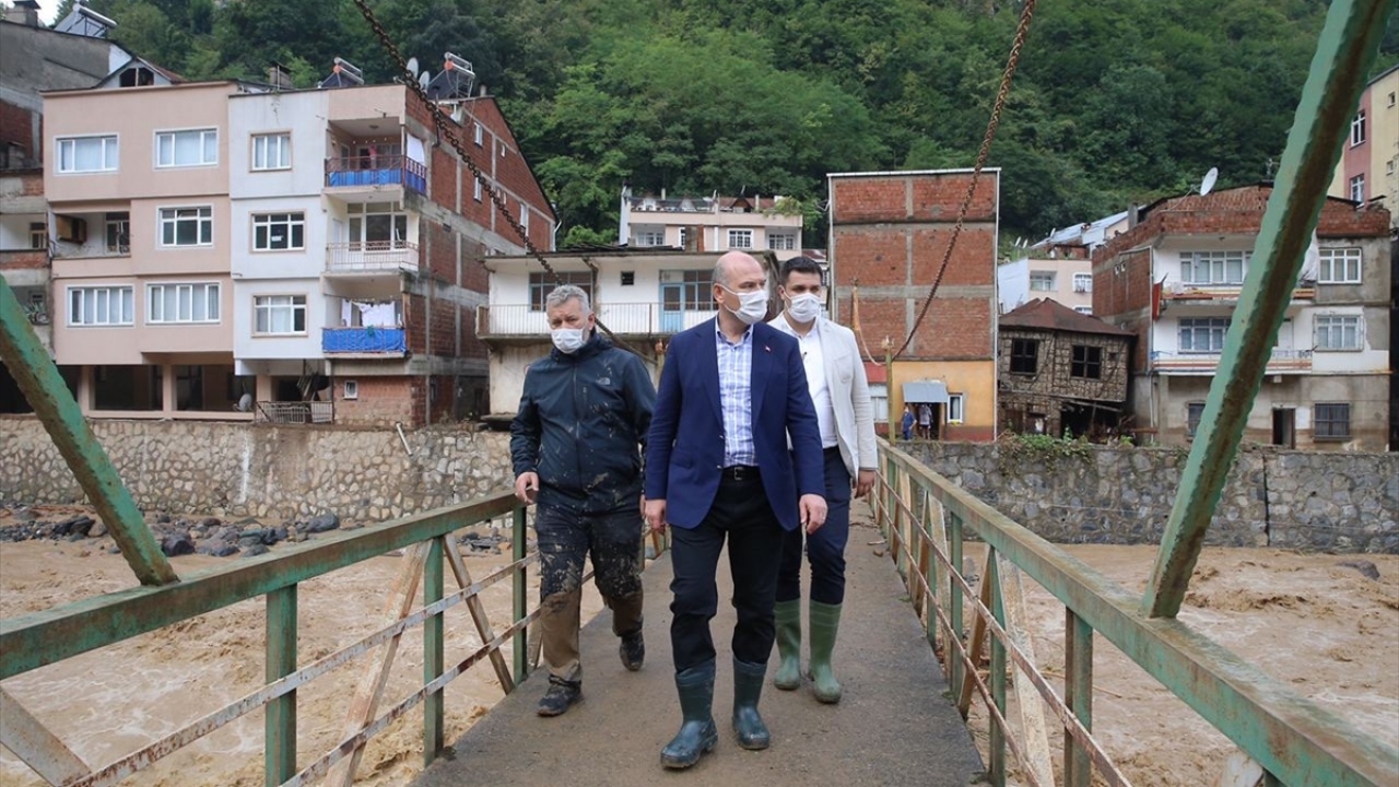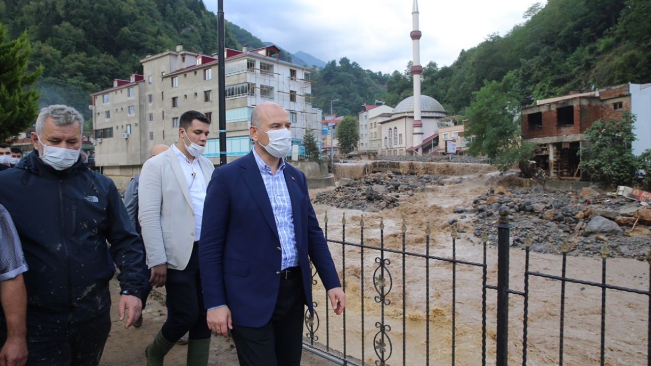İçişleri Bakanı Soylu sel bölgesinde incelemelerde bulundu
